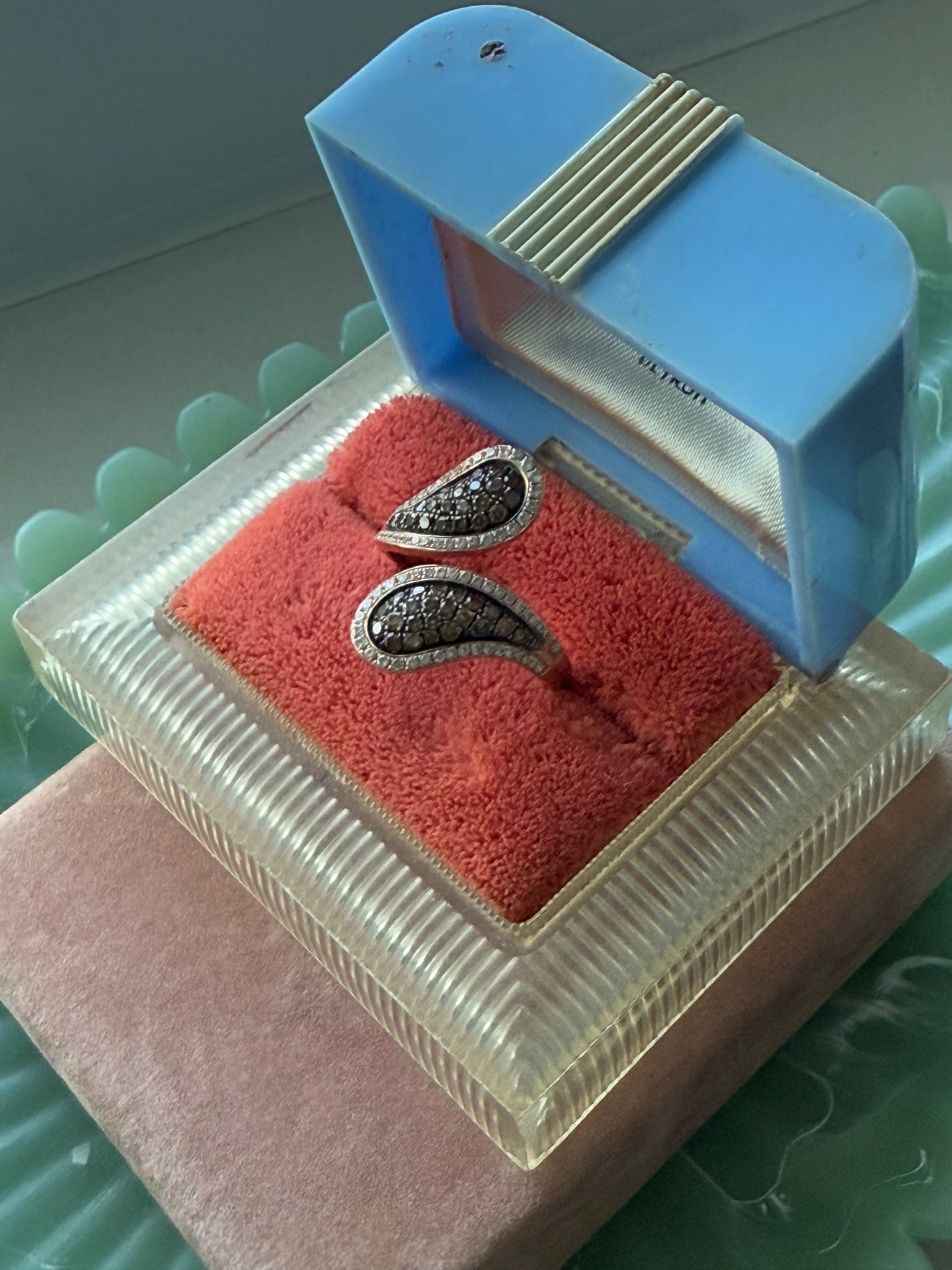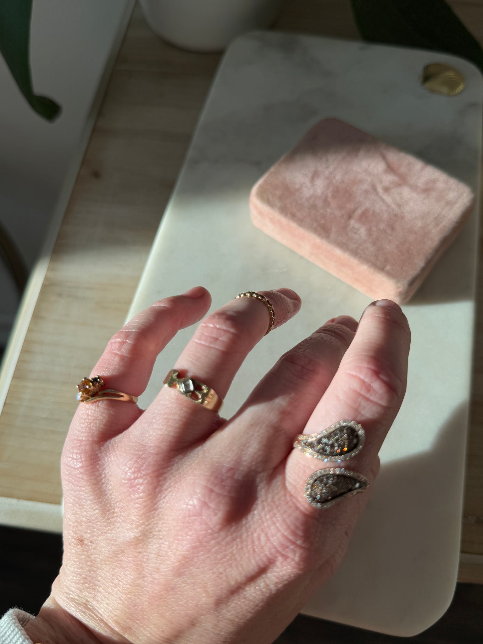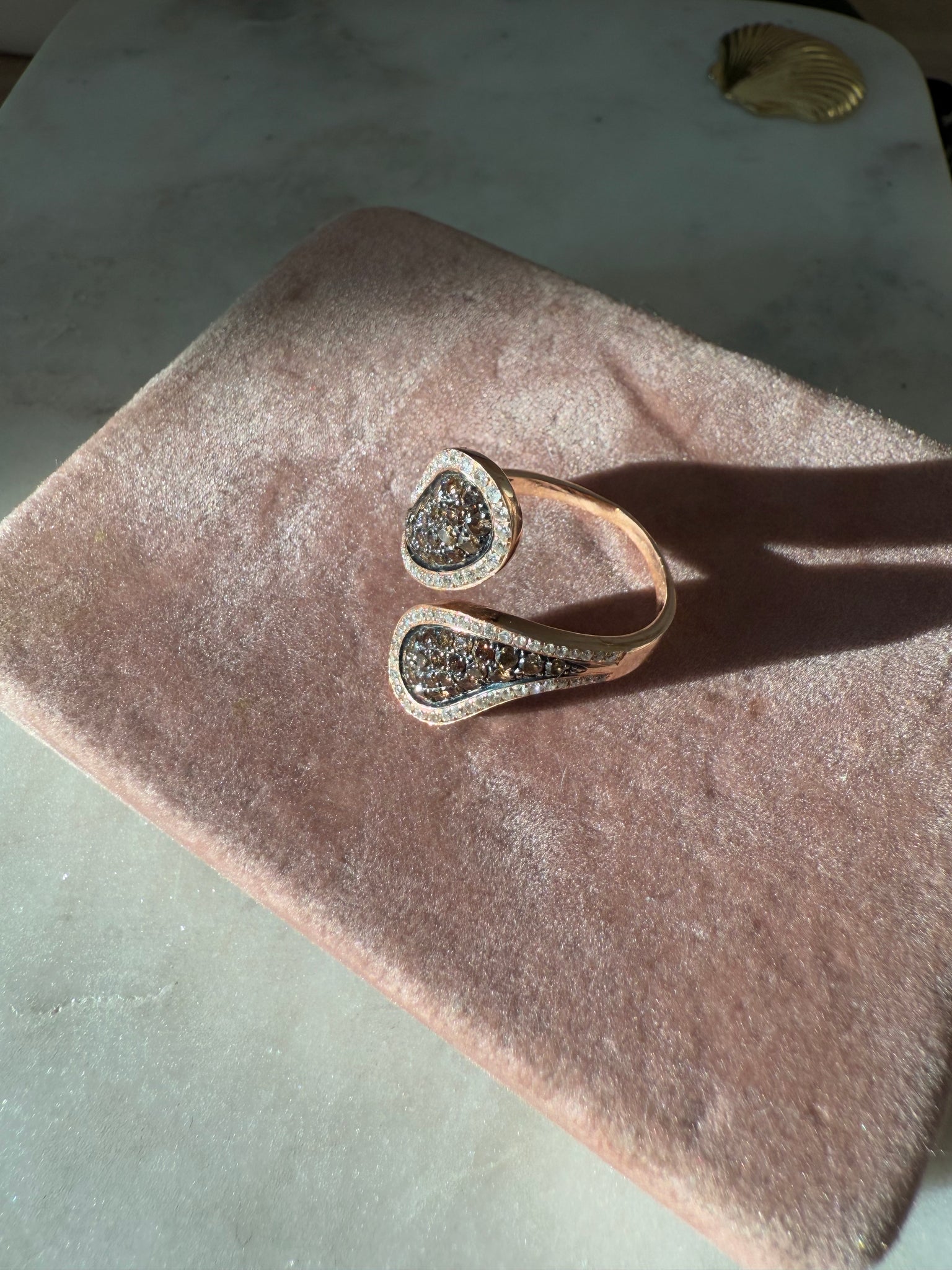4.4 grams • solid 14k rosey gold featuring white and chocolate diamonds • ring size 9
