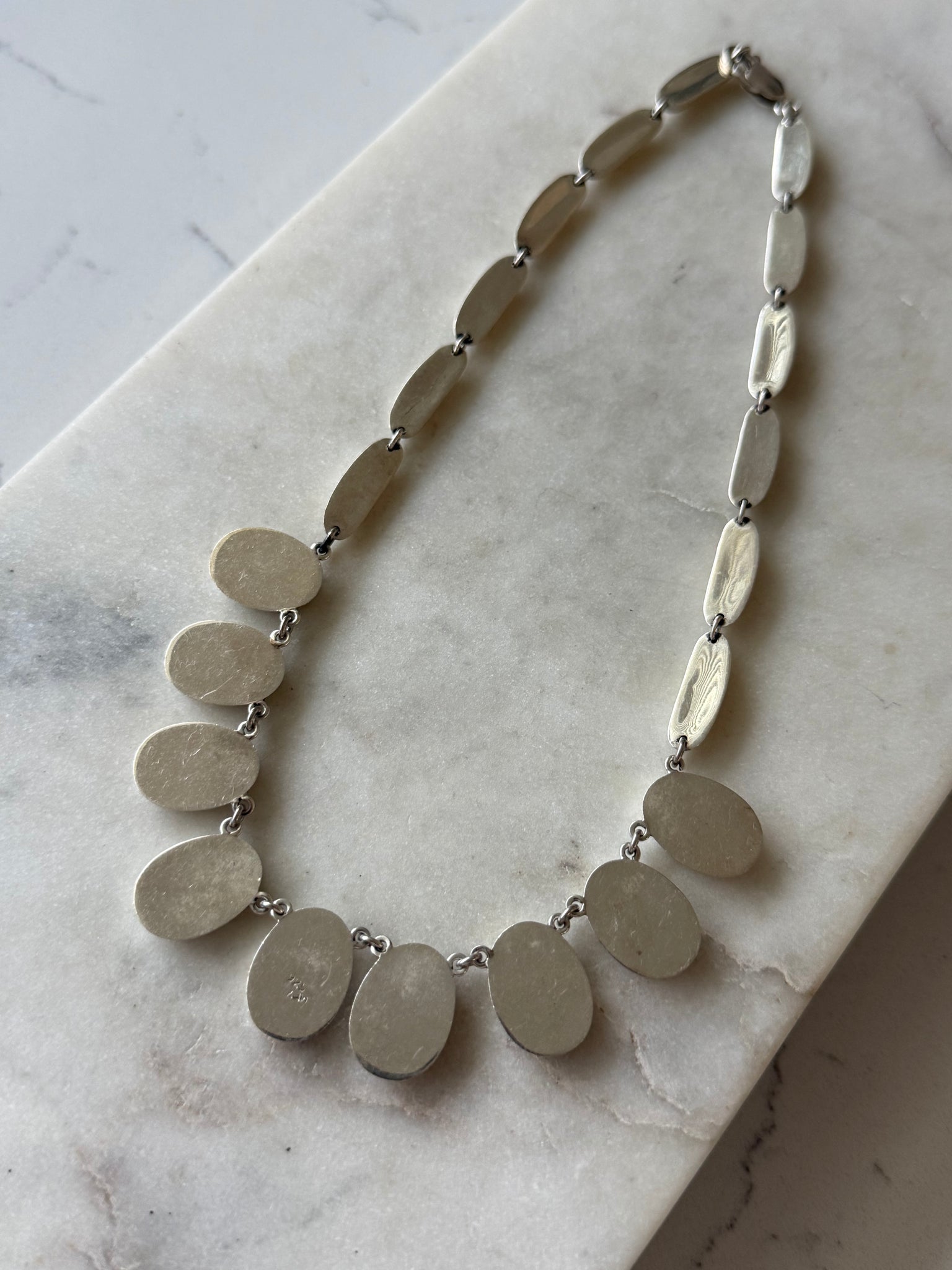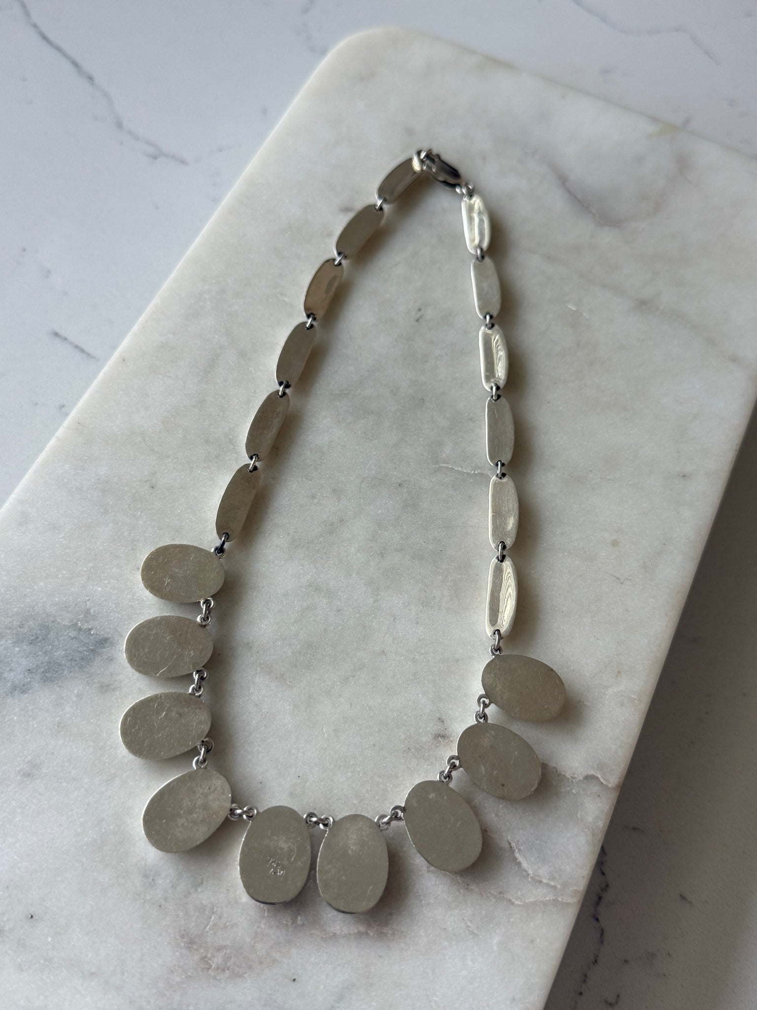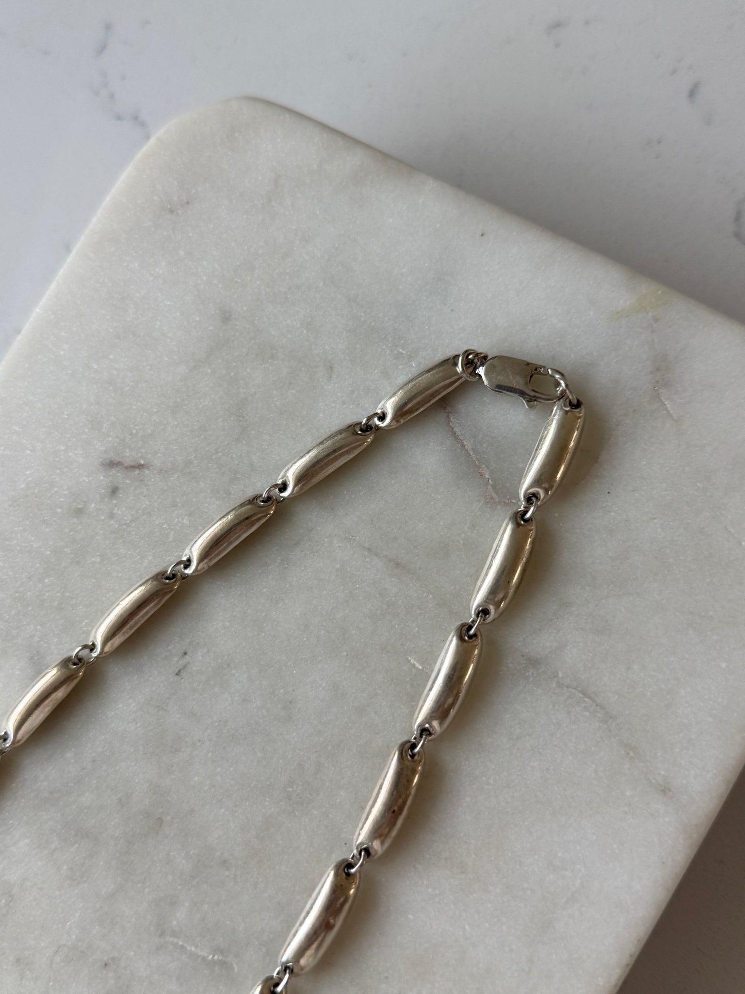 30.9 grams • .925 Sterling silver with malachite inlay • 16.5” length • the malachite pieces measure 18mm x 14mm, the other Sterling links measure 7mm width