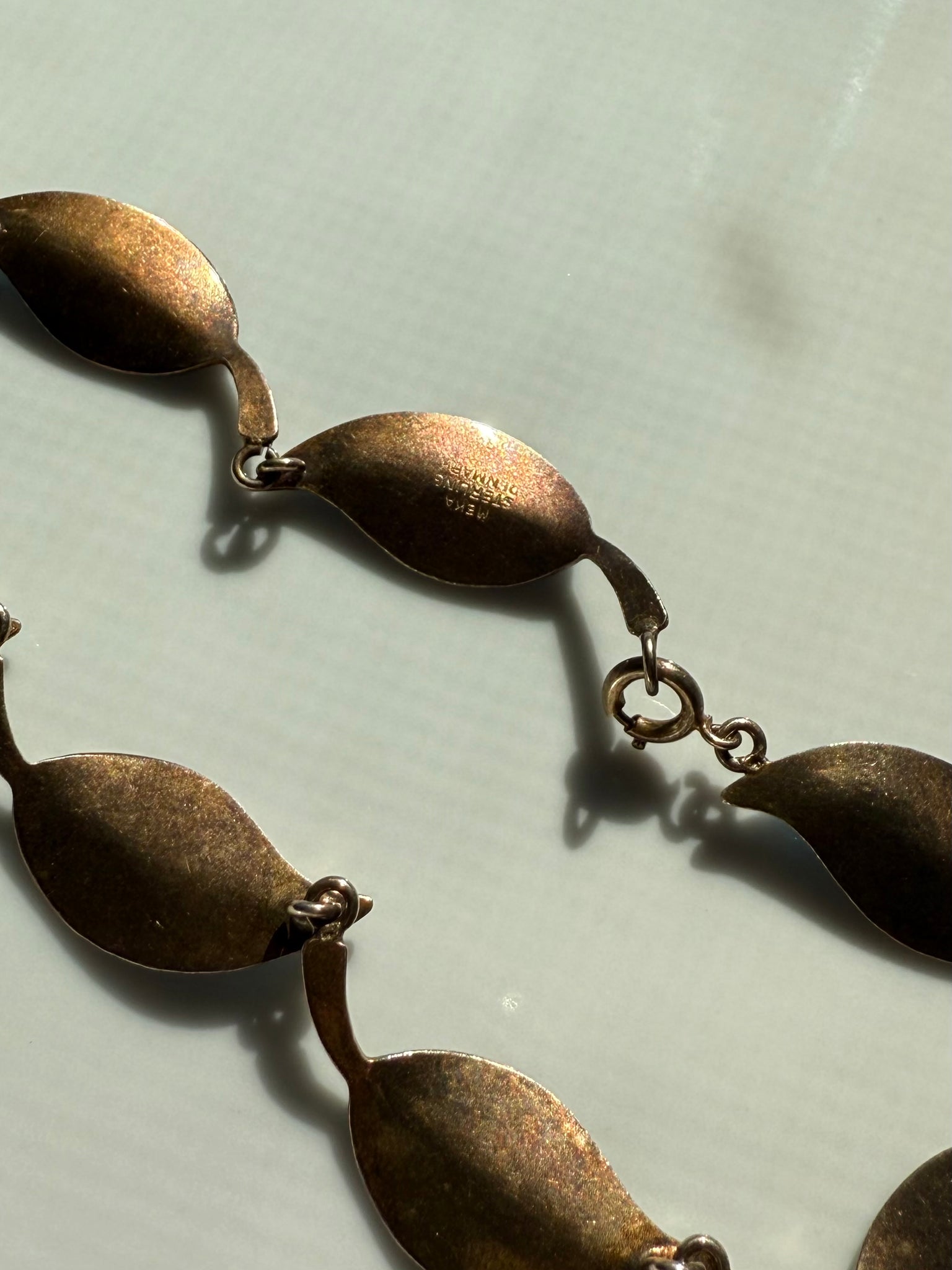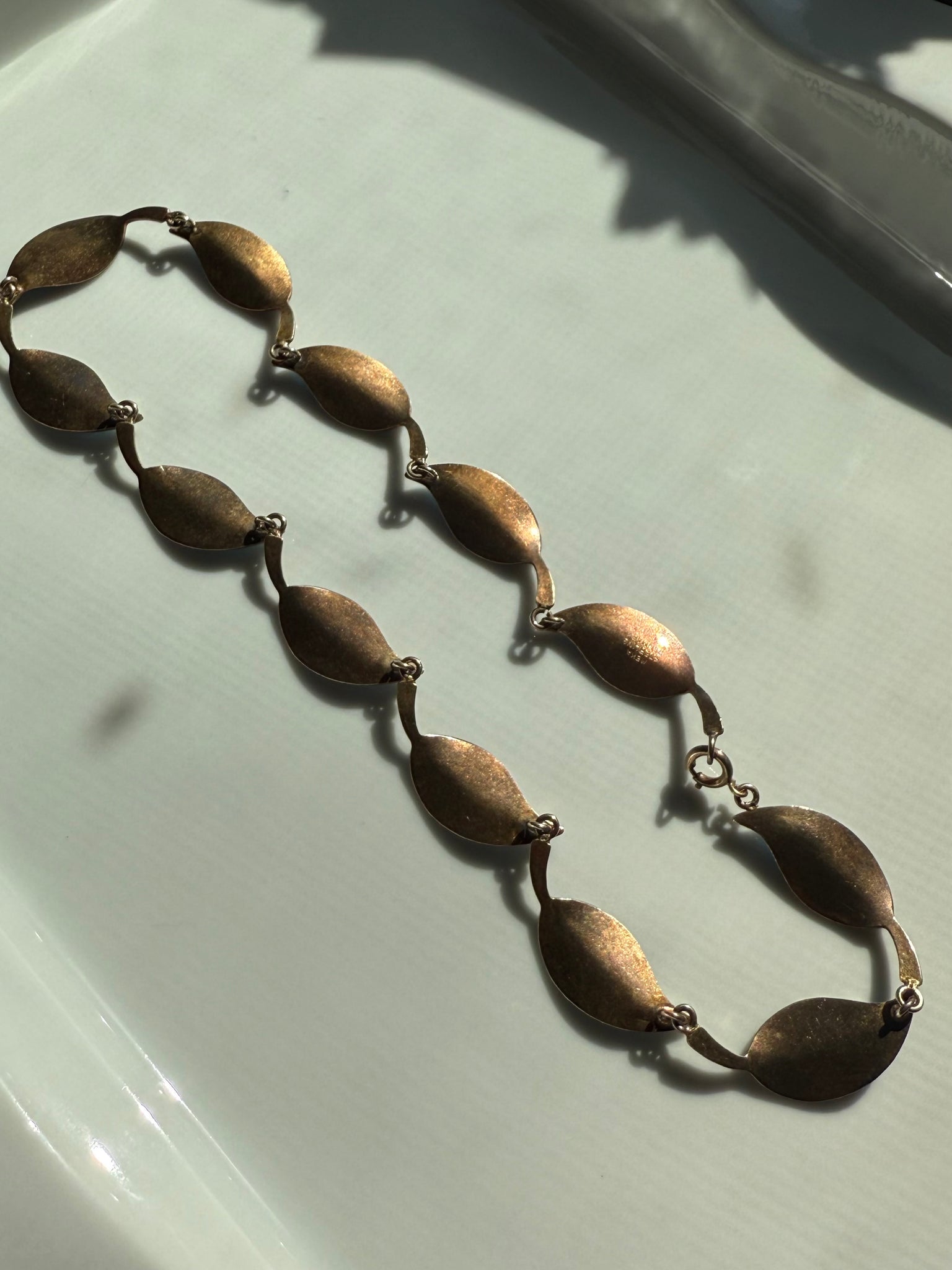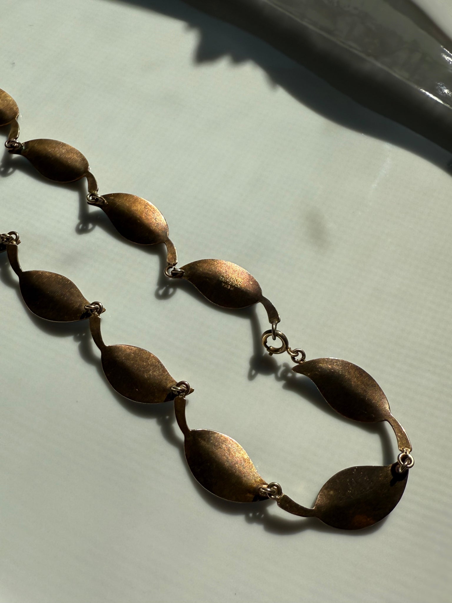 The .925 Sterling part is a brassy shade of gold • 29.2 grams • 12.75mm width leaf links • necklace measures 15” length