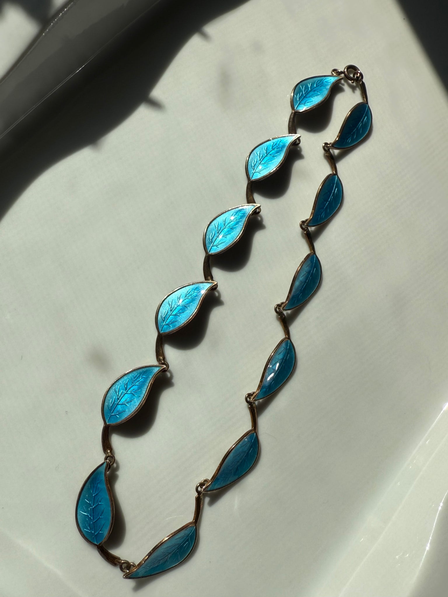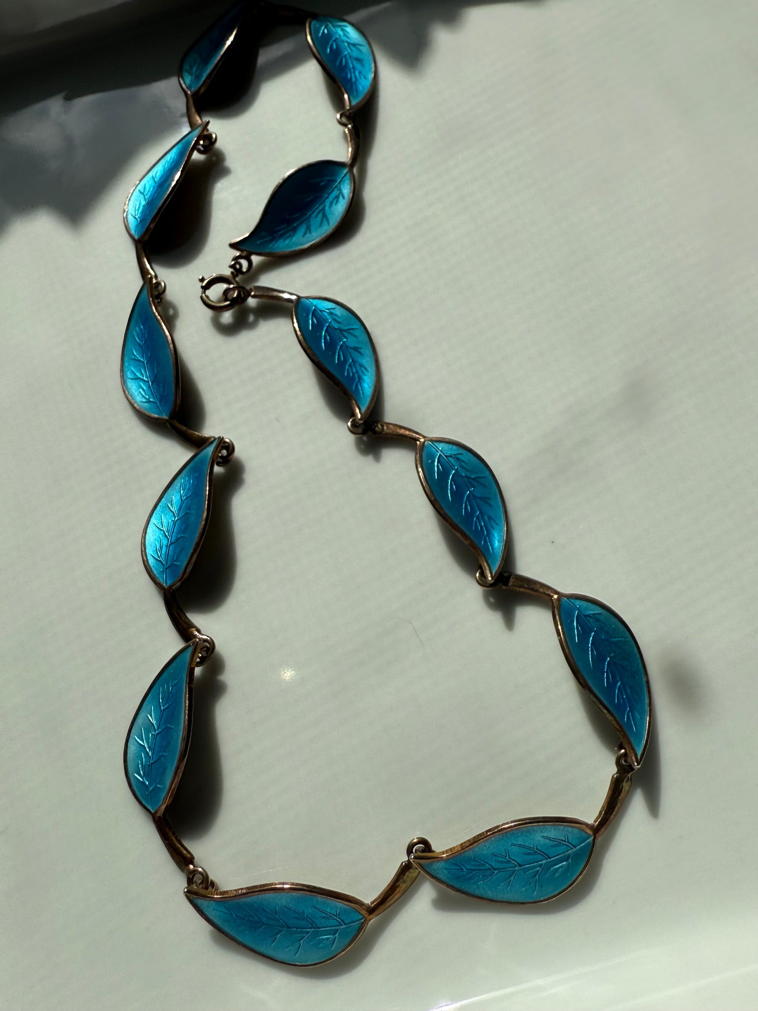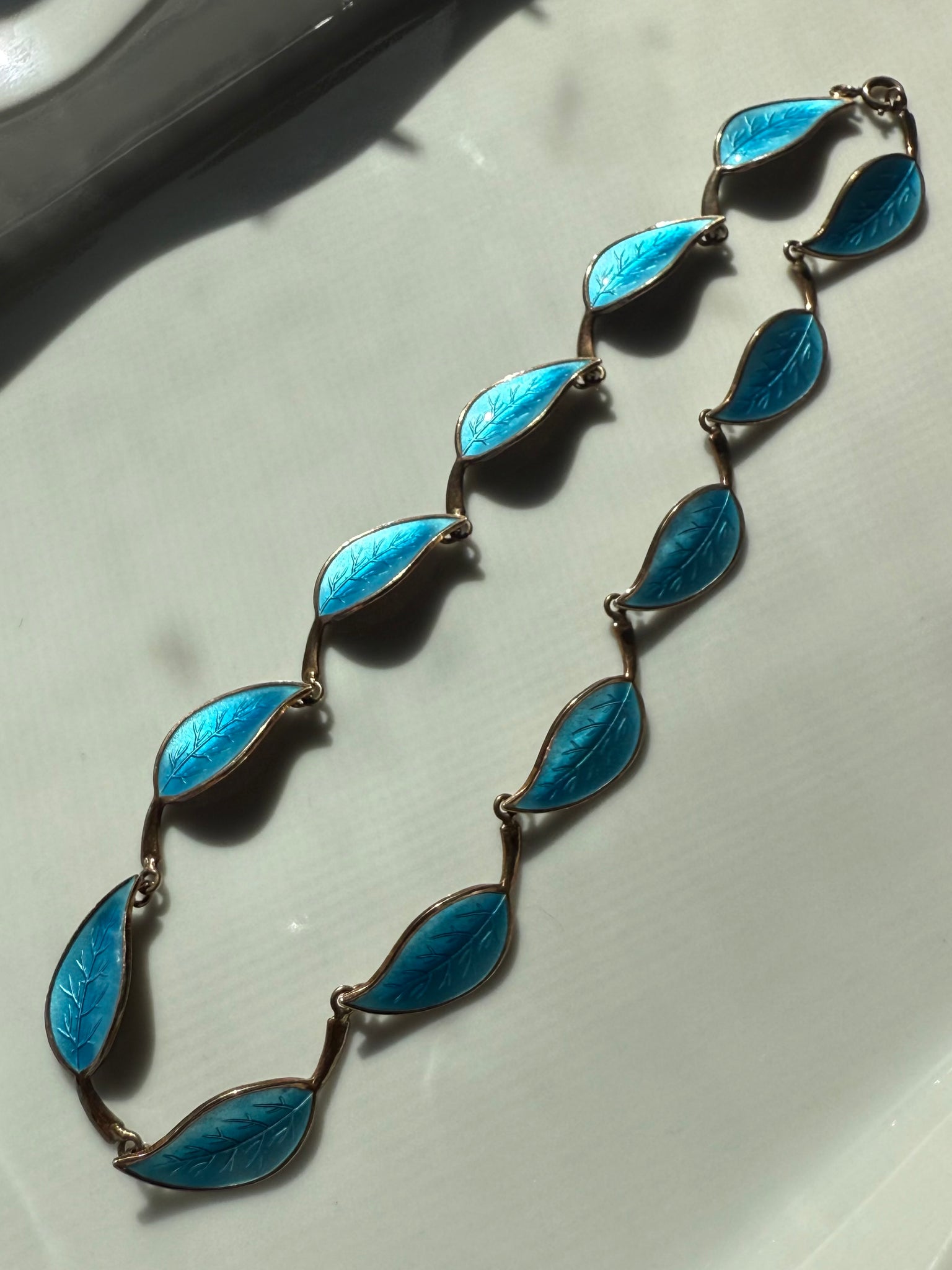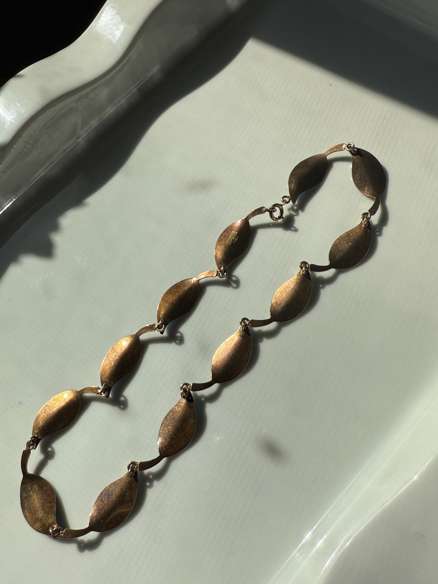 The .925 Sterling part is a brassy shade of gold • 29.2 grams • 12.75mm width leaf links • necklace measures 15” length