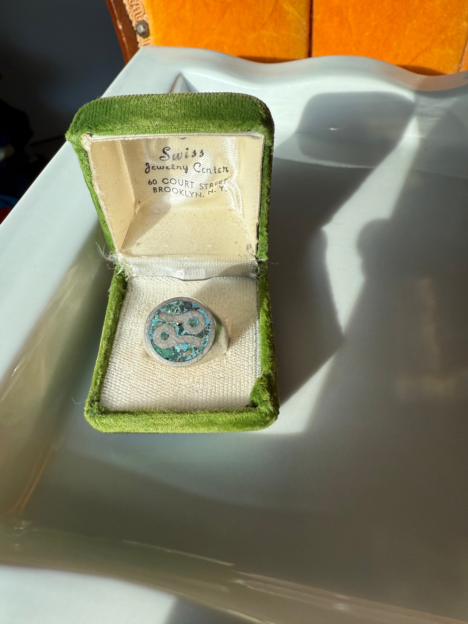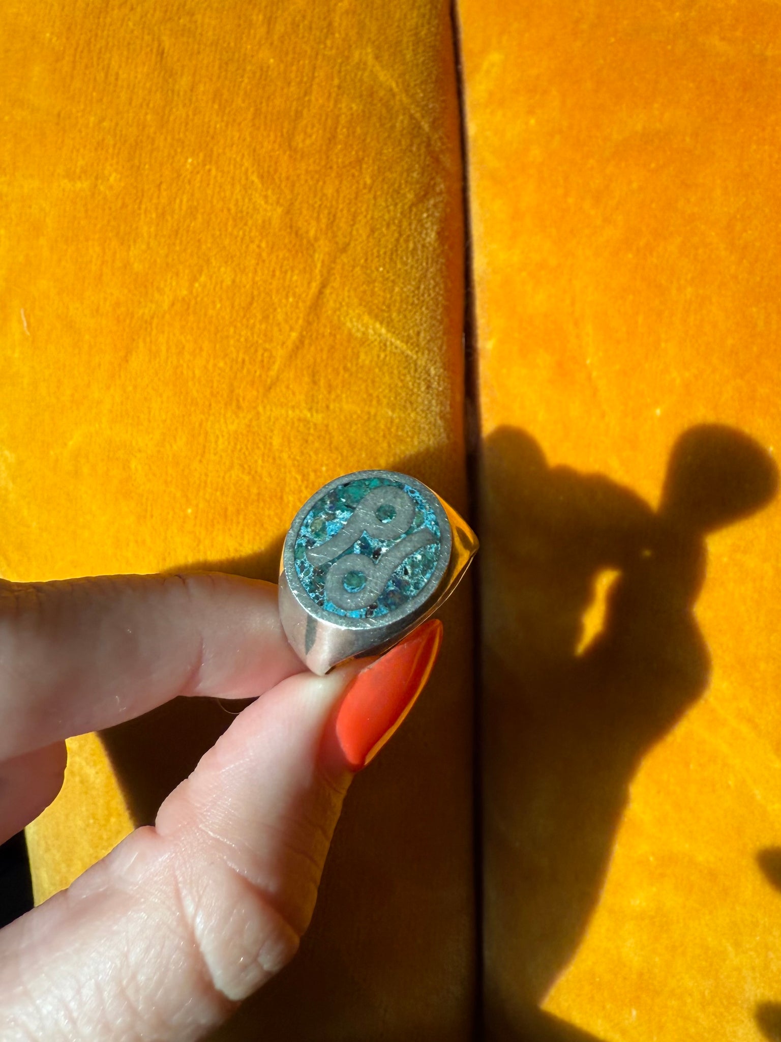 Mexico Cancer Turquoise Sterling Ring Size 10.25