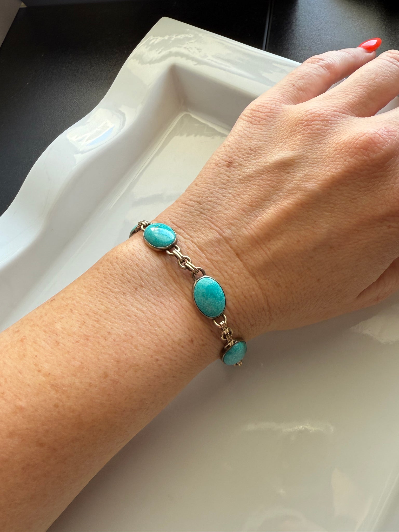 Gold vermeil (.925 sterling) • 6” • 11mm width • 9.2 grams • Faux turquoise