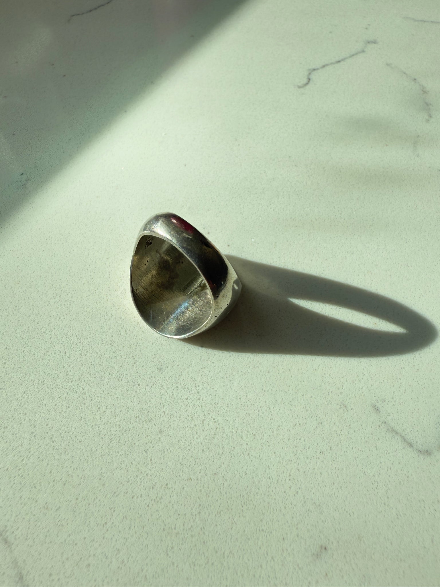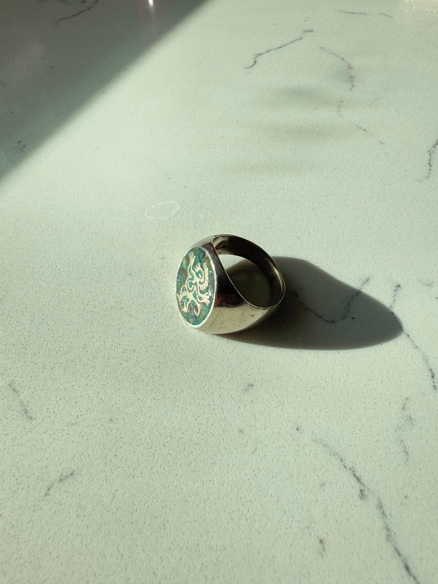 Midcentury Mexican Crushed Turquoise Sterling Silver Signet Ring Size 8