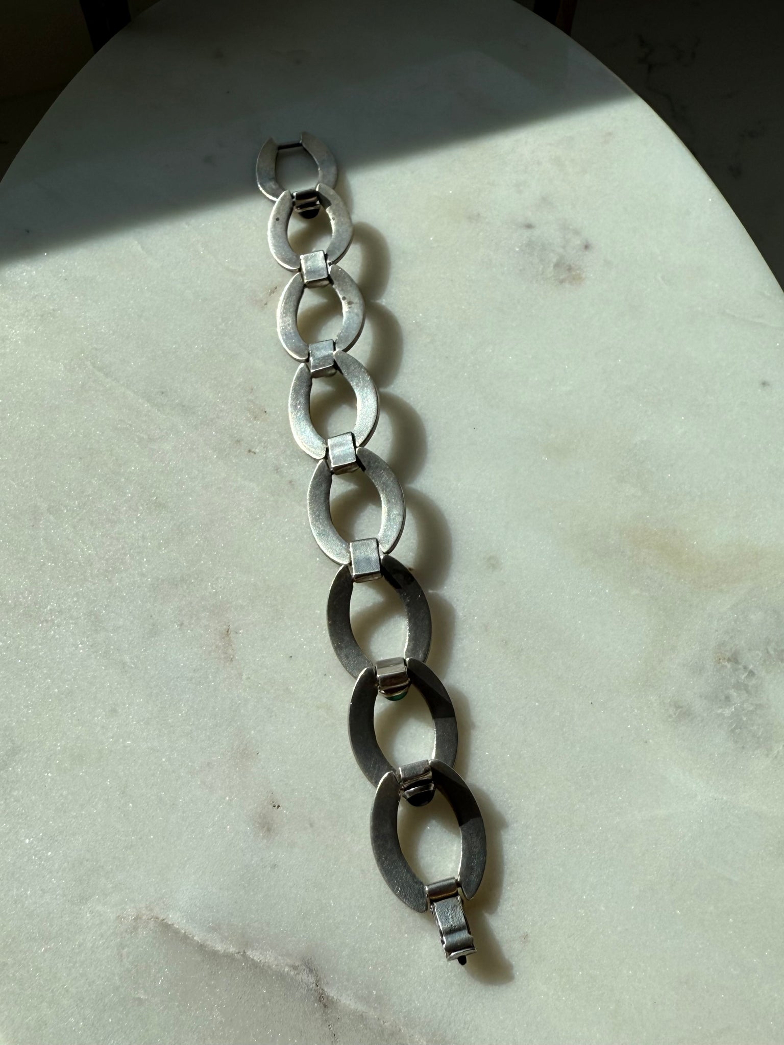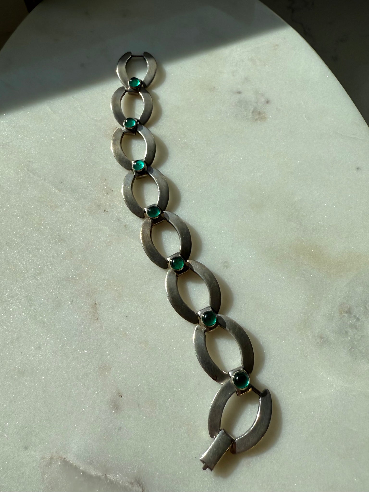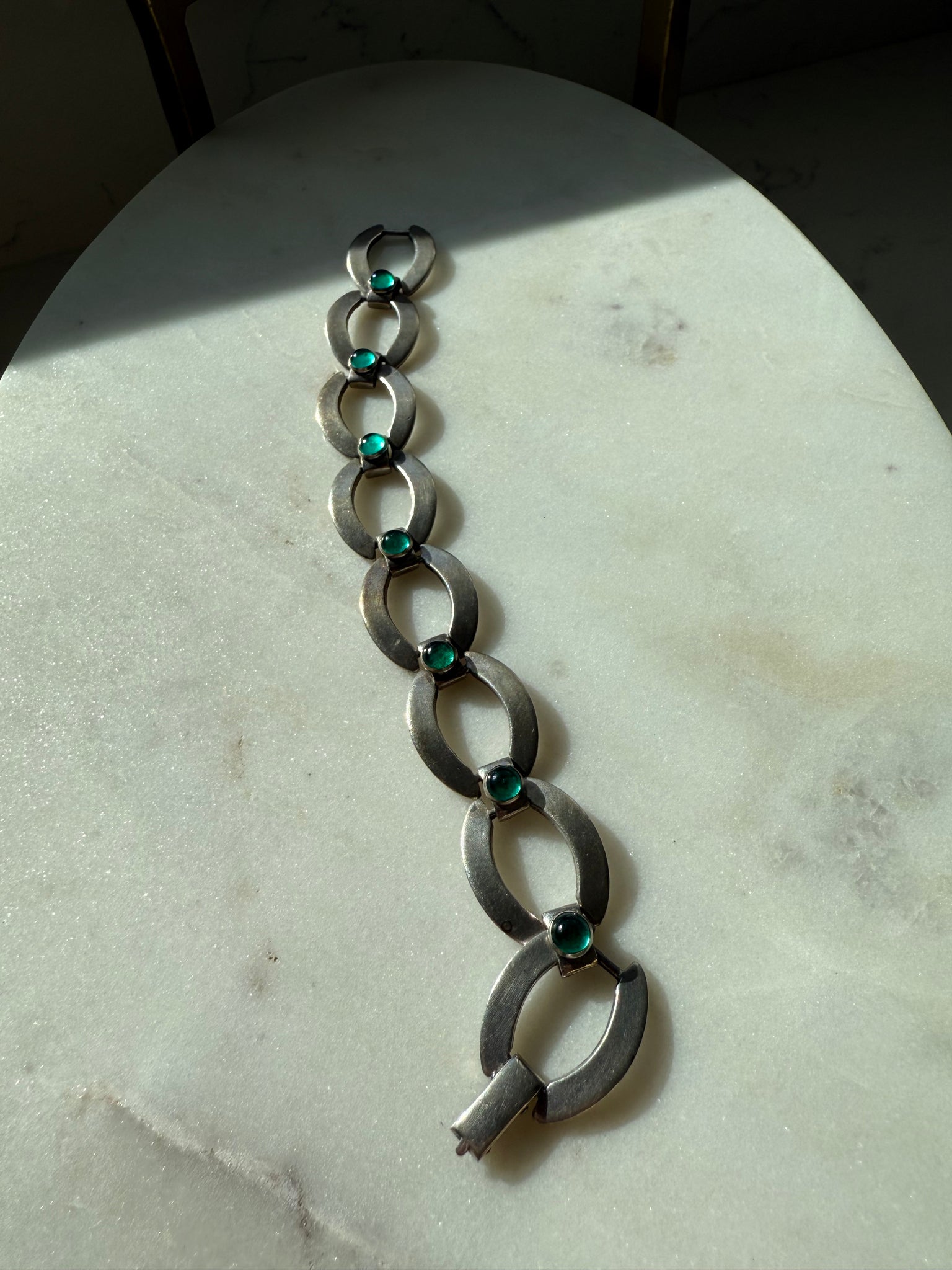 23.6 grams • 7” with measuring tape lying flat • 18mm • green stones don’t read as anything on the gem tester