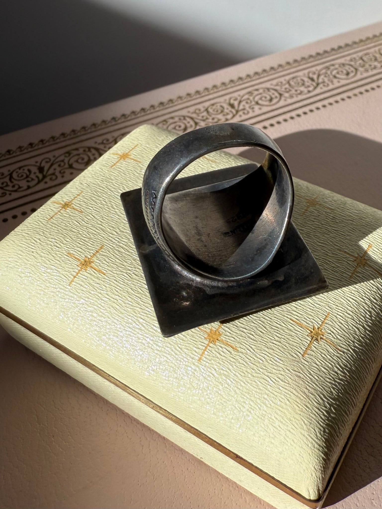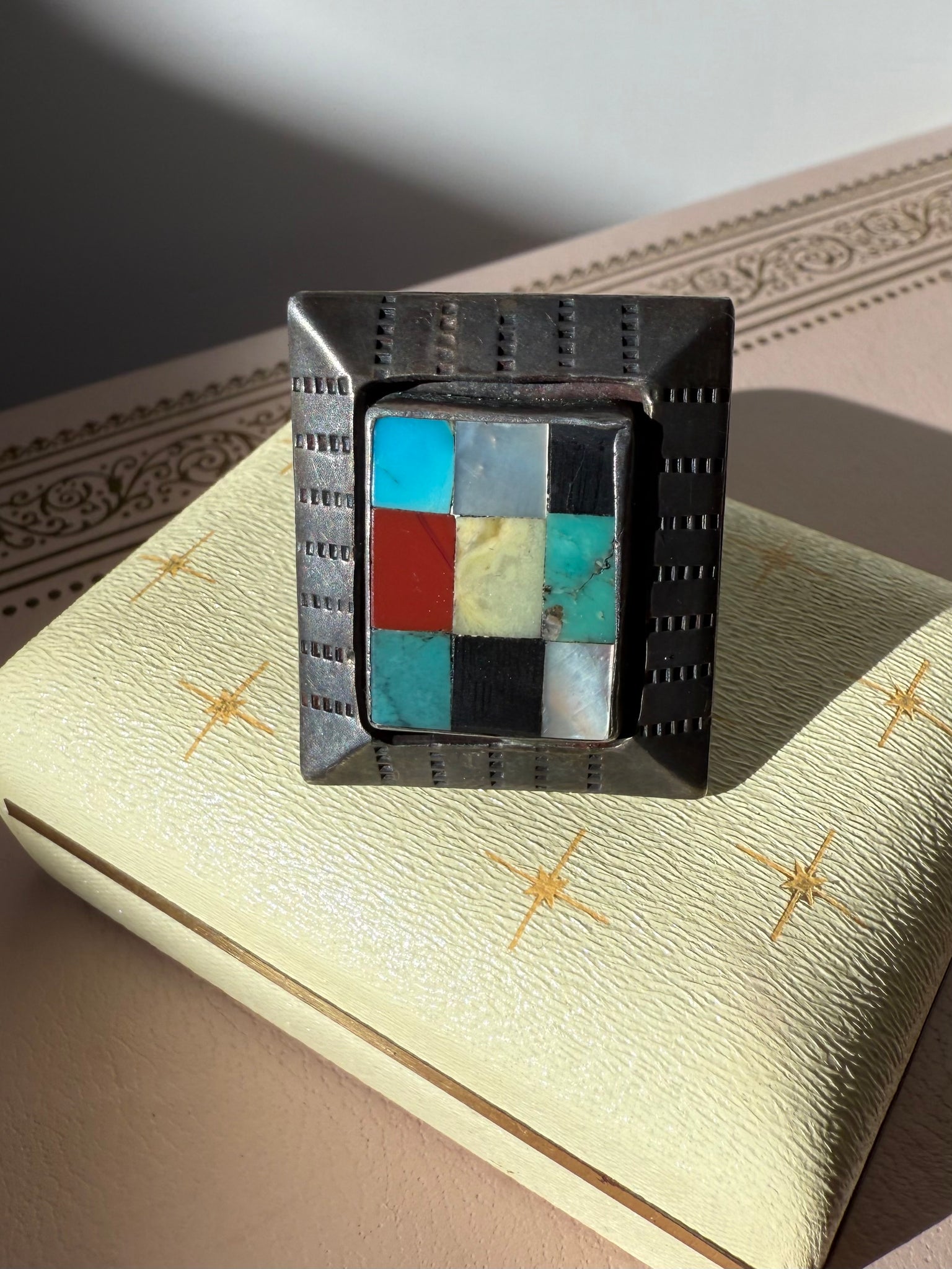 Mosaic Inlay Sterling Silver Chunky Ring Size 11.5