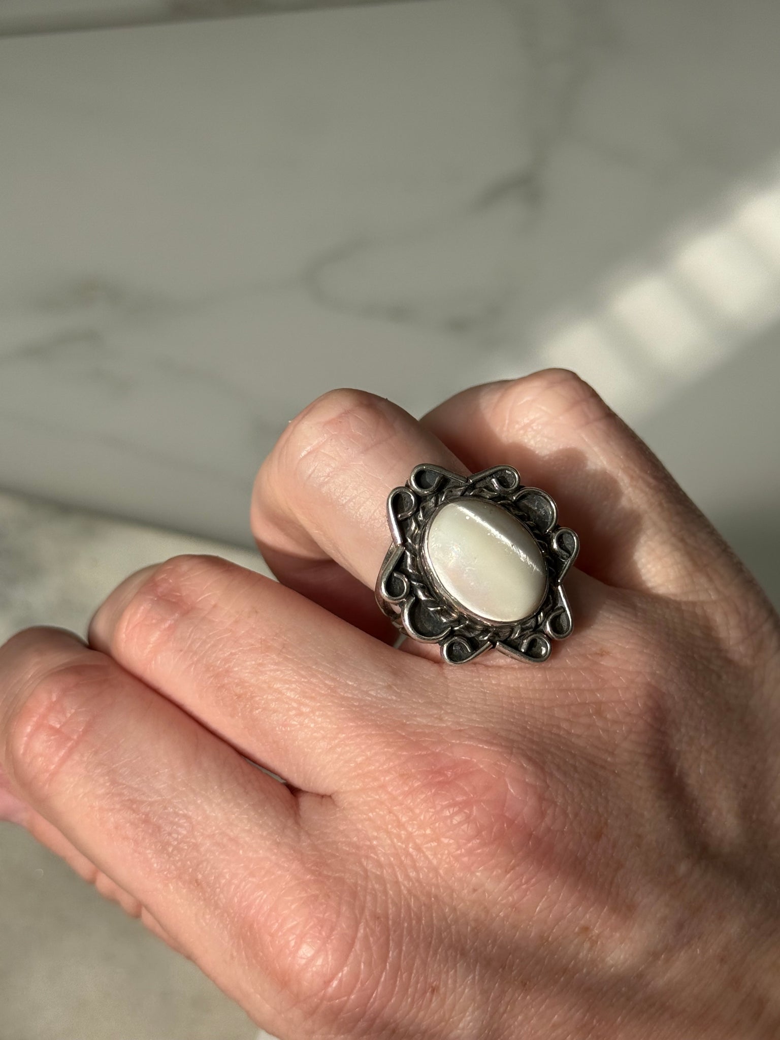 Mother of Pearl Sterling Ring Size 7