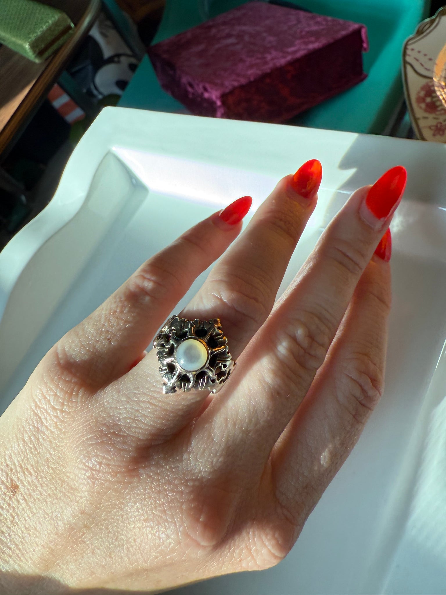 Mother of Pearl Sterling Silver Ring Size 7