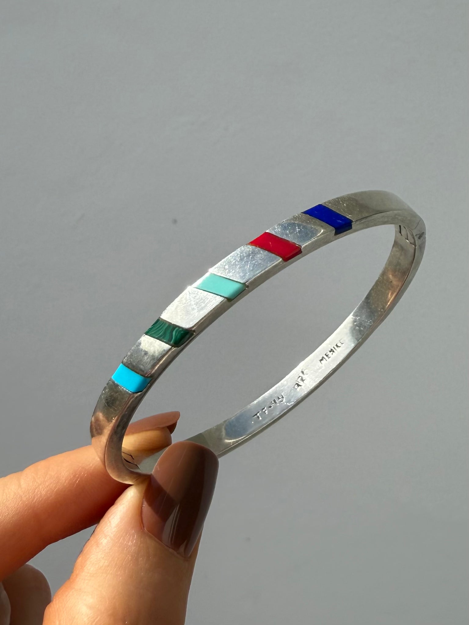 Mexico Multistone Inlay Sterling Bangle