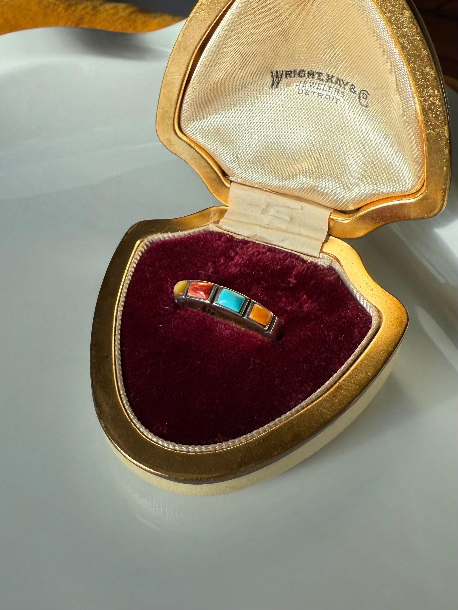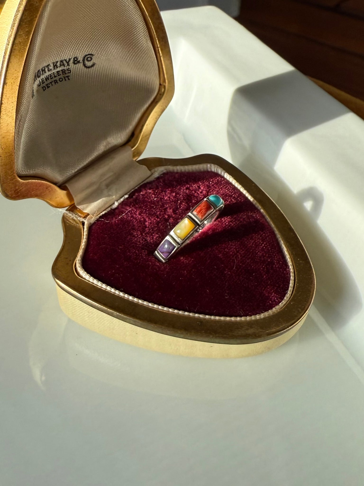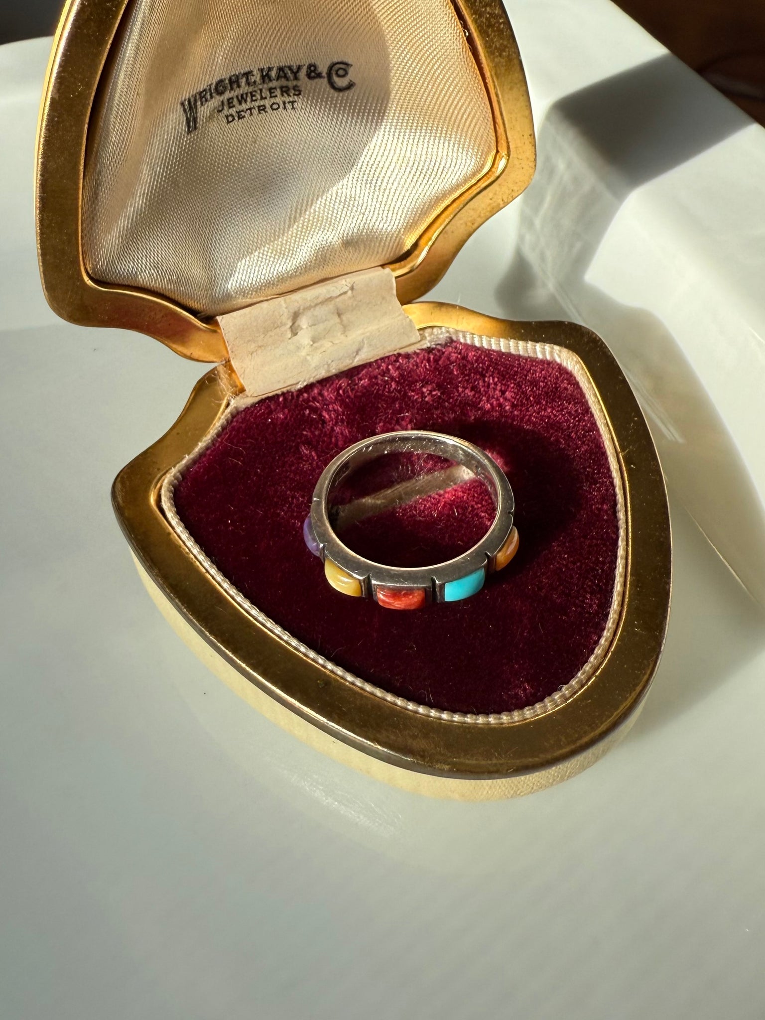 Multistone Inlay Sterling Silver Ring Size 7.25