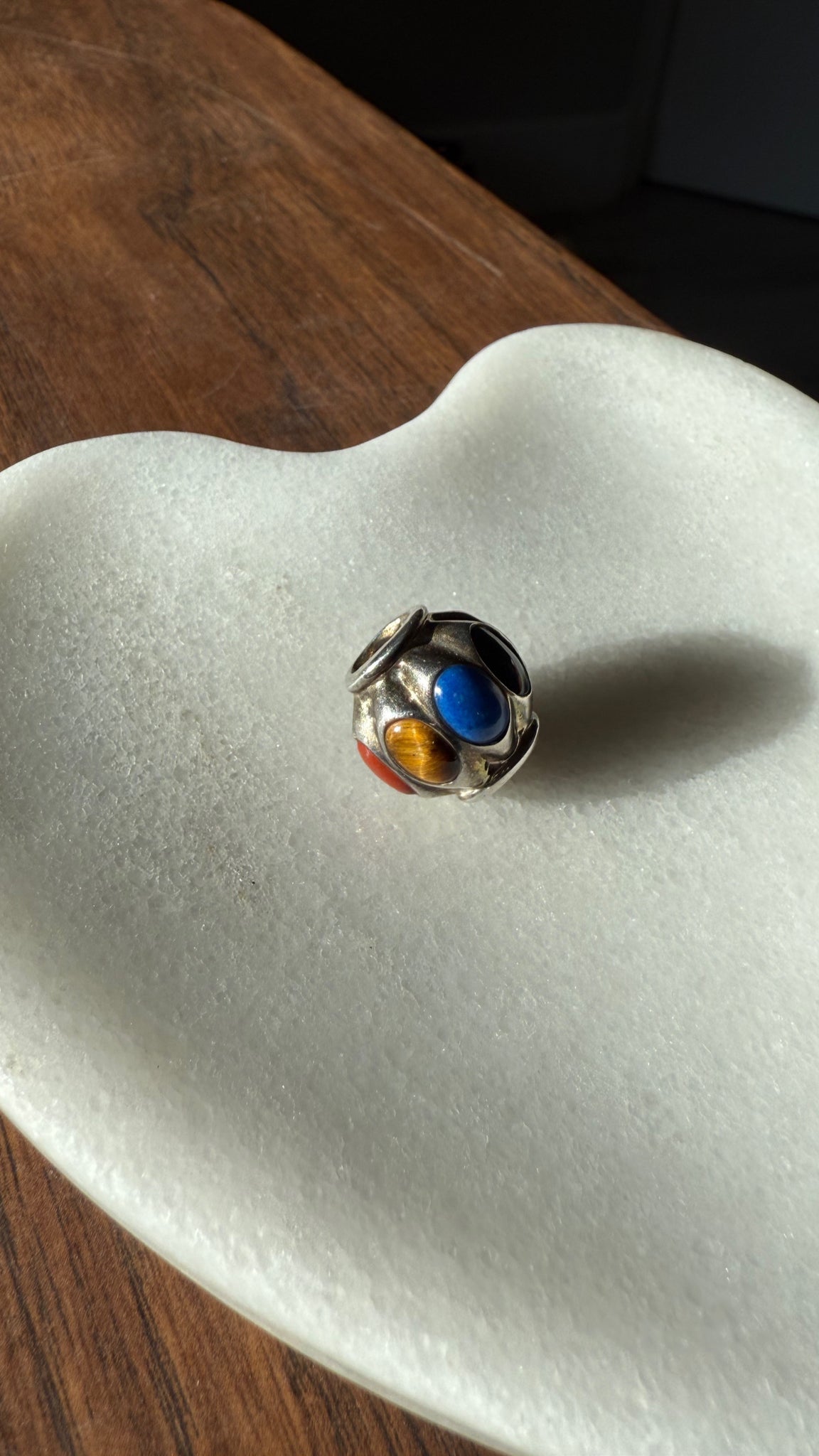6.1 grams • .925 Sterling silver with black onyx, lapis, tigers eye • 15mm x 14mm