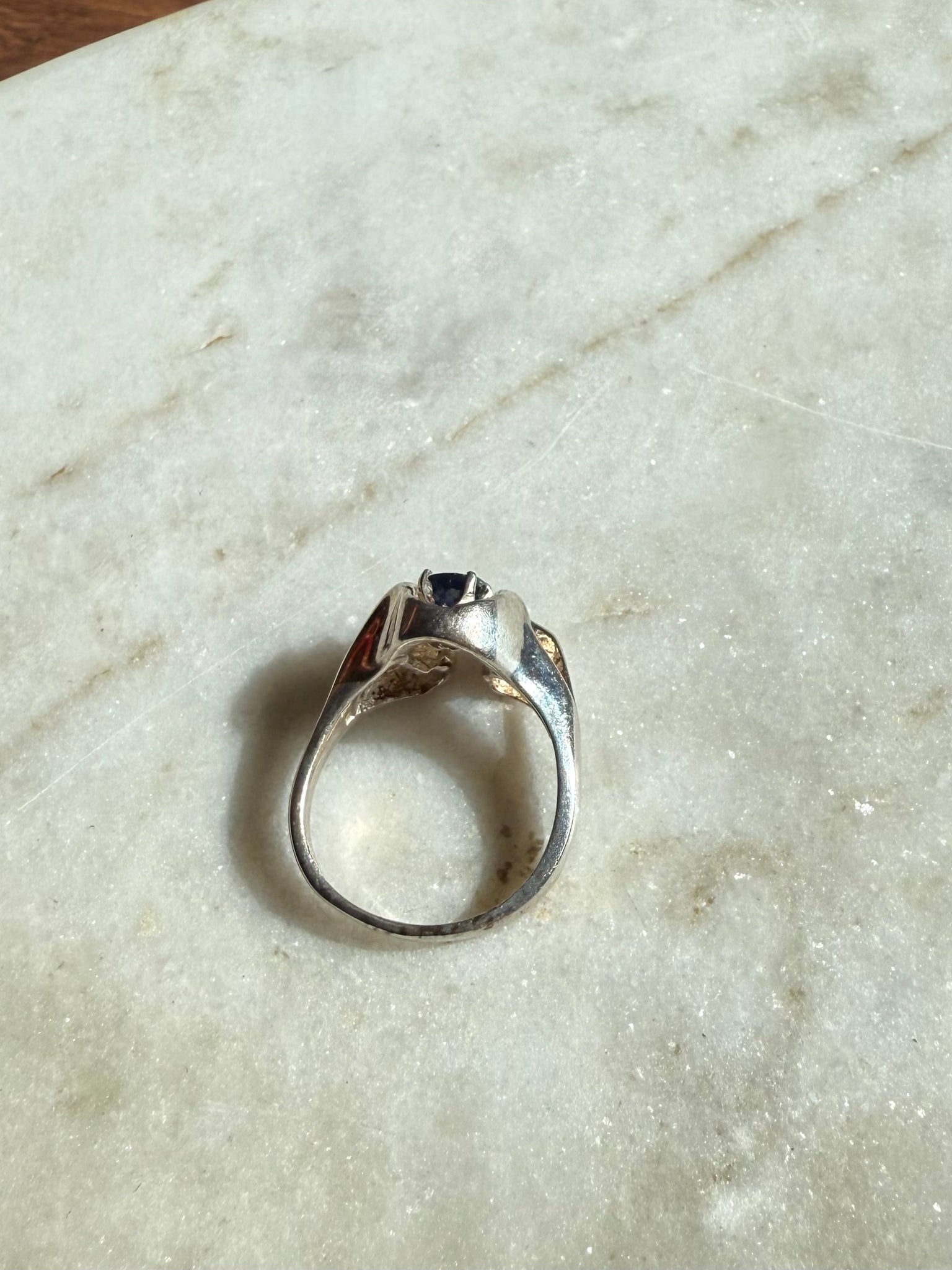 Natural Blue Sapphire Sterling Silver Ring Size 6.5
