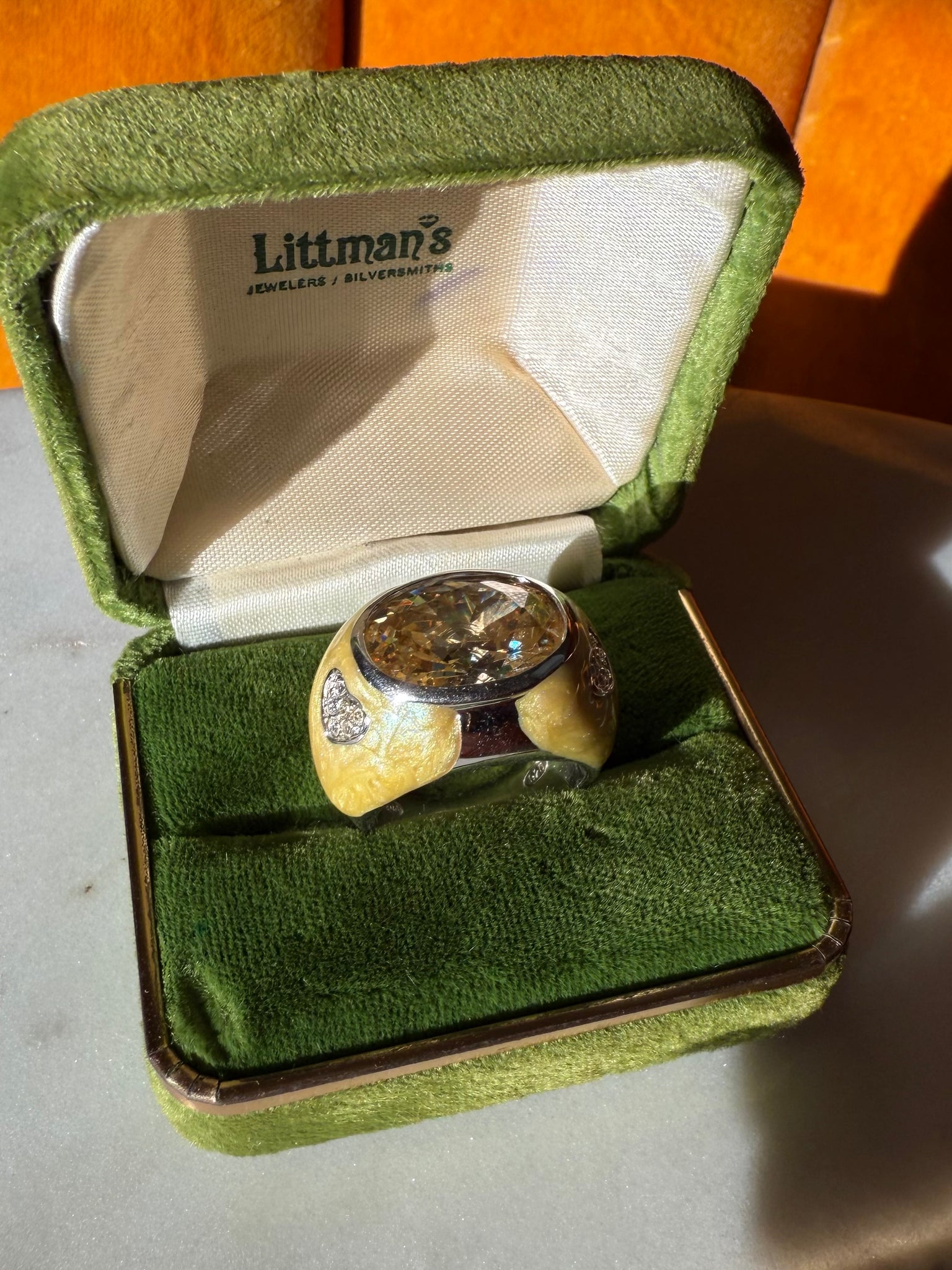 Pastel Yellow Enamel Sterling Silver Ring Size 8.5