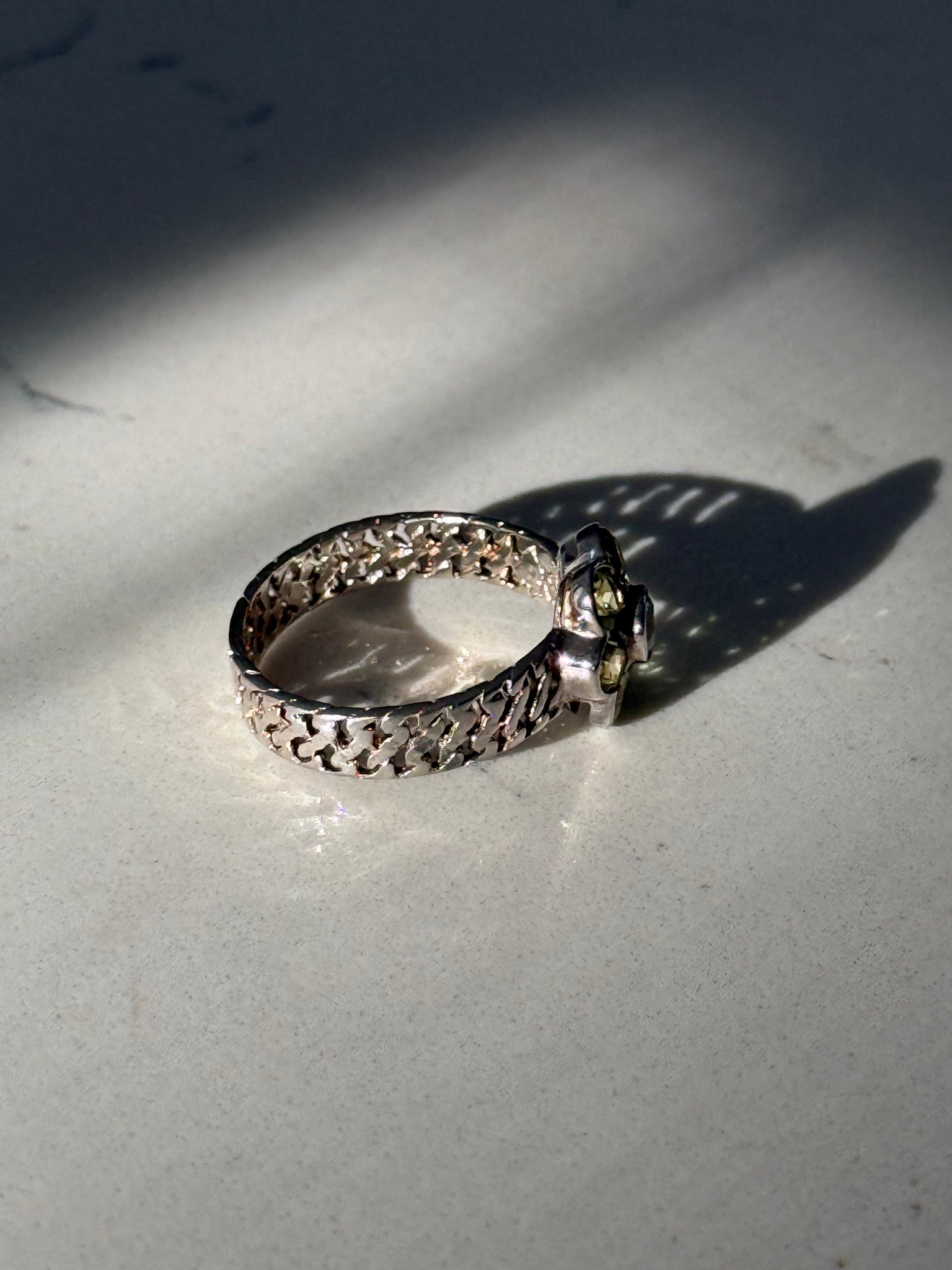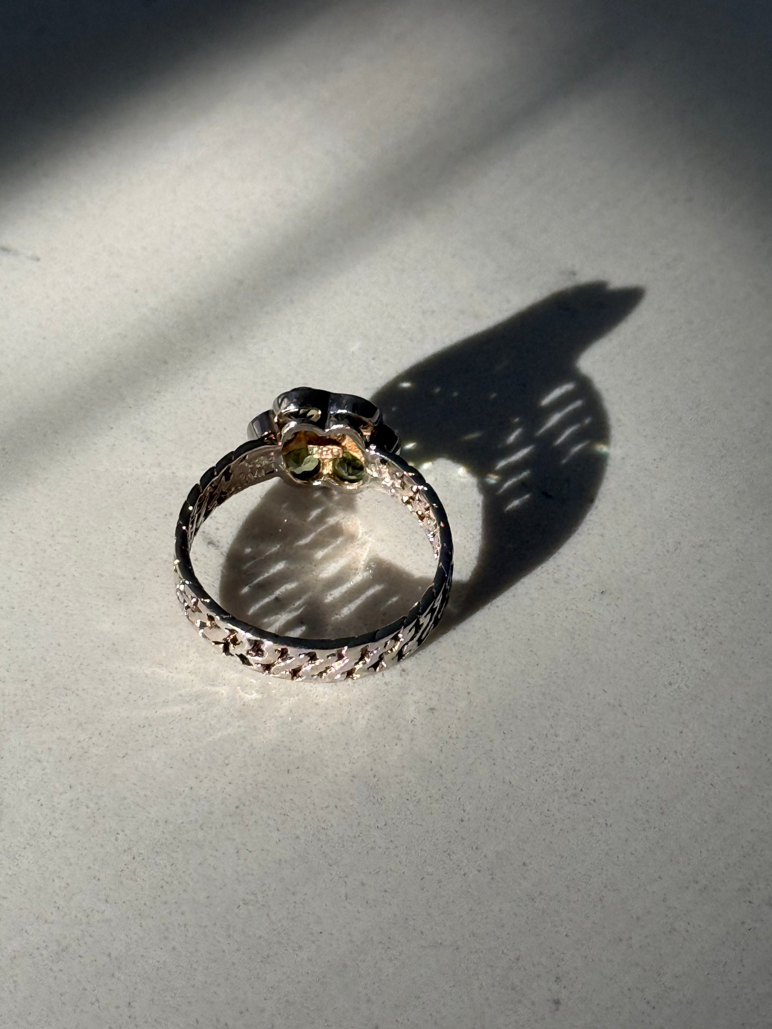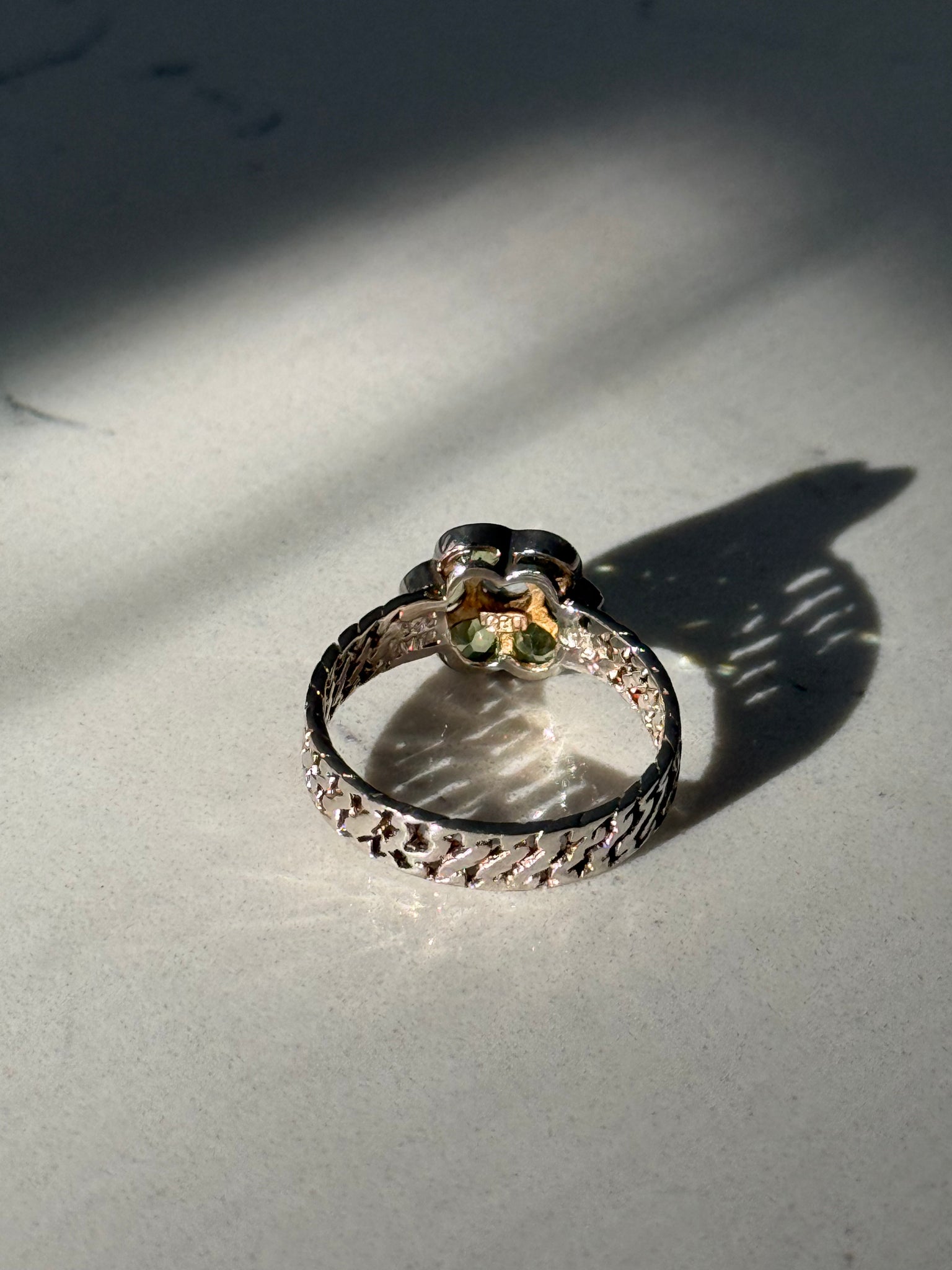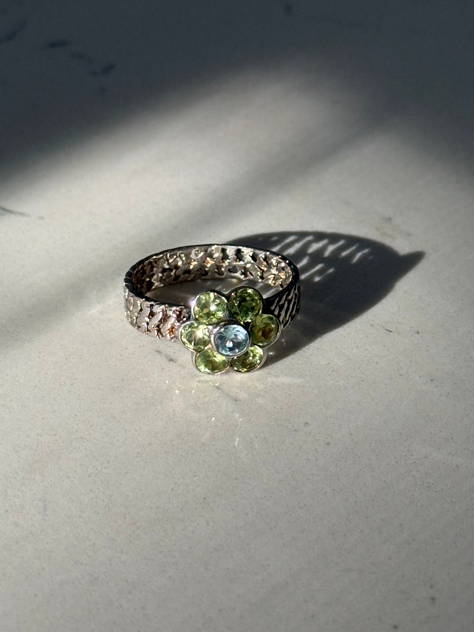 Peridot & Blue Topaz Flower Sterling Silver Ring Size 10