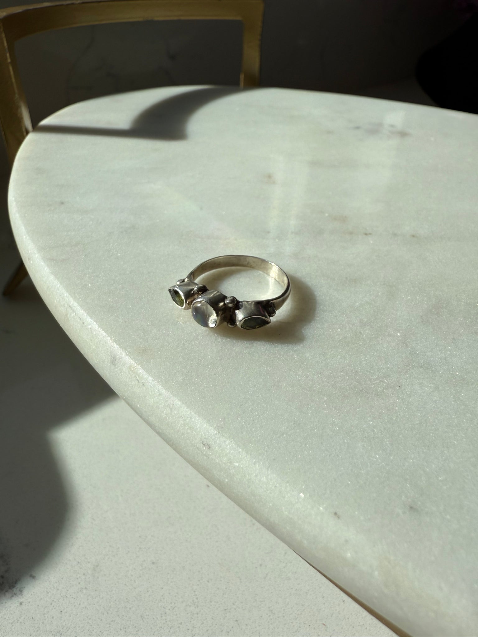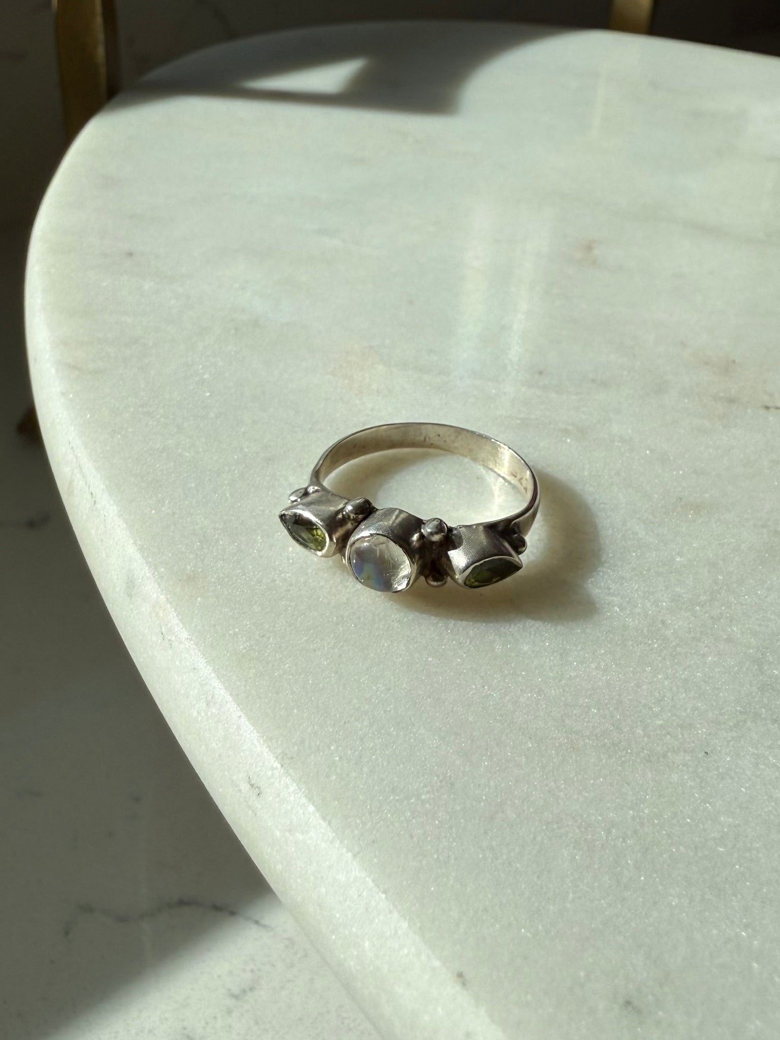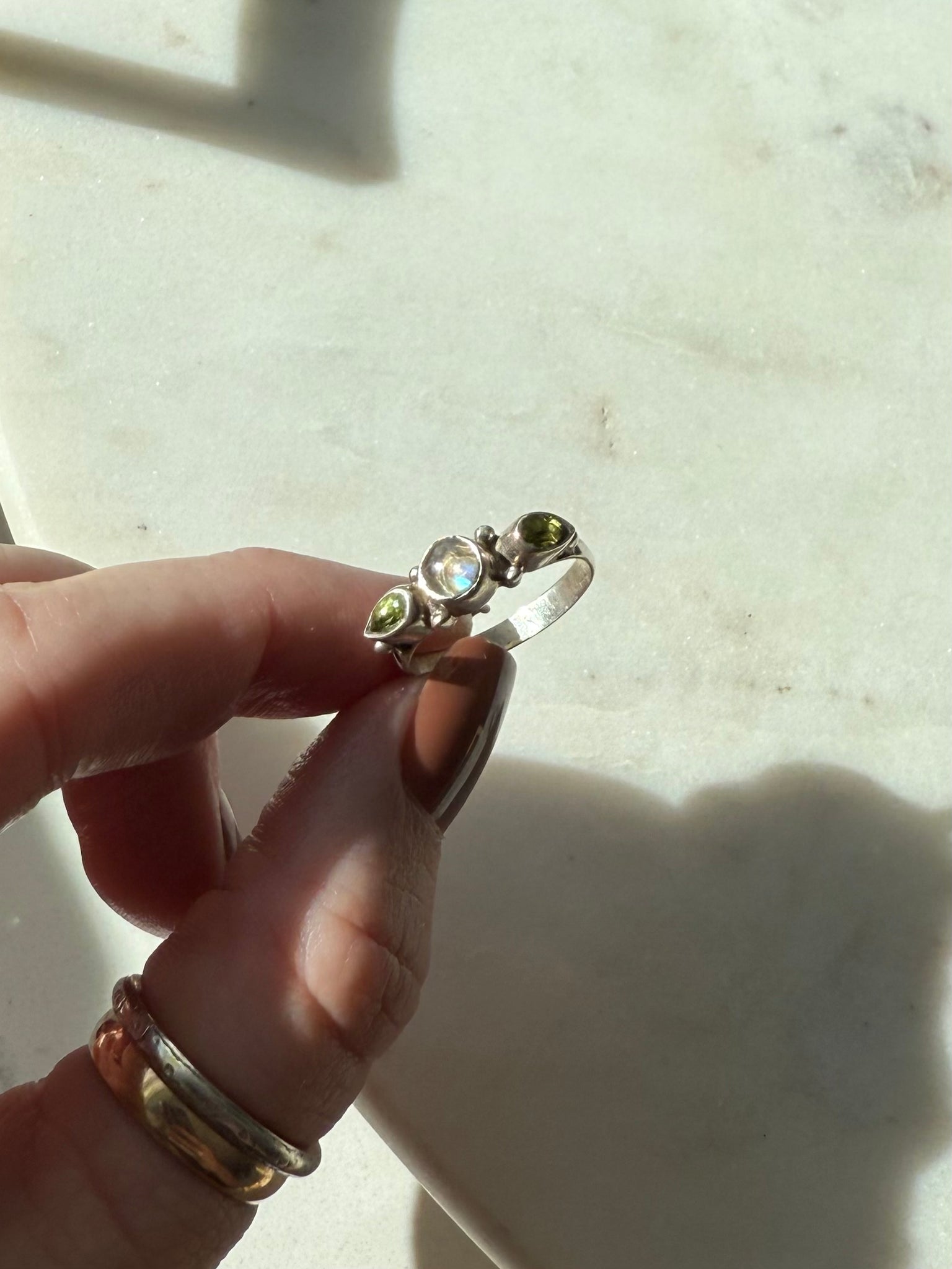 Peridot & Moonstone Sterling Silver Ring Size 6.75