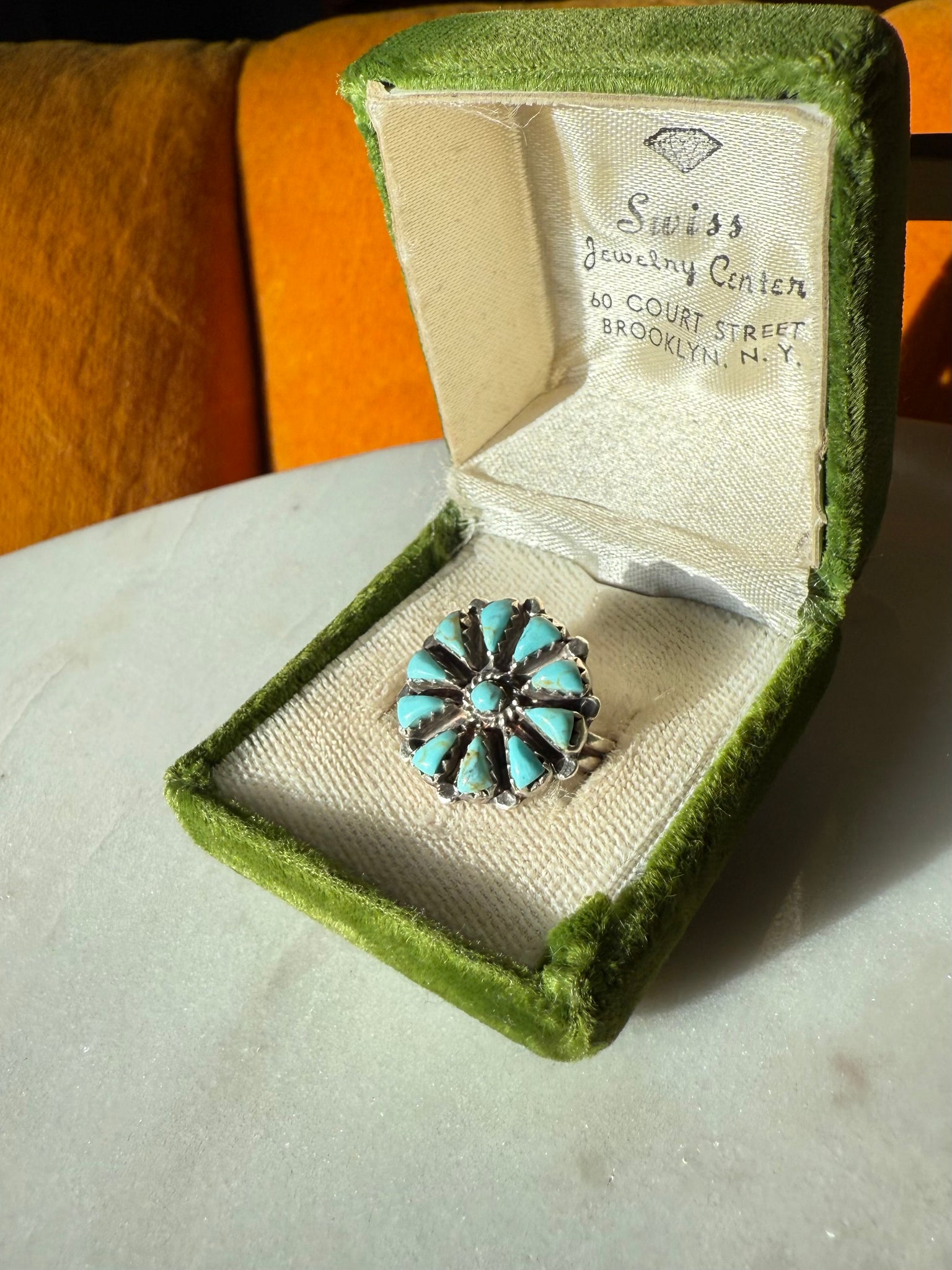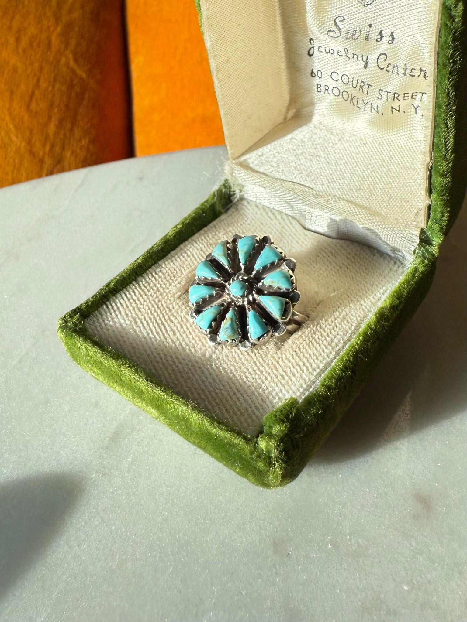 Petit Point Turquoise Sterling Silver Ring Size 6.25