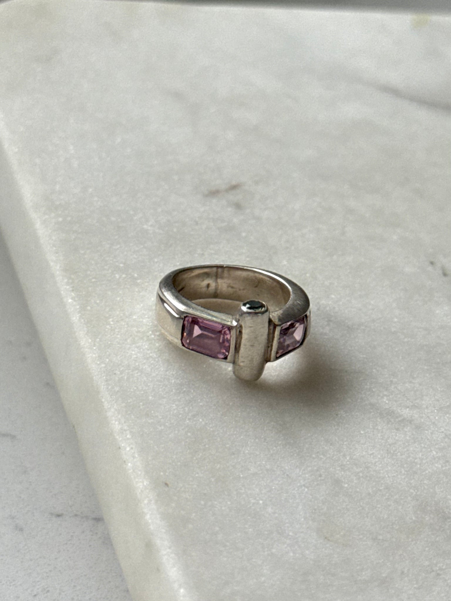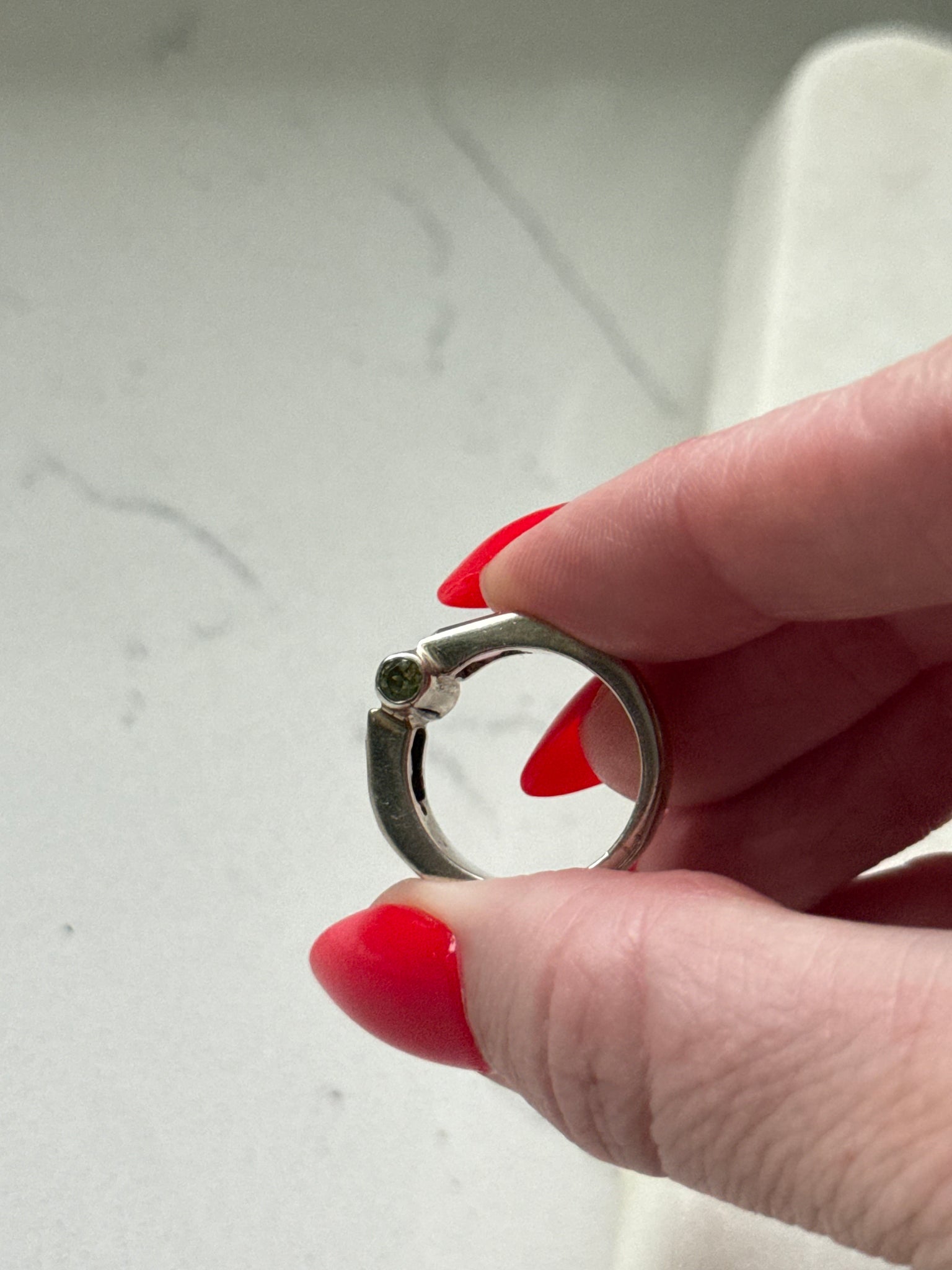 Pink Quartz & Peridot Sterling Silver Ring Size 6