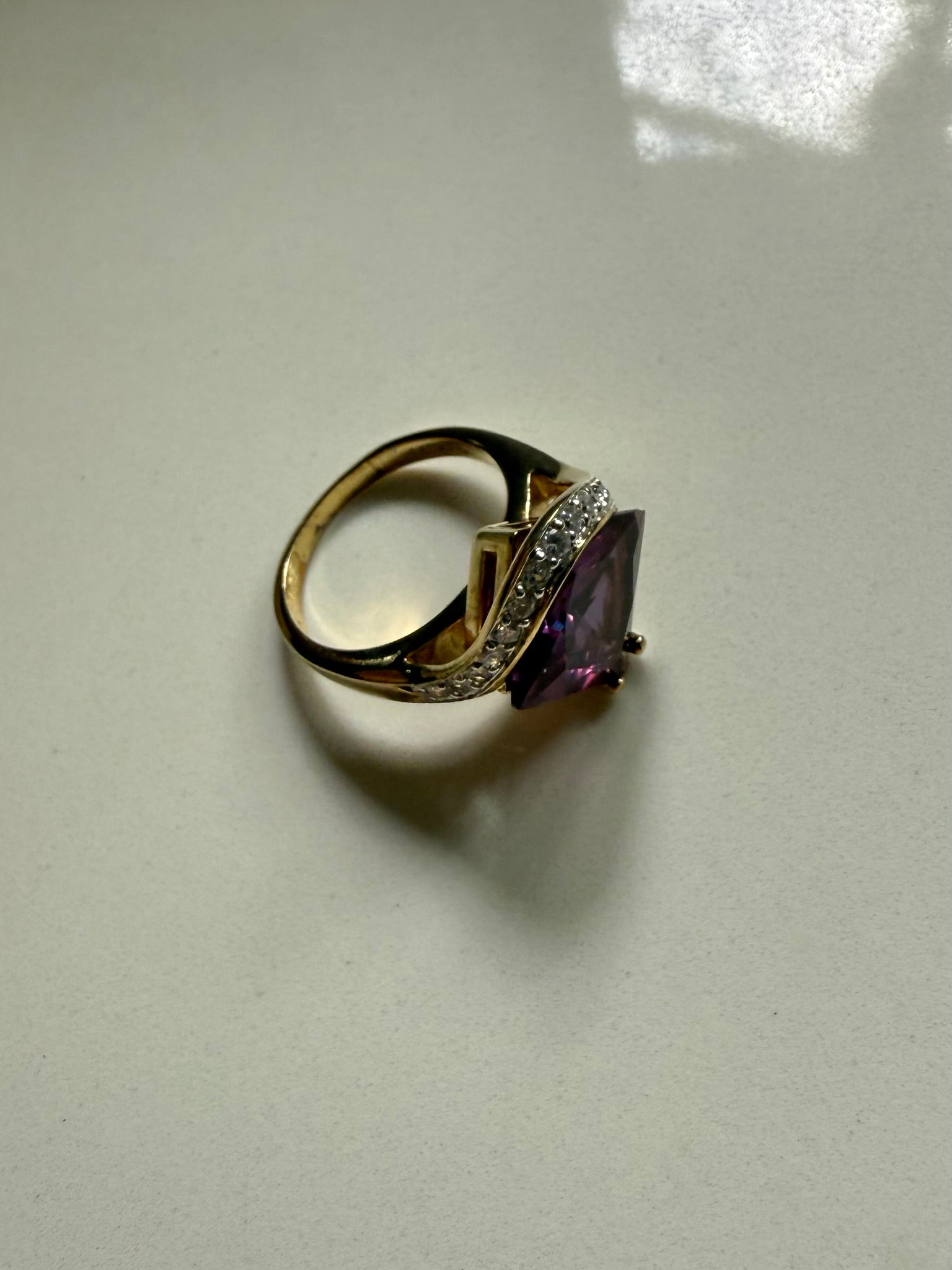 Purple Spinel & CZ Gold Vermeil Ring Size 9.25