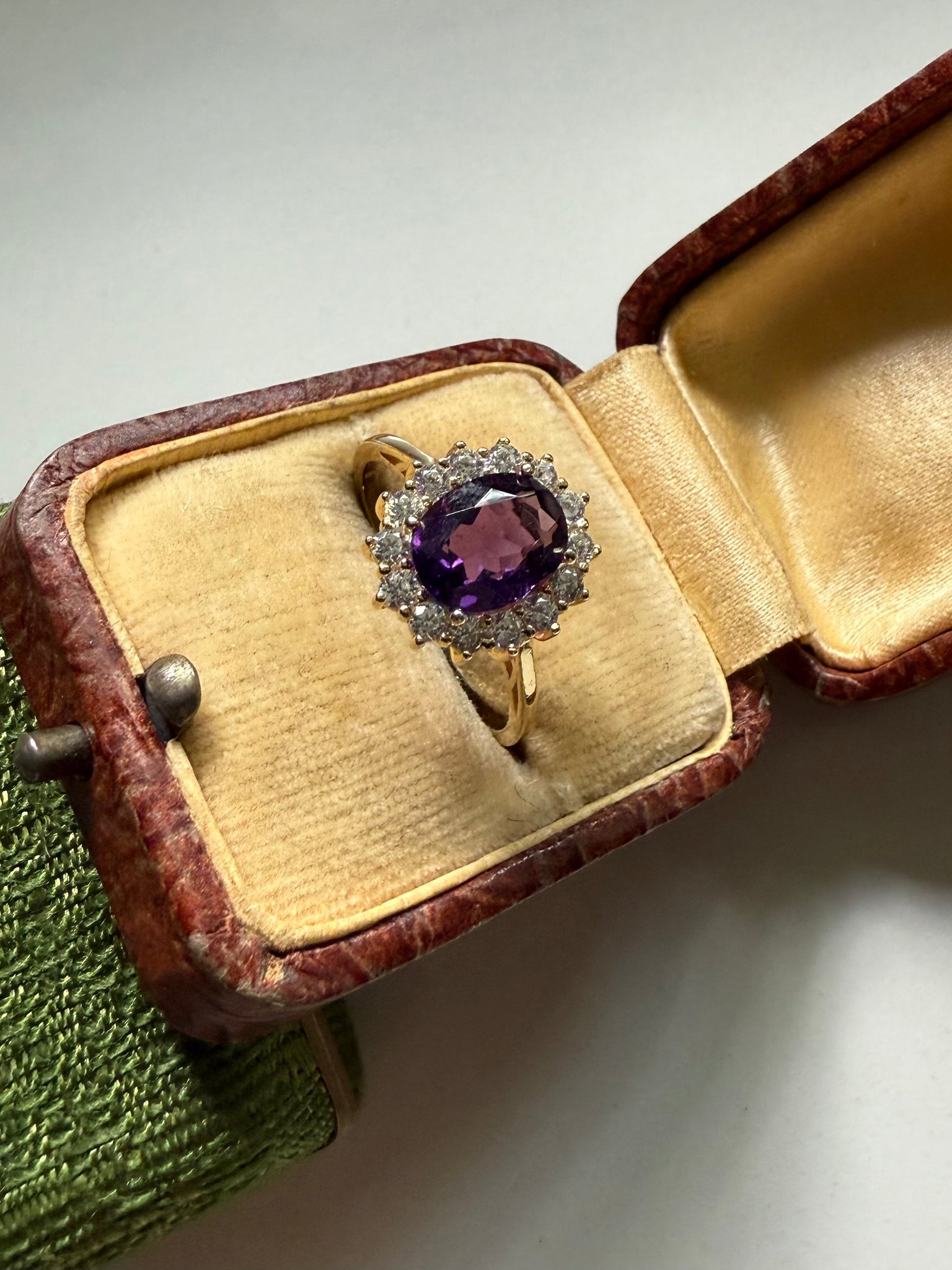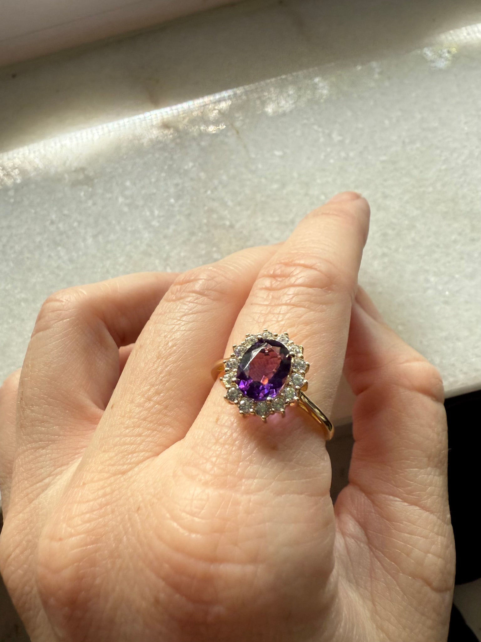 Purple Spinel & CZ Gold Vermeil Ring Size 9.25