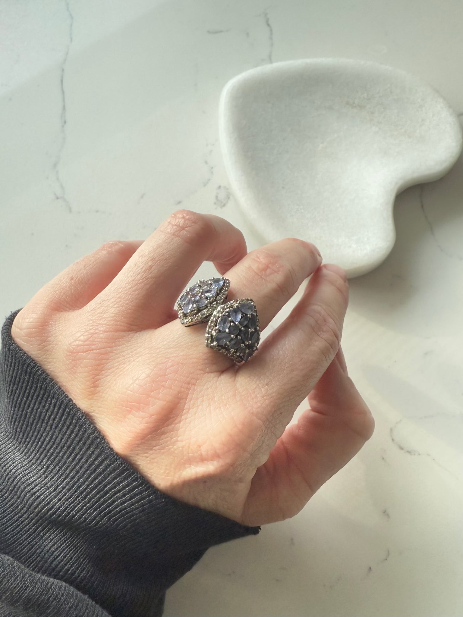 Tanzanite & Quartz Sterling Silver Ring Size 7