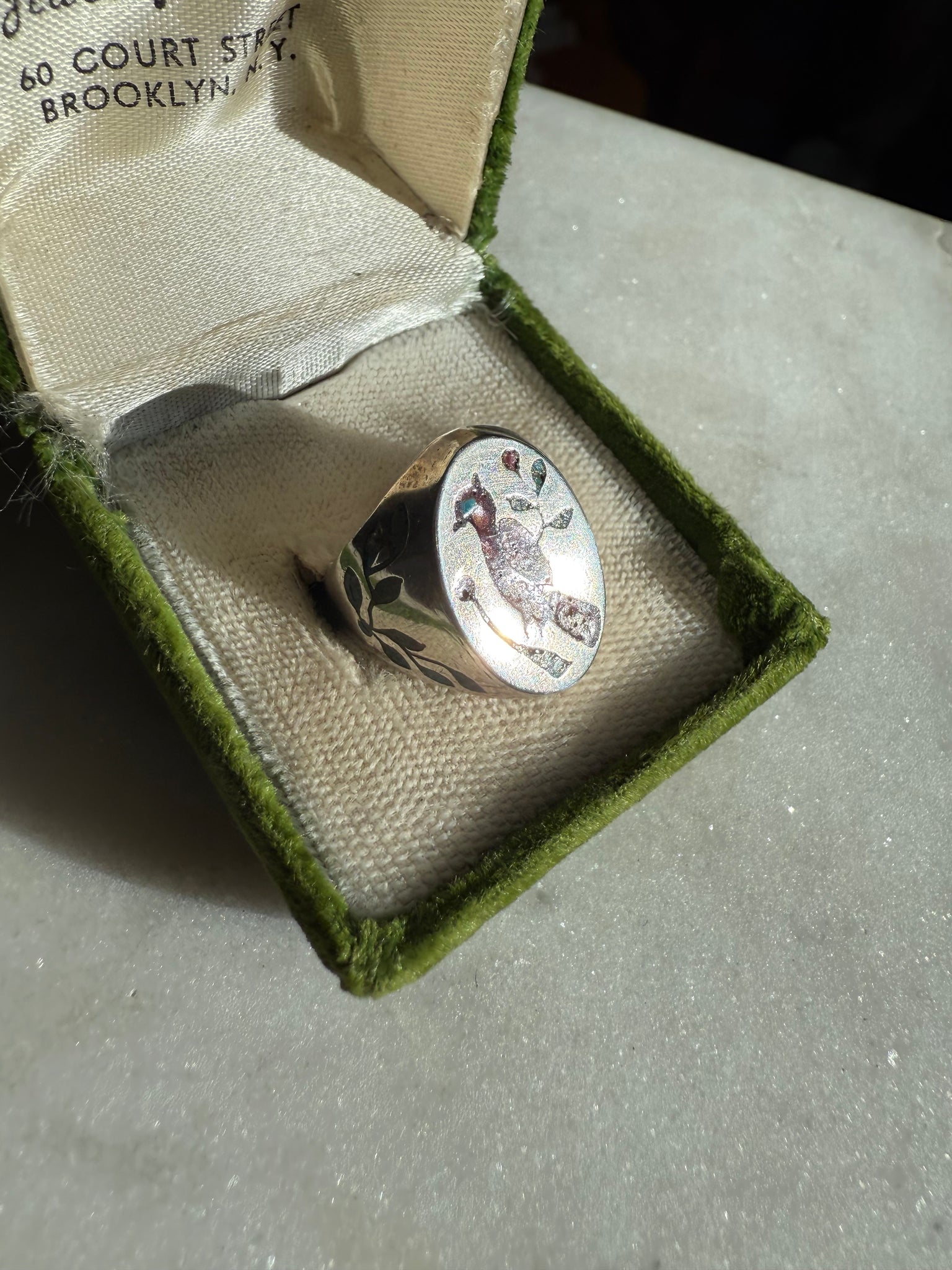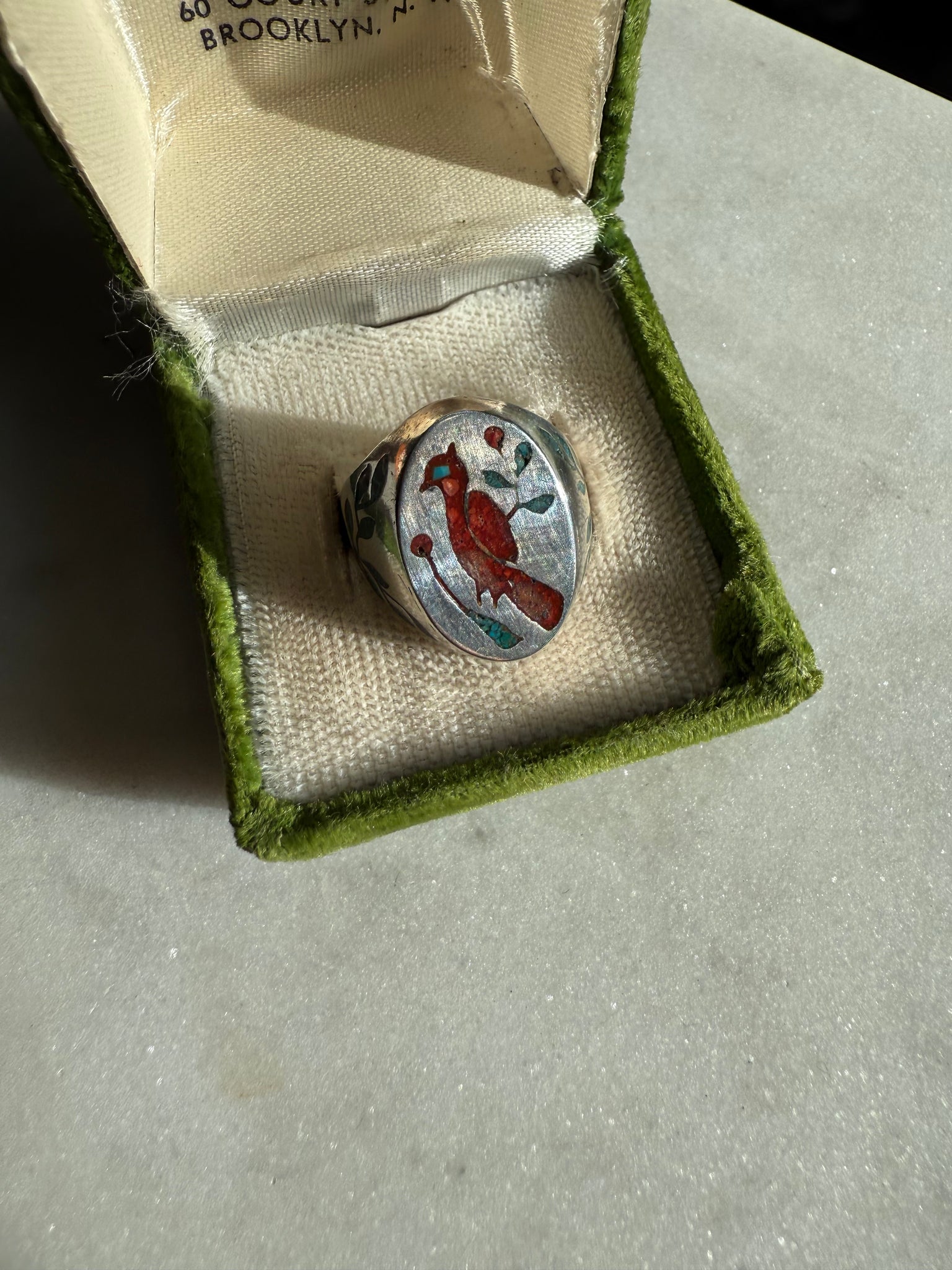 Red Cardinal Sterling Silver Inlay Signet Ring Size 7.75