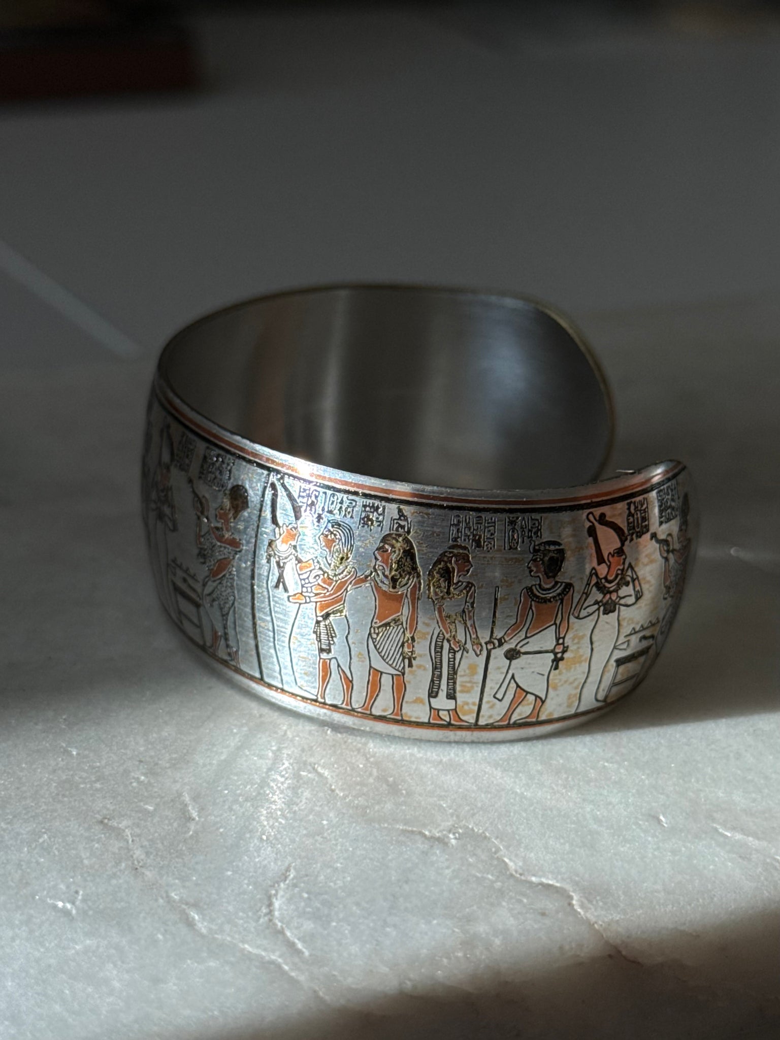 Silver plated costume jewelry • 30.6 grams • 2.30” inner diameter, best fits 7”-7.5” wrist