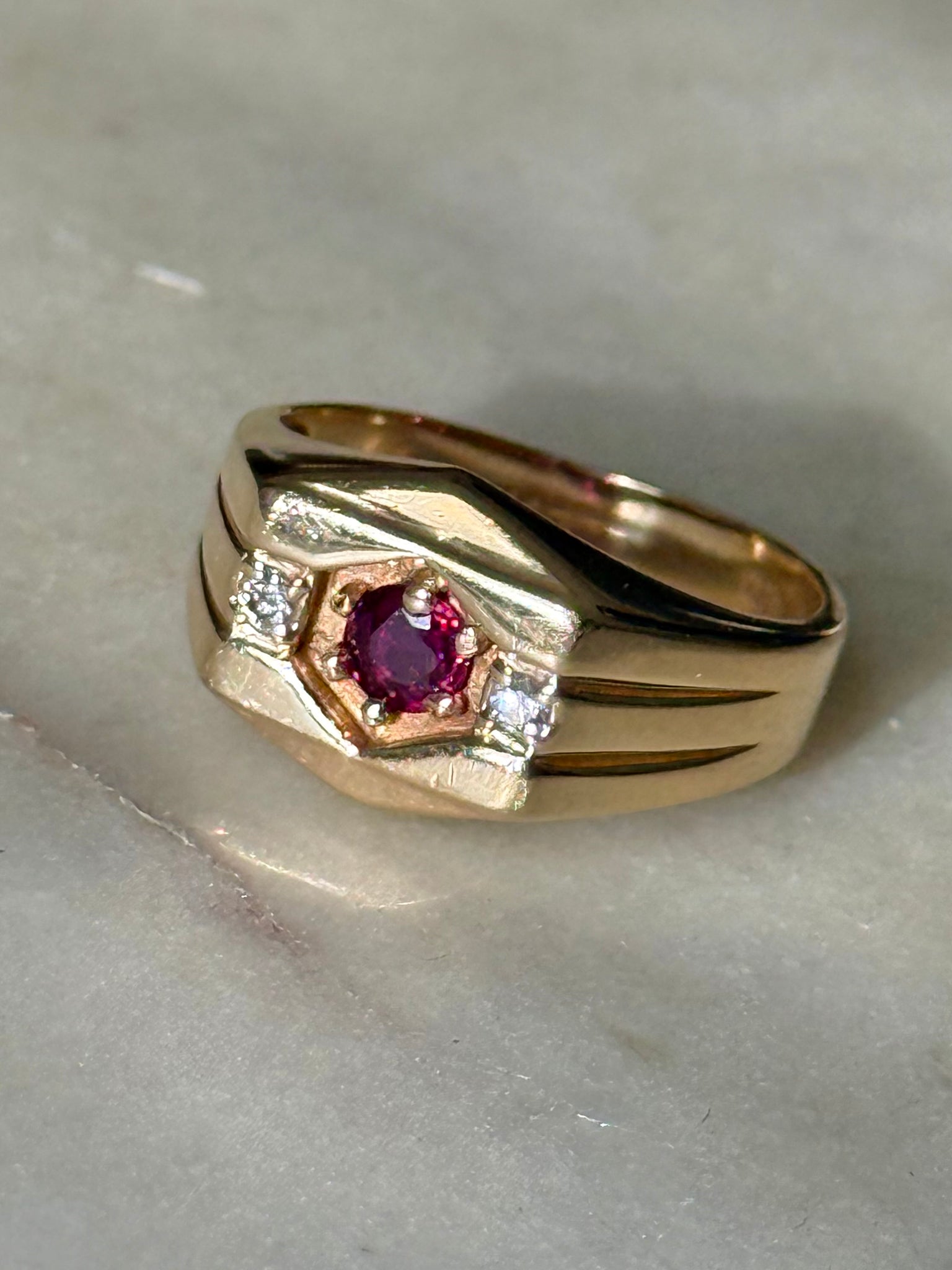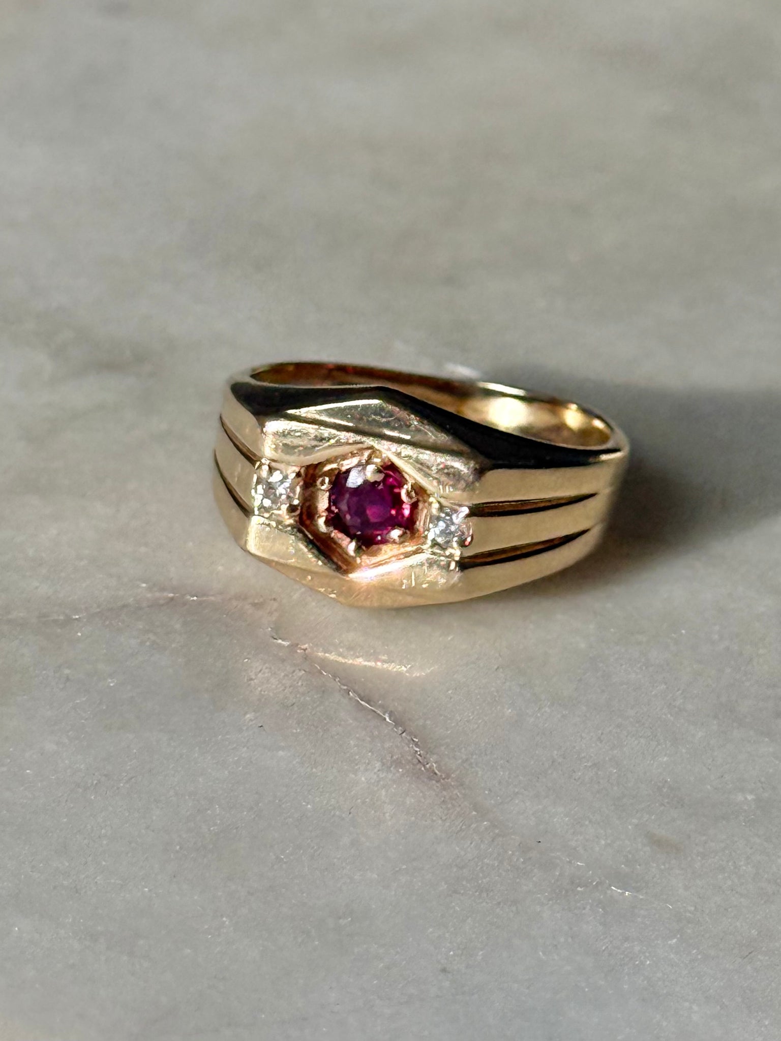 Ruby & Diamond Solid 14k Yellow Gold Ring