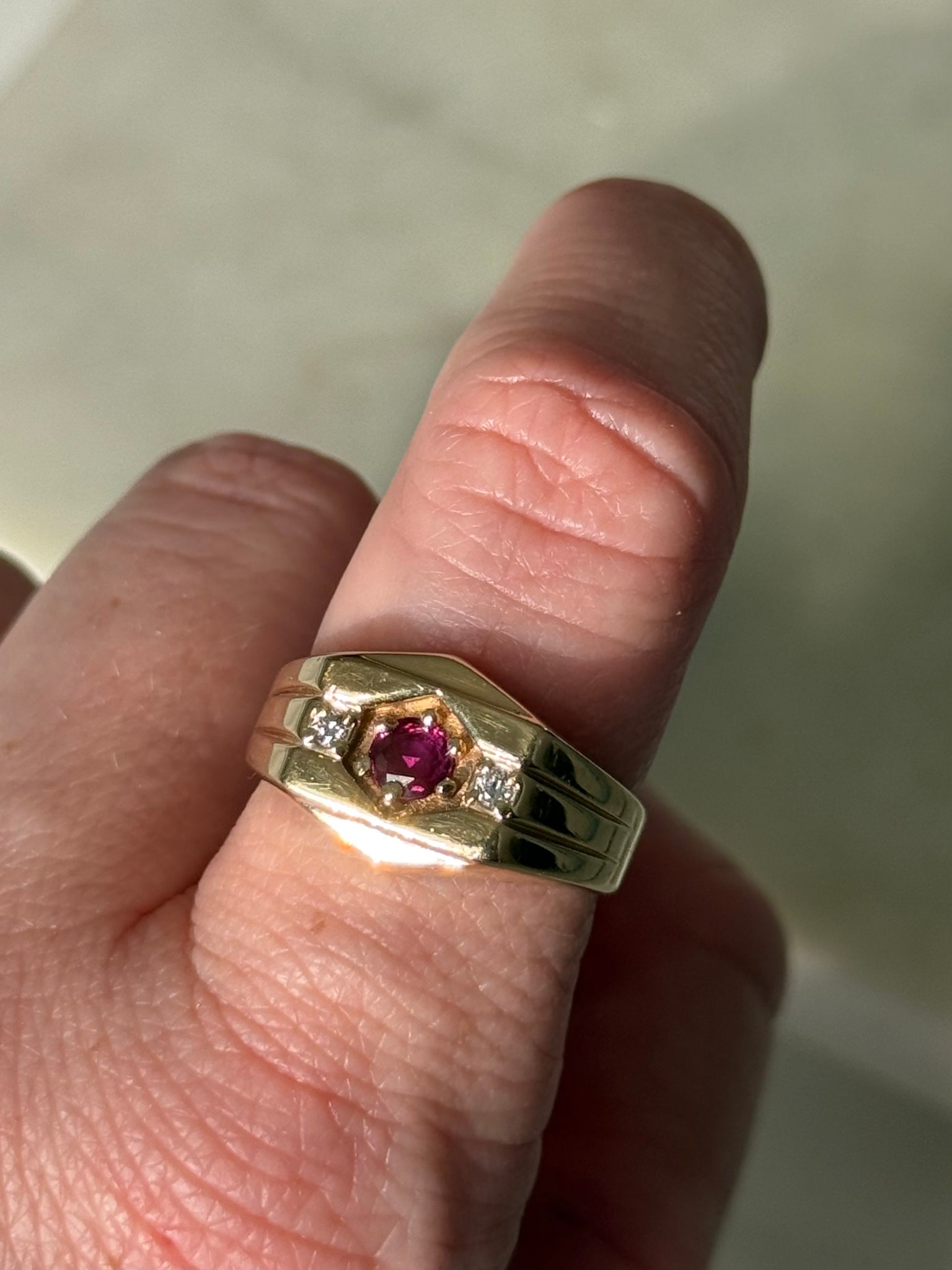 Ruby & Diamond Solid 14k Yellow Gold Ring Size 8.5