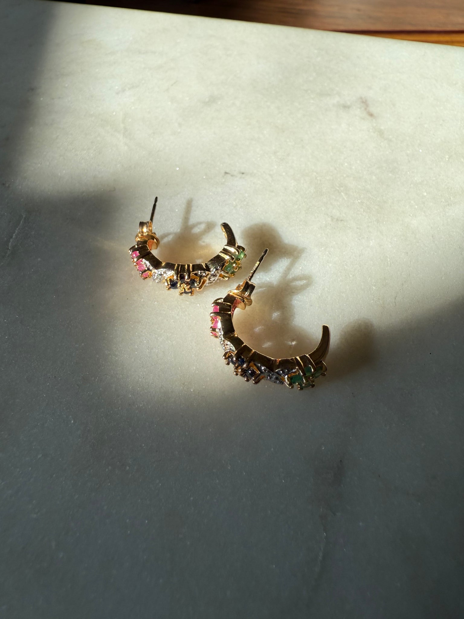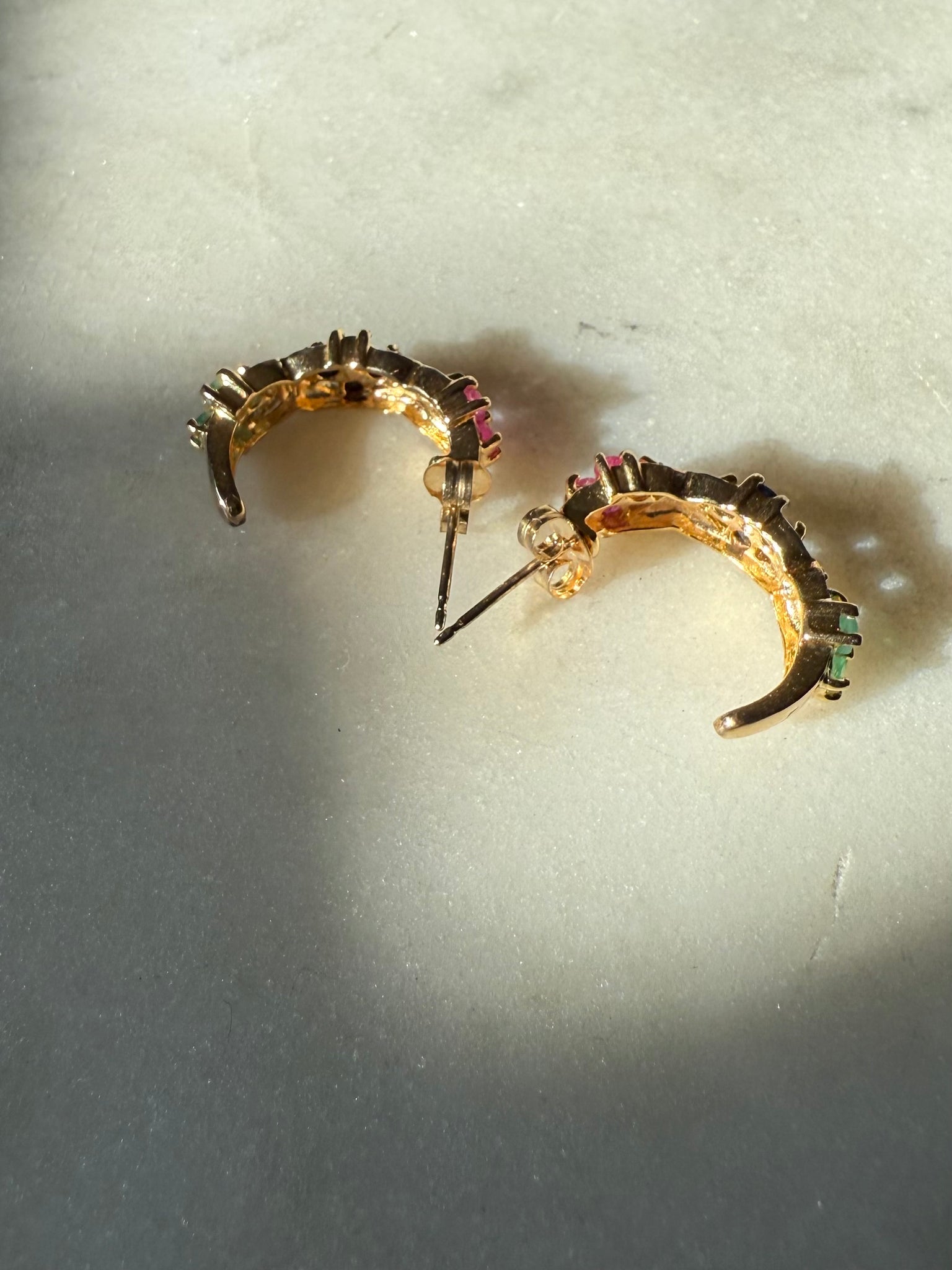 Ruby Emerald Blue Sapphire Gold Vermeil Half Hoops