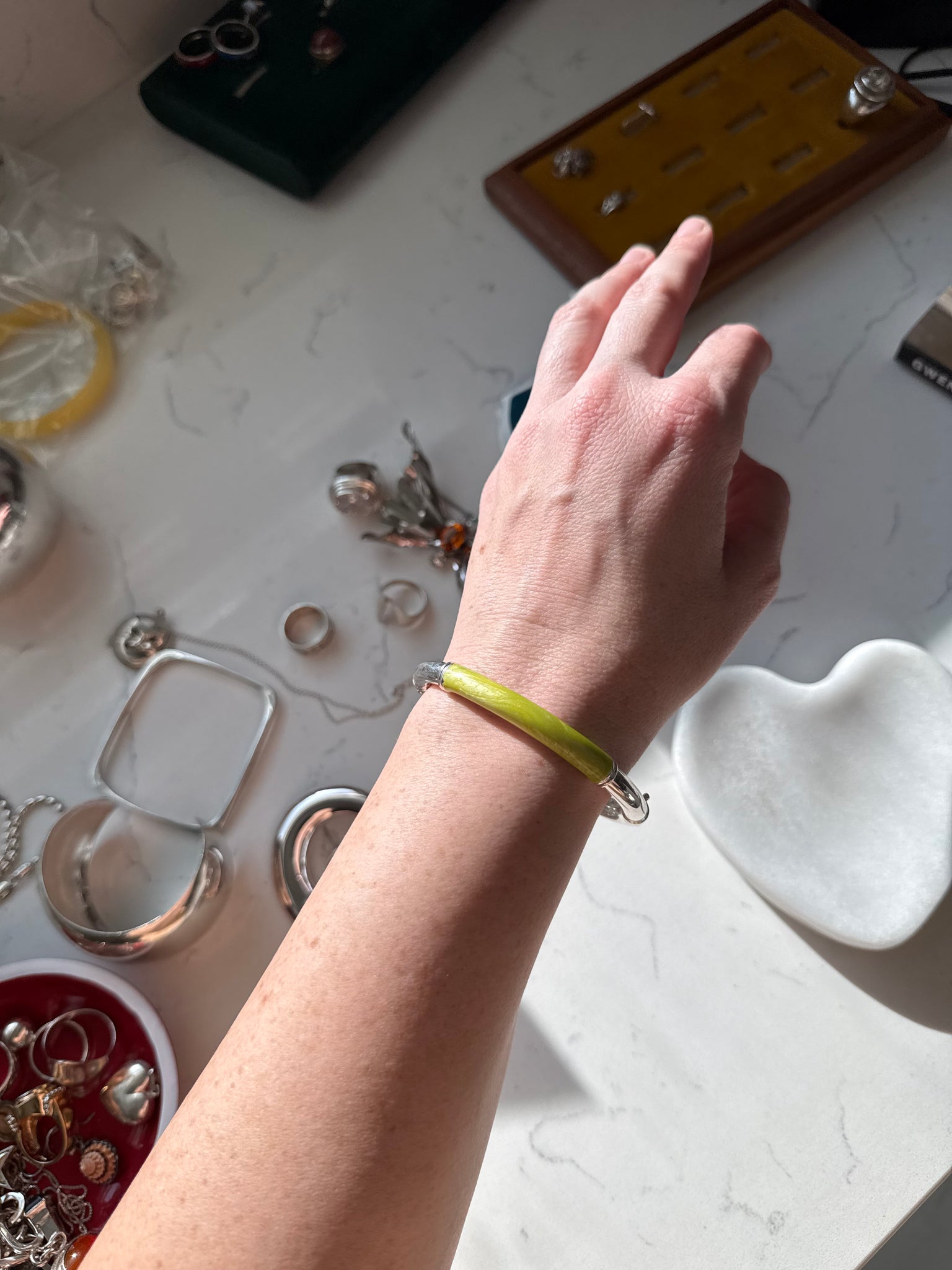 .925 Sterling silver • 17.2 grams • 2.38” inner diameter • fits 6.5”-7.5” wrist best