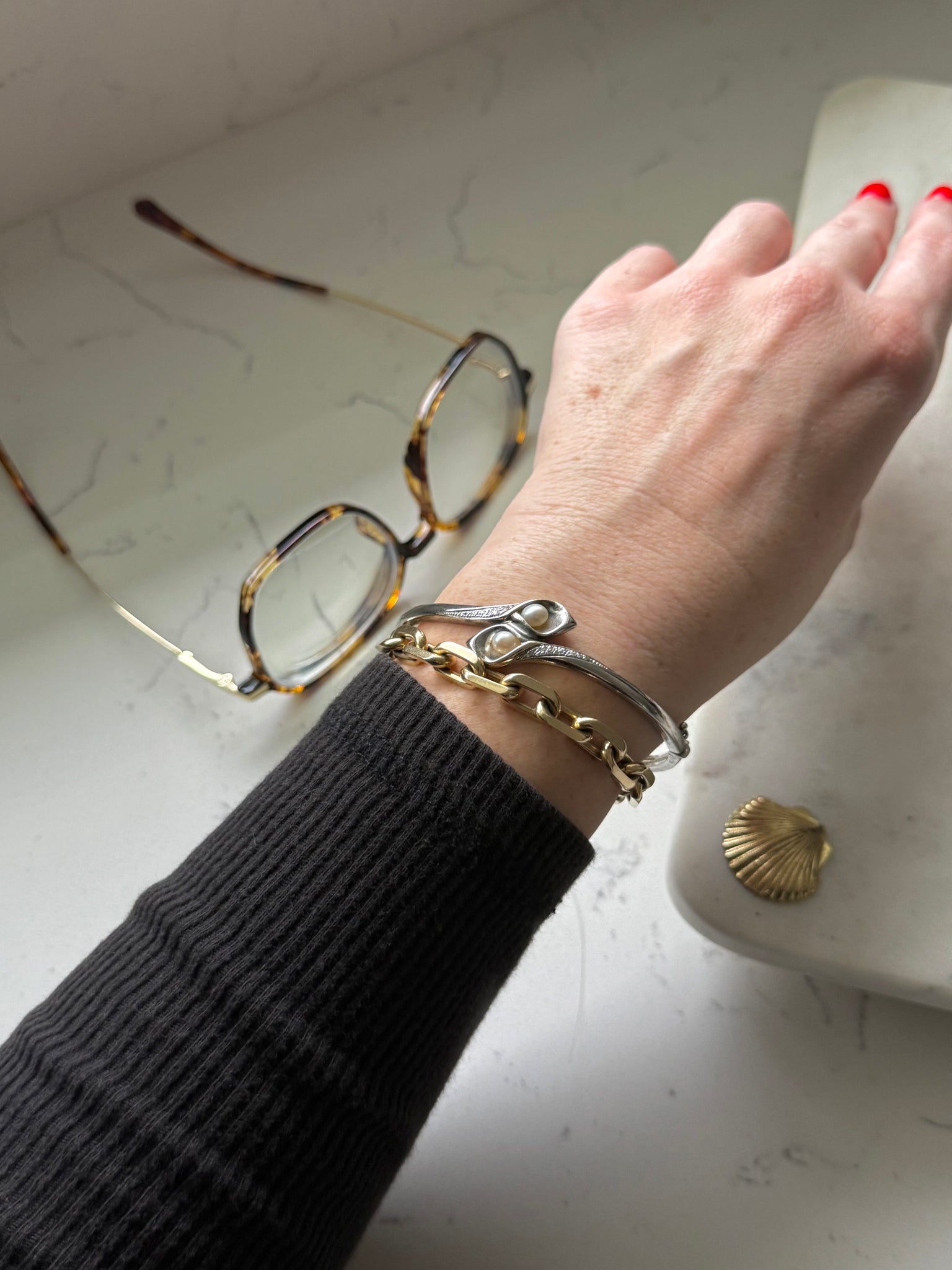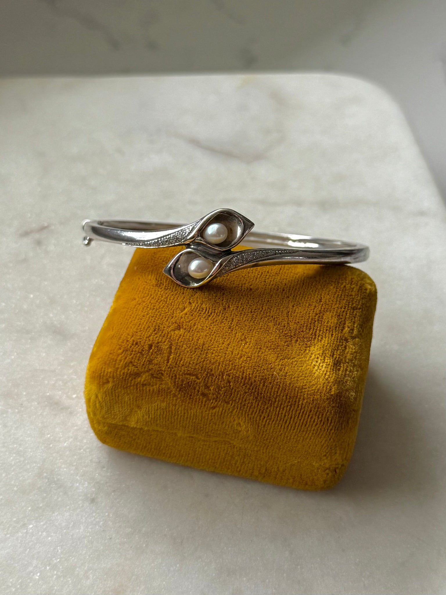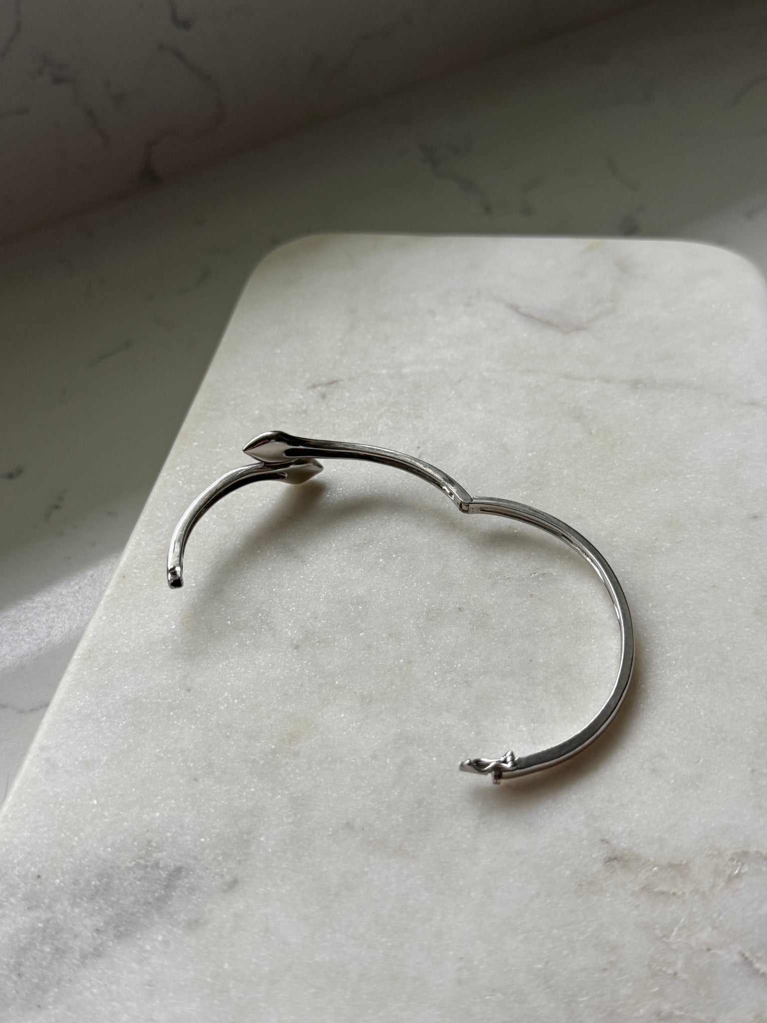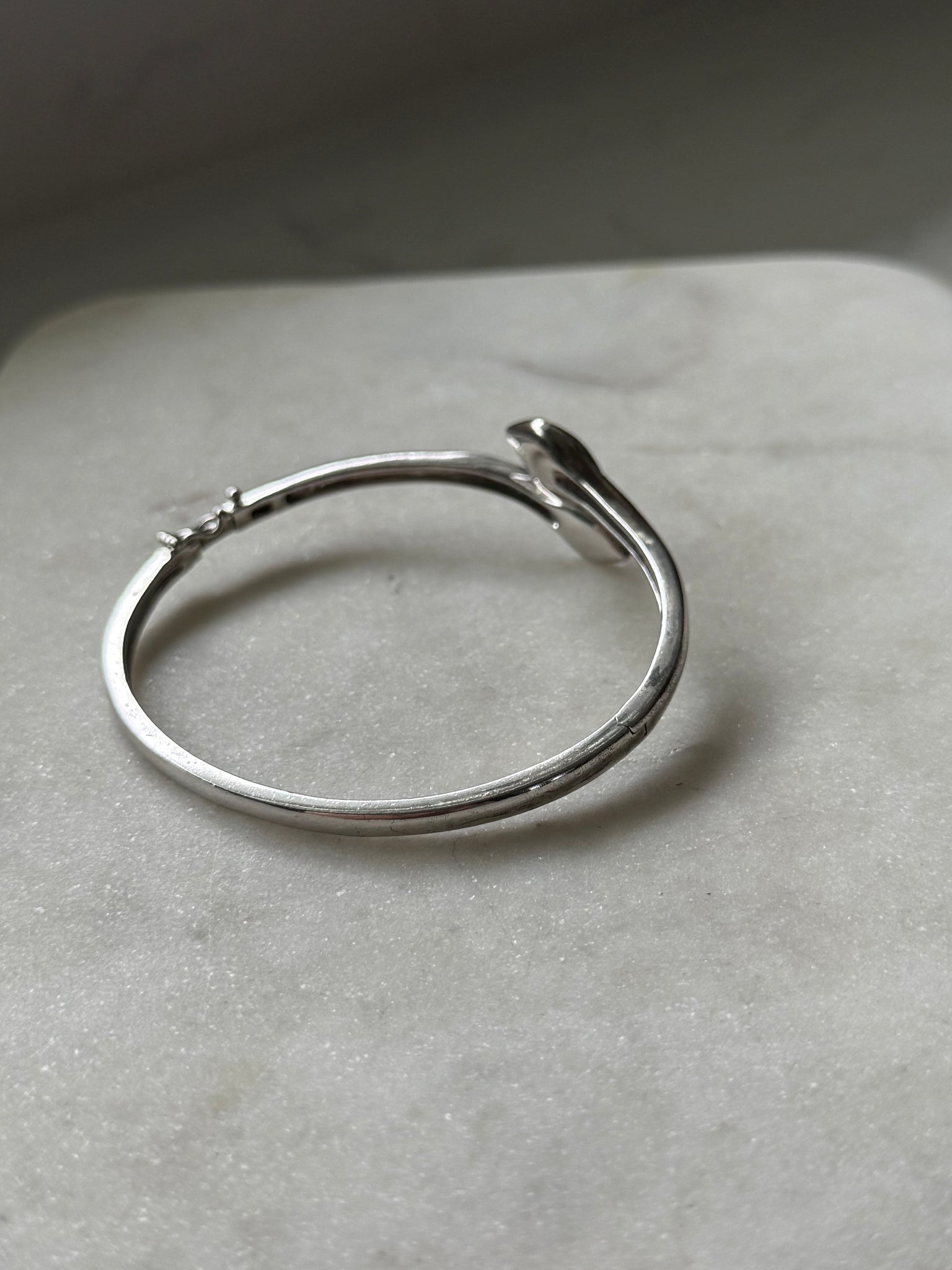Stamped .925 and 14k gold • total weight is 19.3 grams • 2.38” inner diameter • fits around size 7.5” wrist best but check inner diameter to be sure