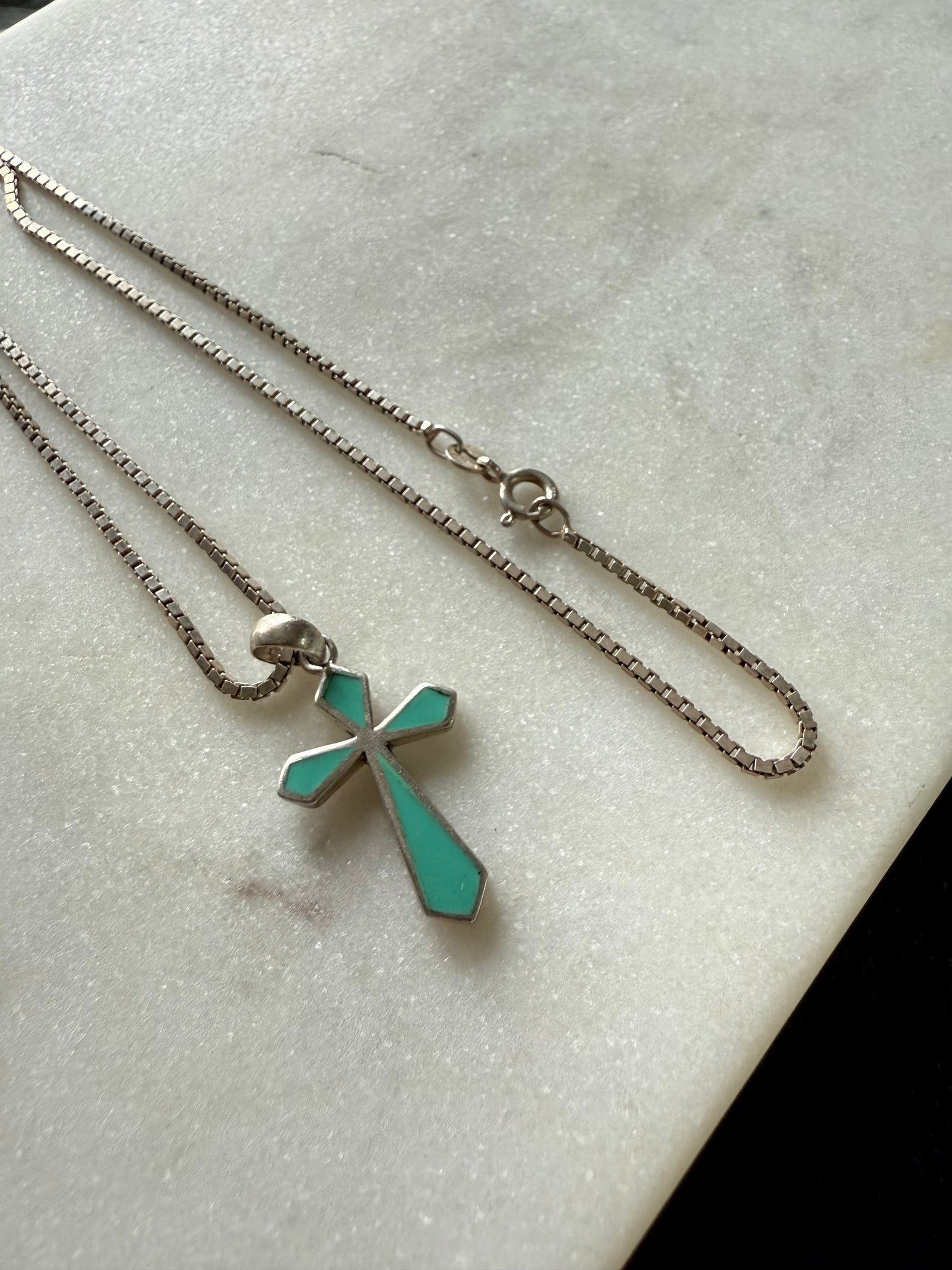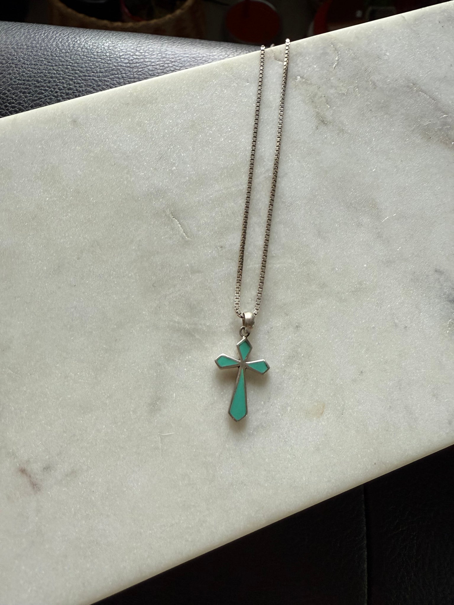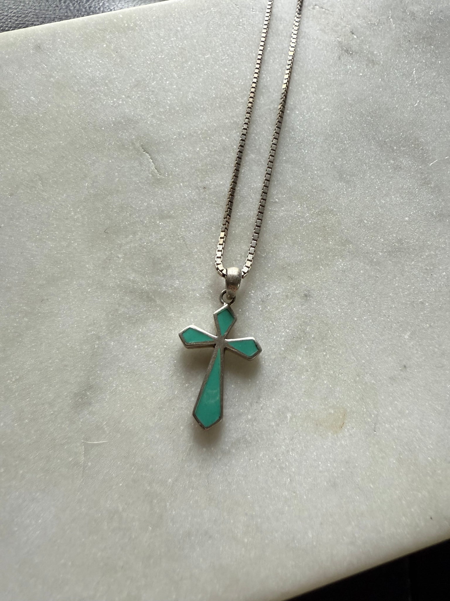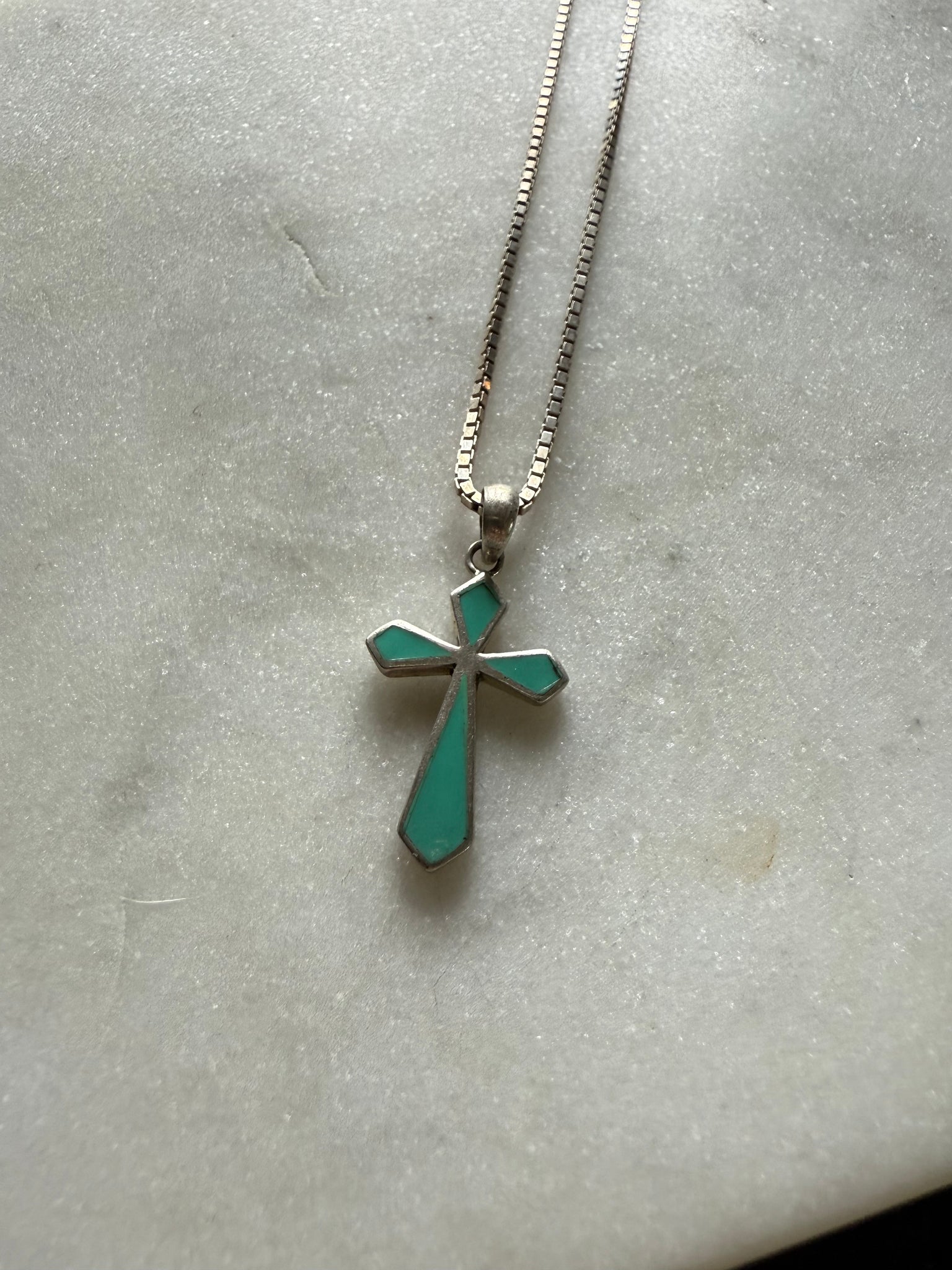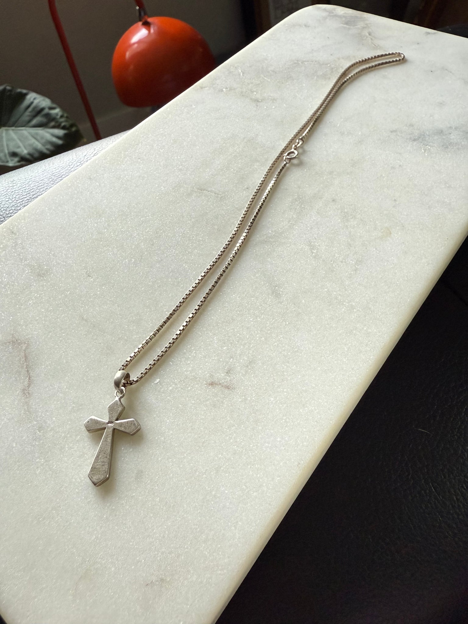 7.9 grams total (pendant and chain) both .925 sterling silver • the cross is 1” long • the chain is 17” long