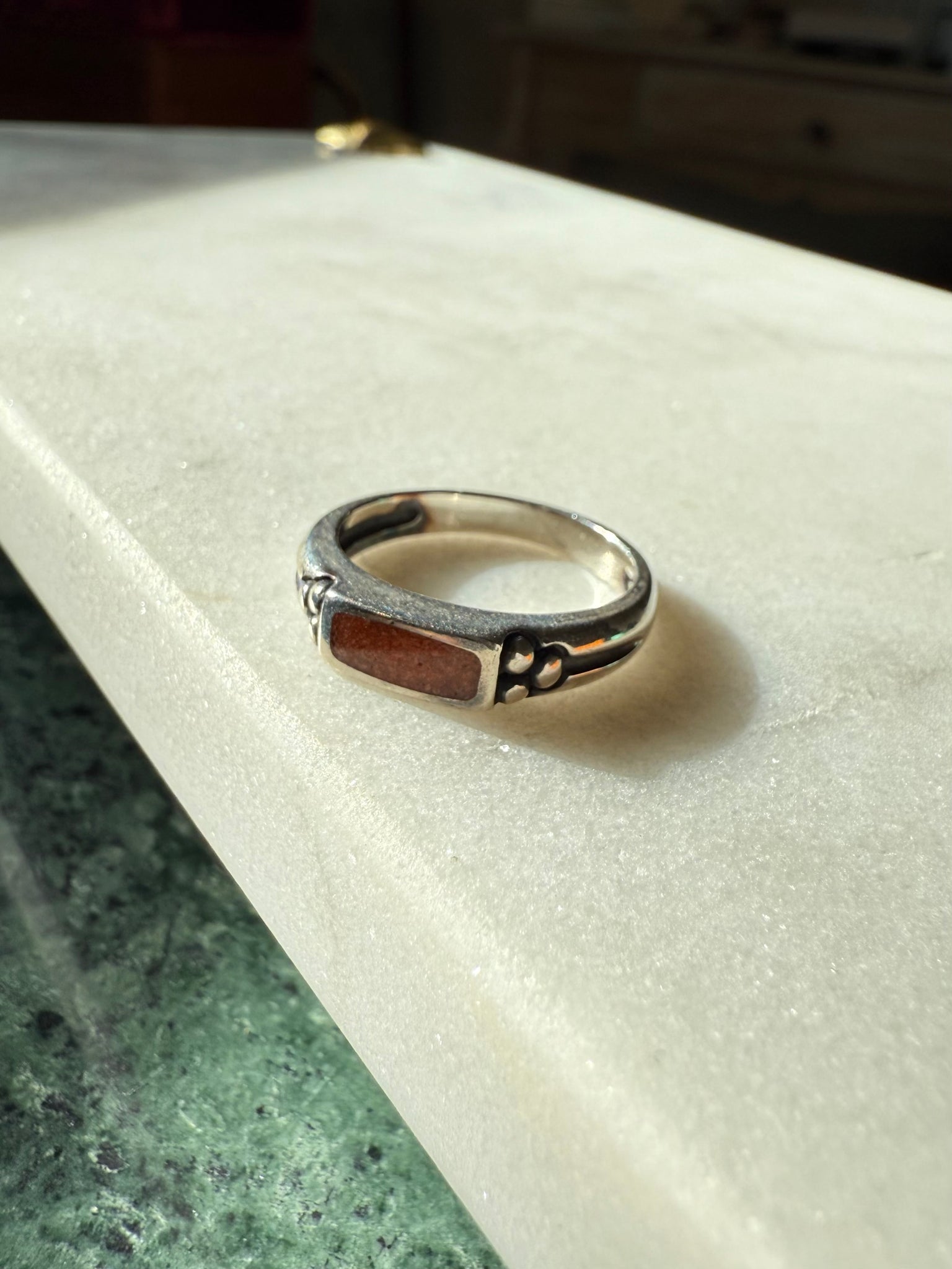 Sterling Silver Crushed Faux Coral Ring Size 8