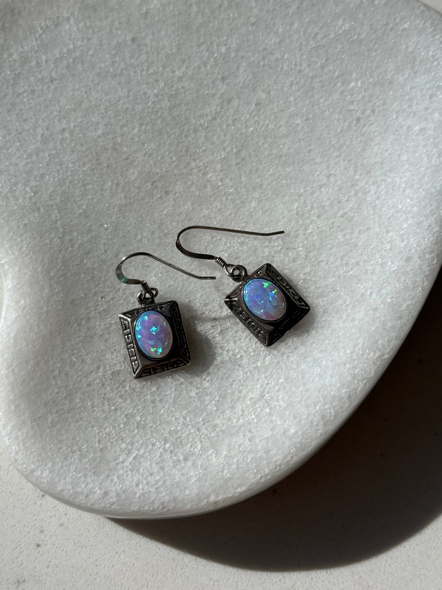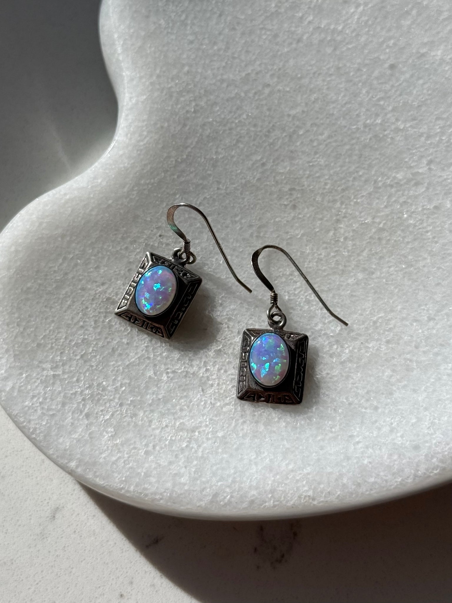 Sterling Silver Dangle Opal Earrings