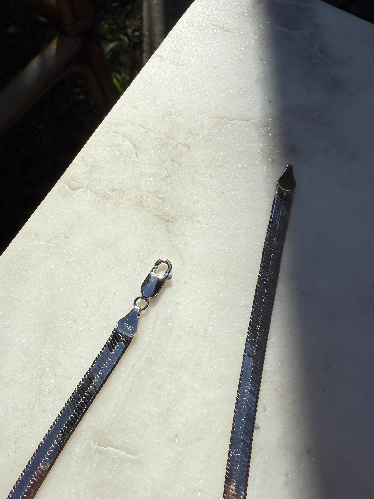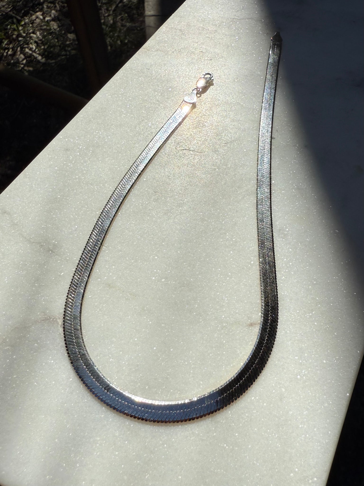 Sterling Silver & Gold Vermeil Double Sided Herringbone Necklace 15.5”