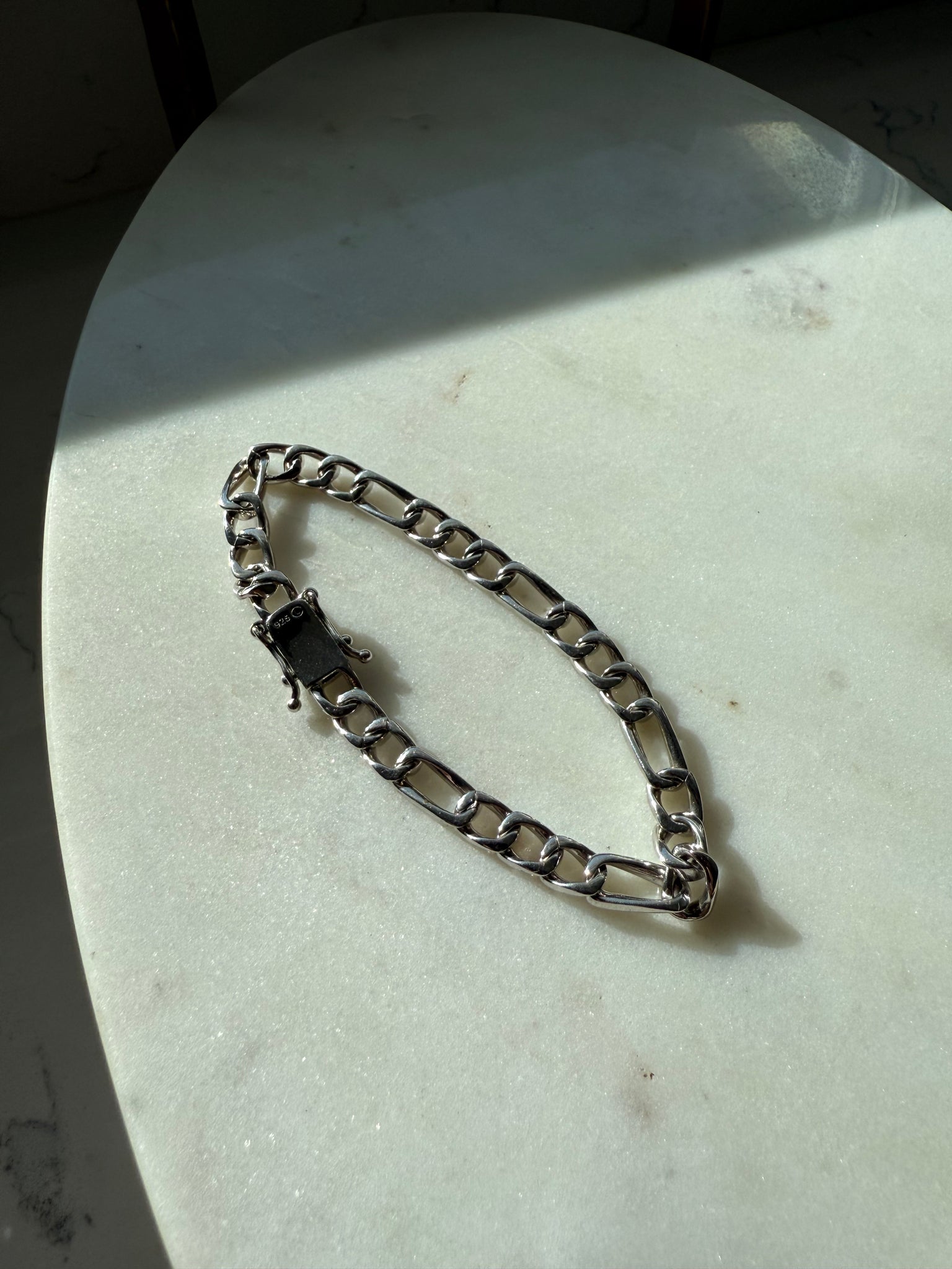 17.8 grams • .925 Sterling silver • 6.5mm width links • 8” length with measuring tape fully lying flat