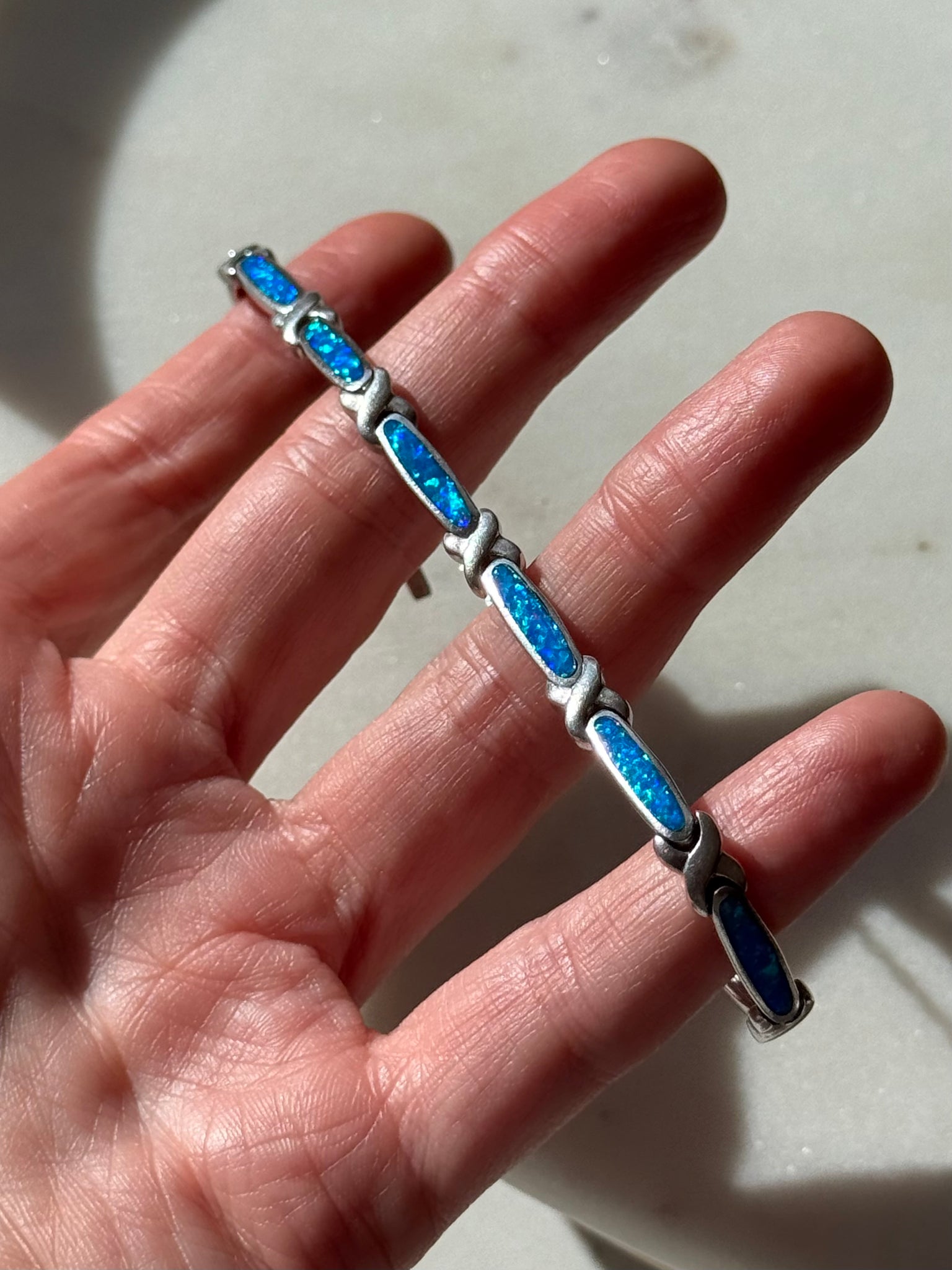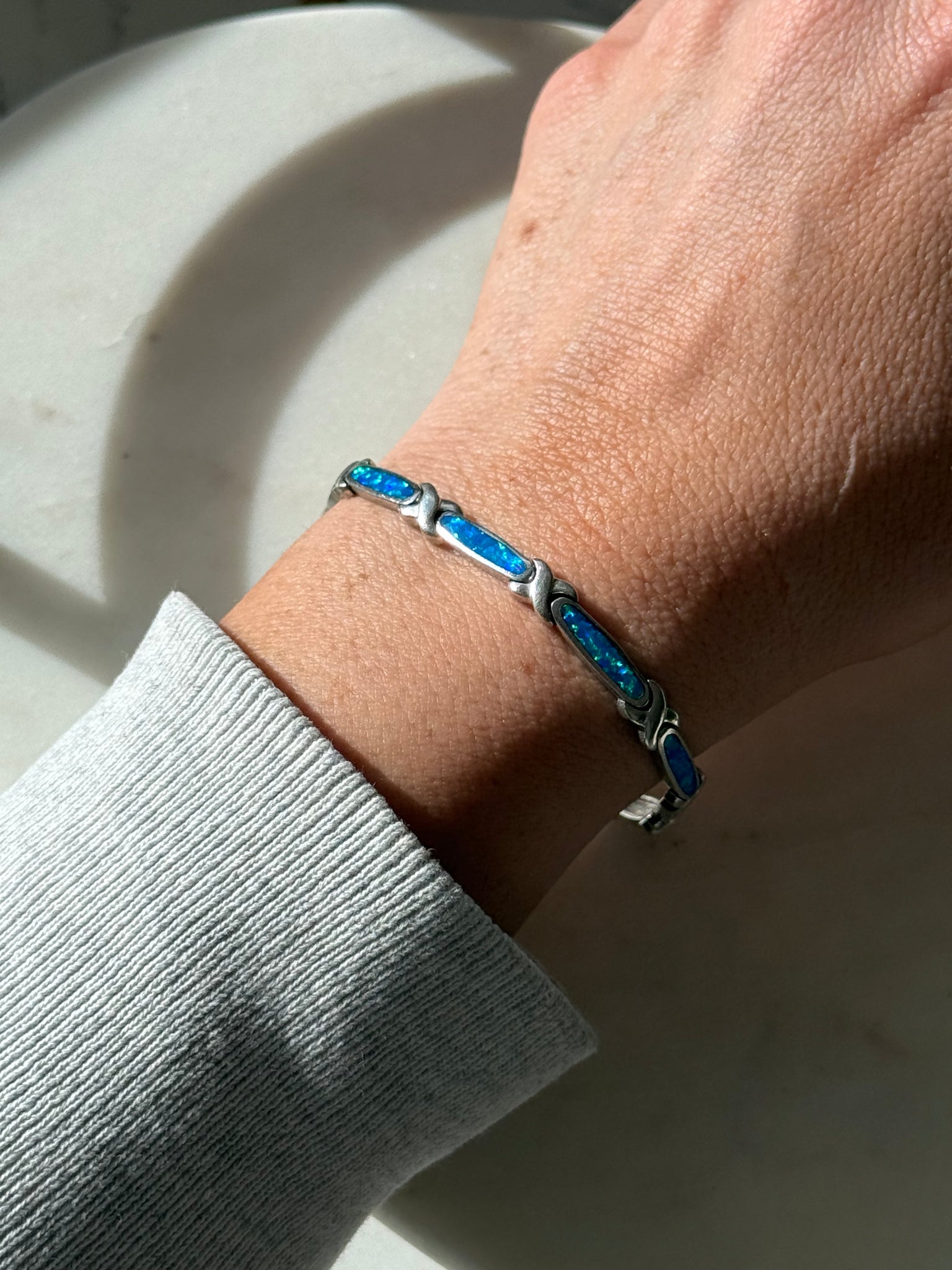 Sterling Silver Opal Inlay Bracelet 7”