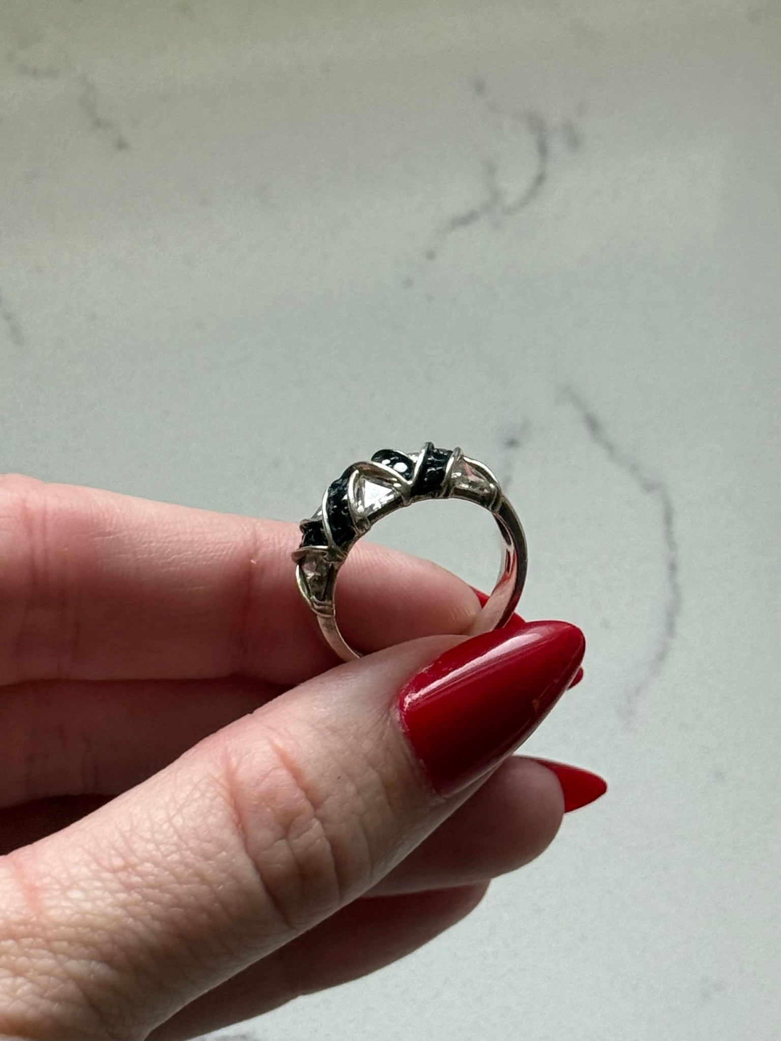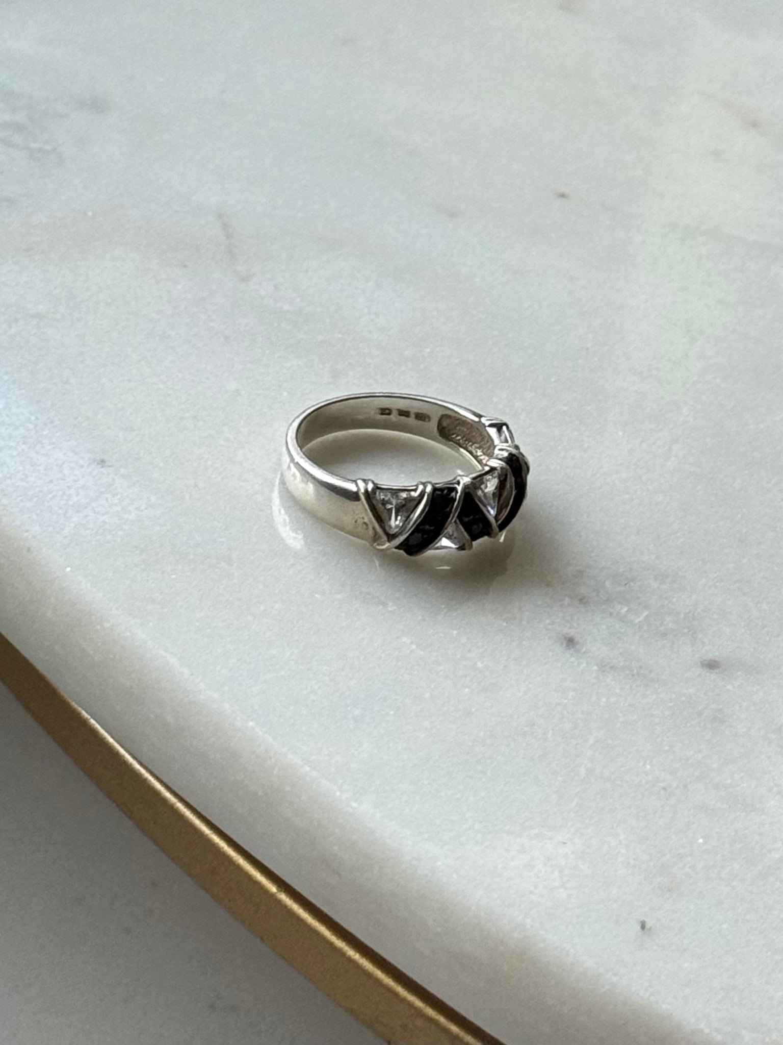 Sterling Silver Black & White Glass Stone Ring Size 8