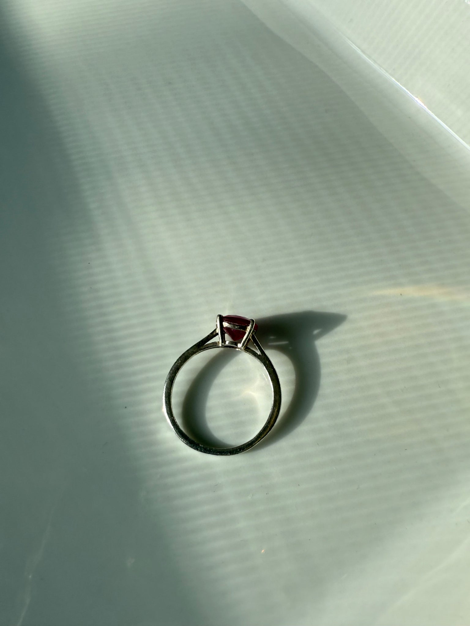 Synthetic Ruby Sterling Silver Solitaire Ring Size 8.5