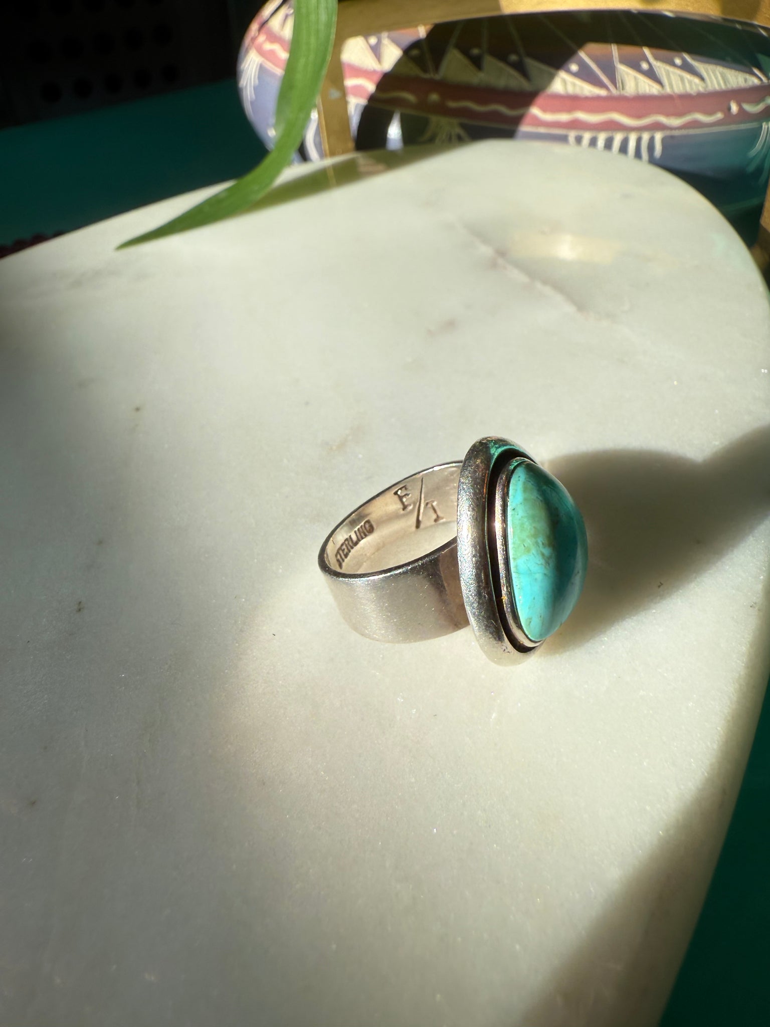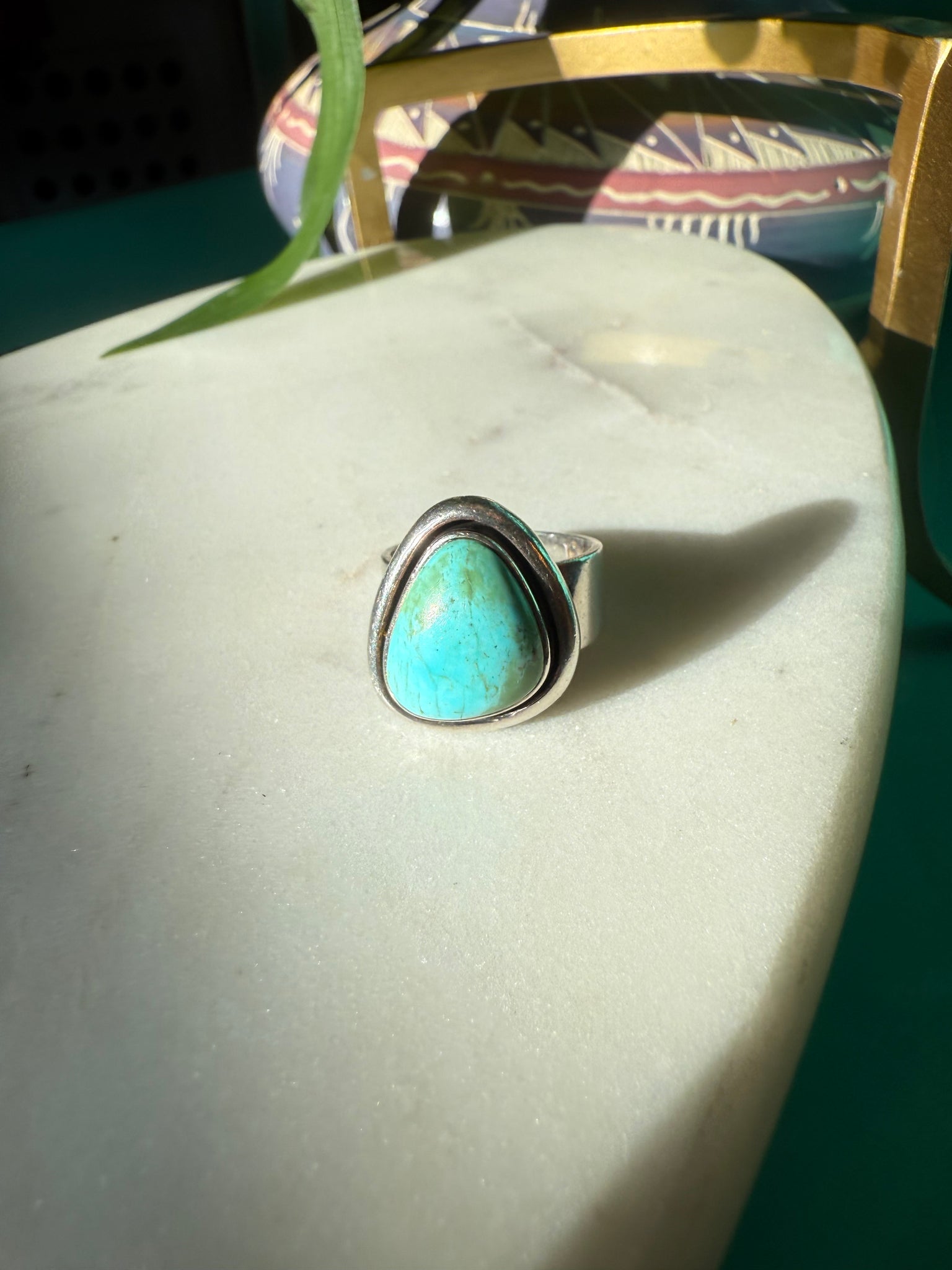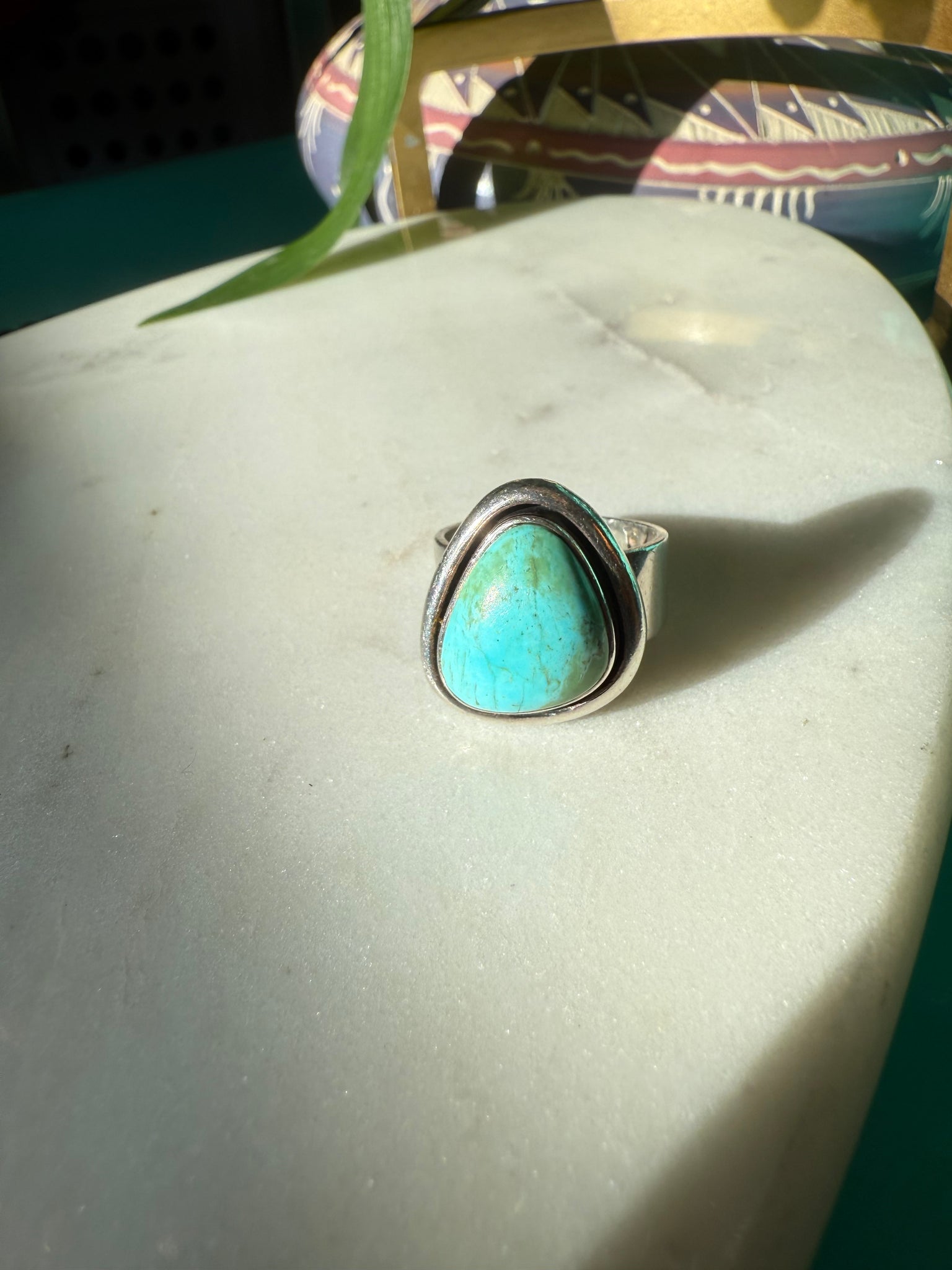 Turquoise Chunky Sterling Silver Ring Size 7