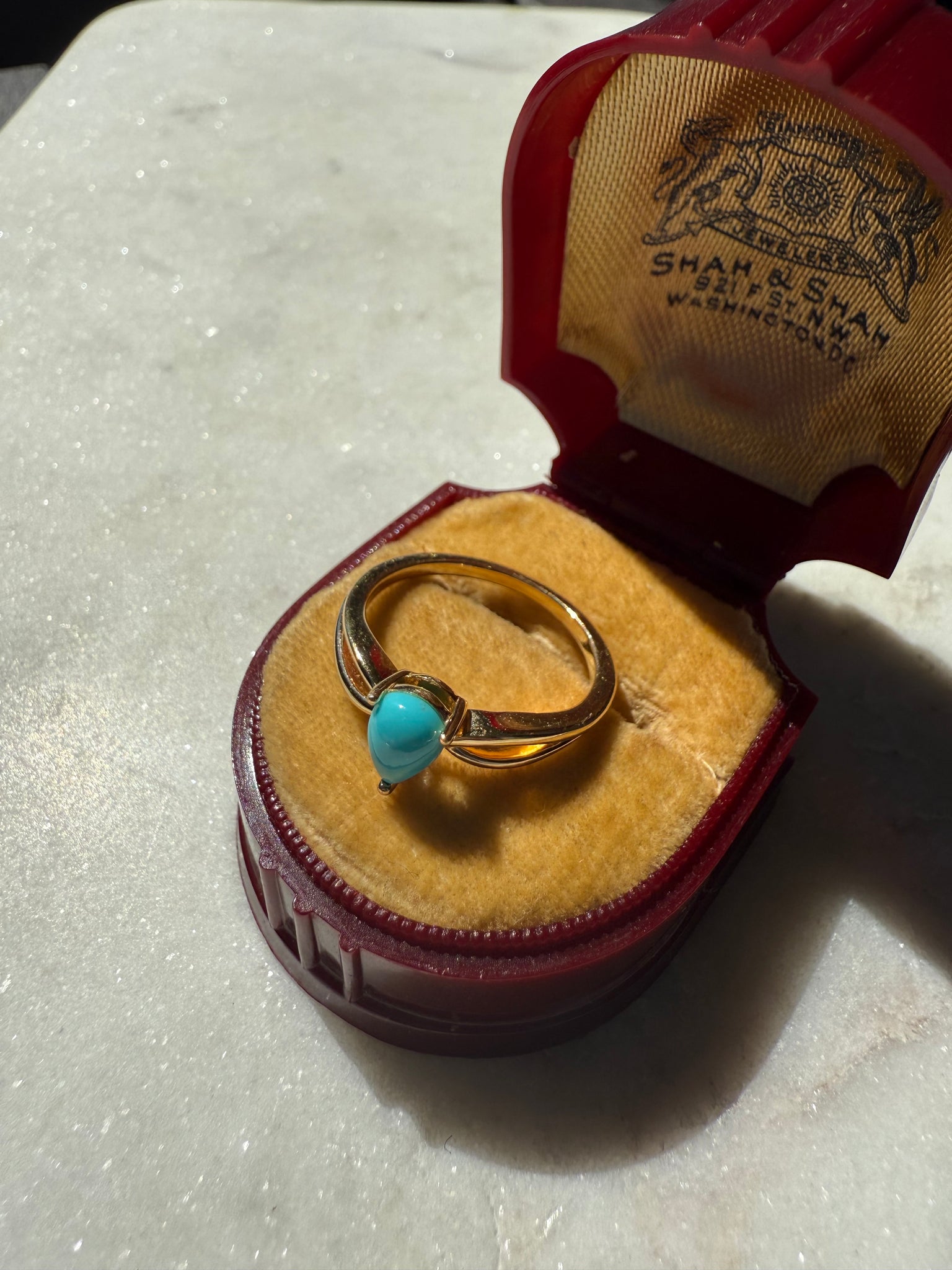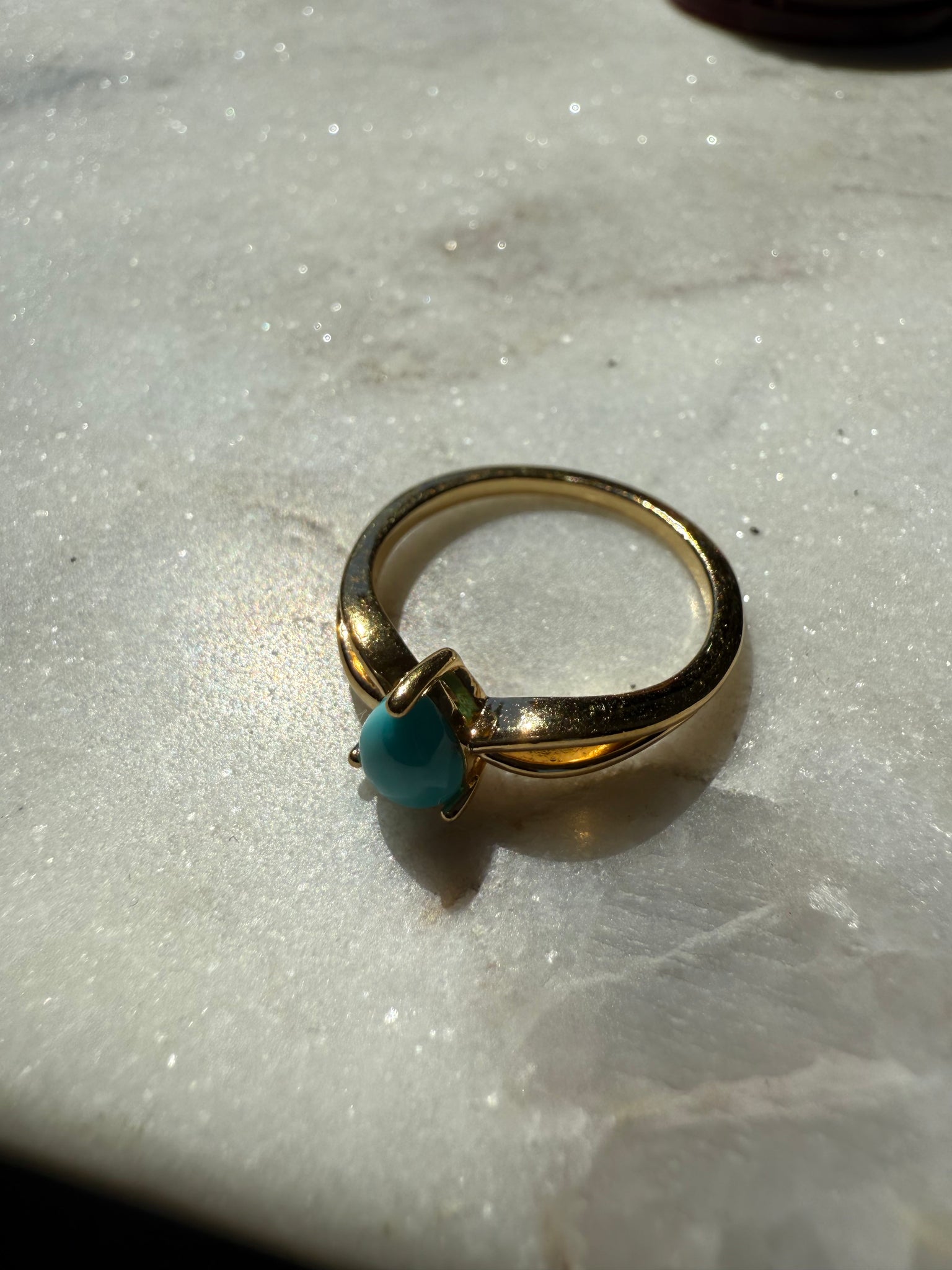 Turquoise Gold Vermeil Dainty Ring Size 7.25