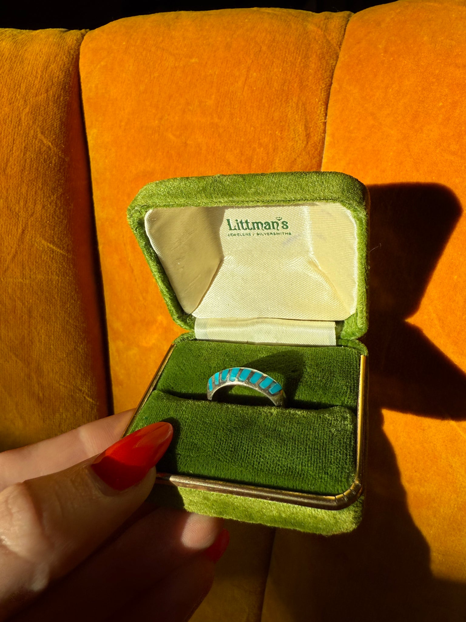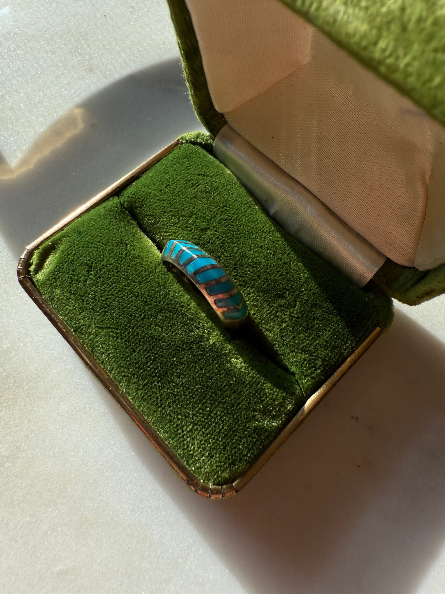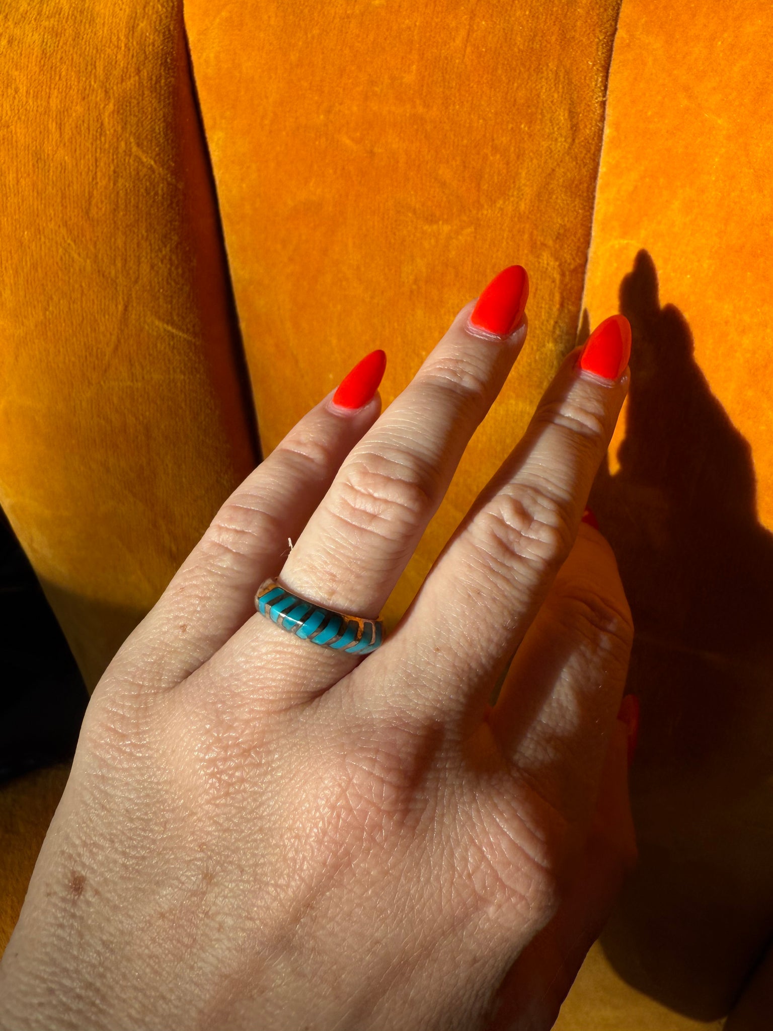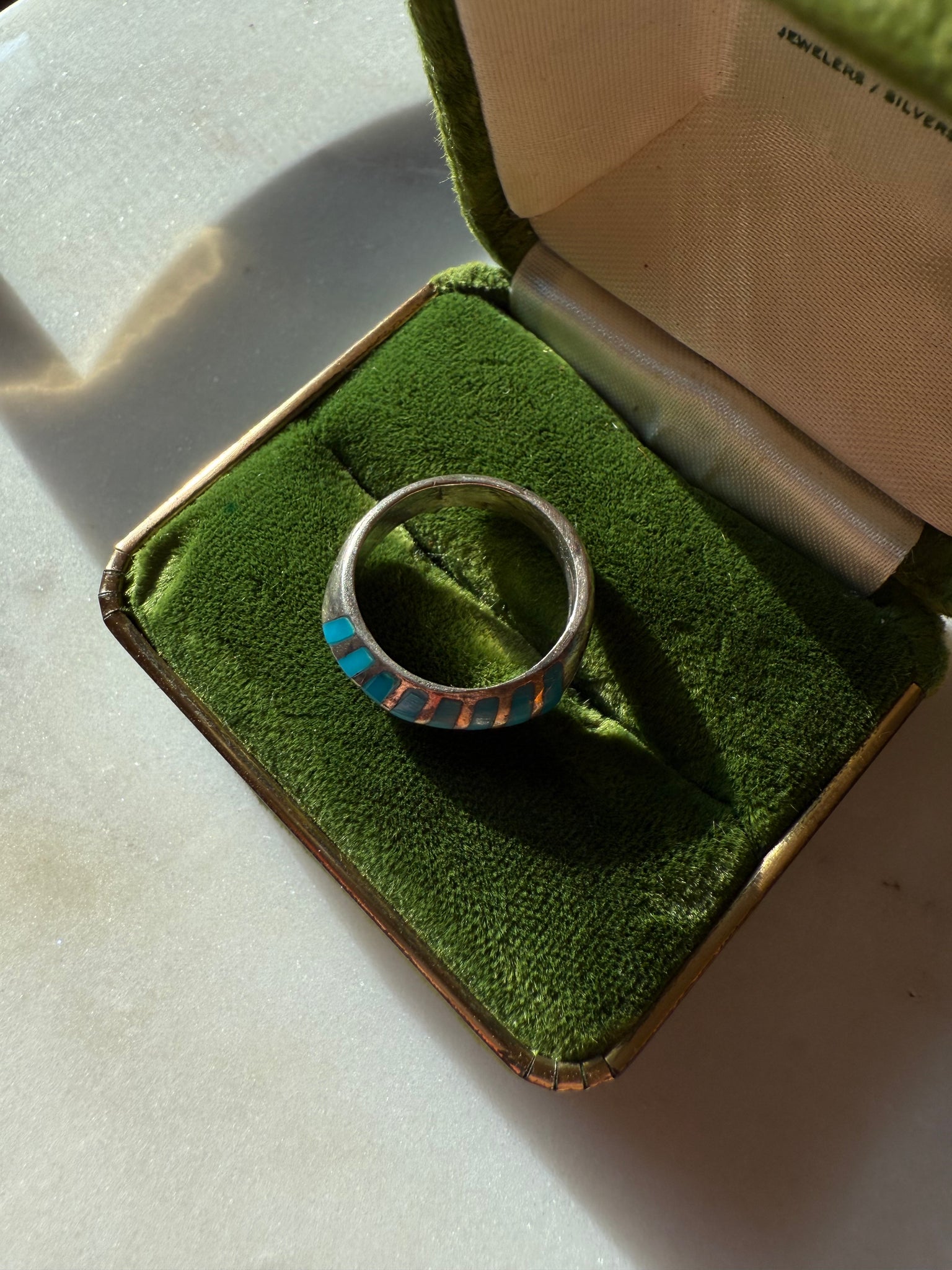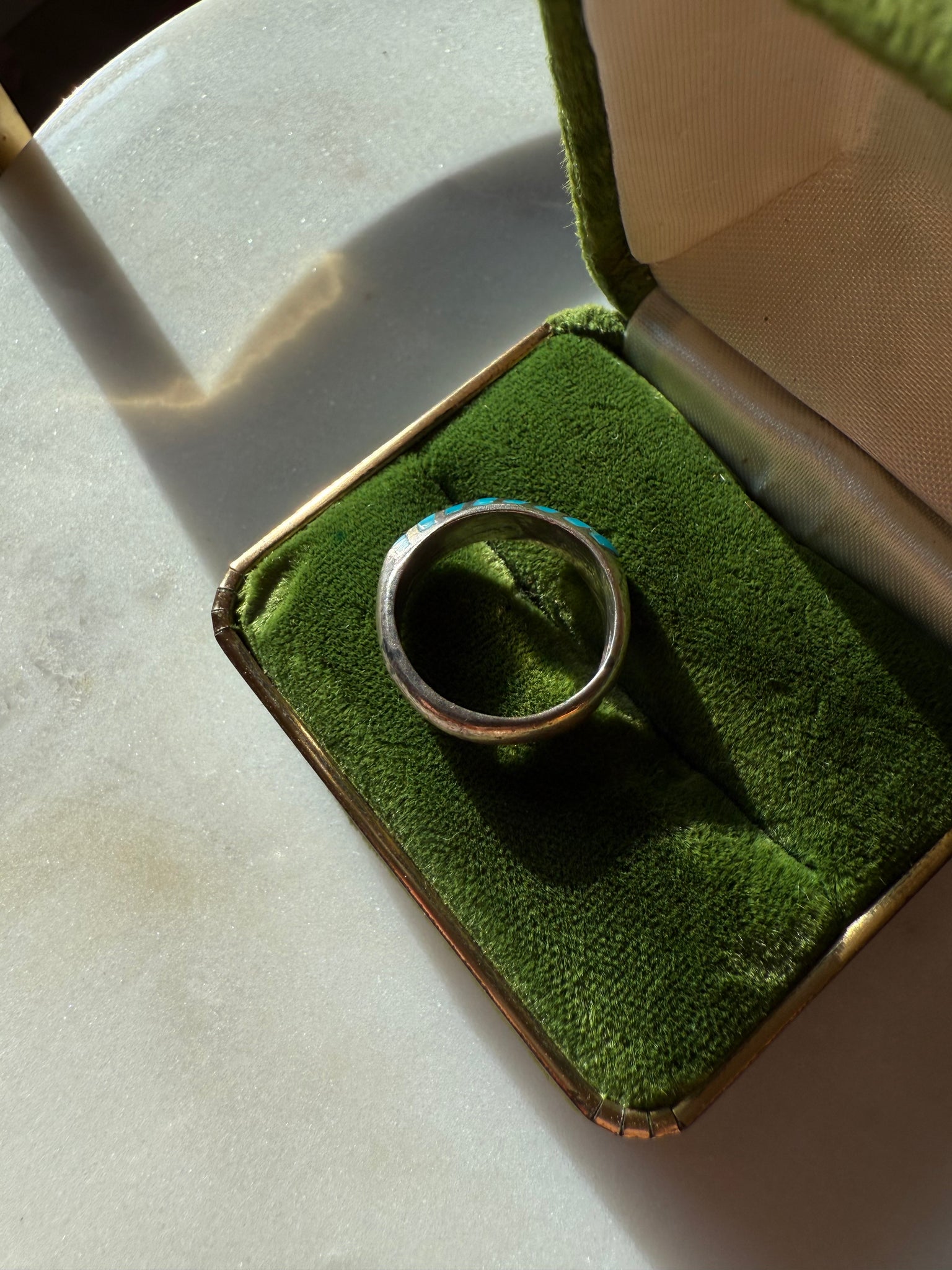 Turquoise Inlay Sterling Silver Ring Size 7.5