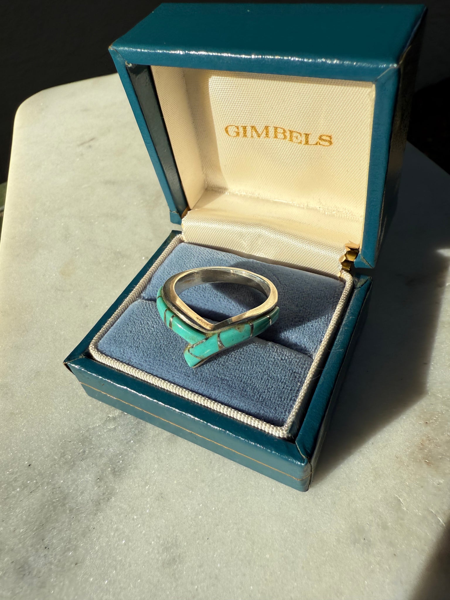 Turquoise Inlay Sterling Silver Ring Size 9.25