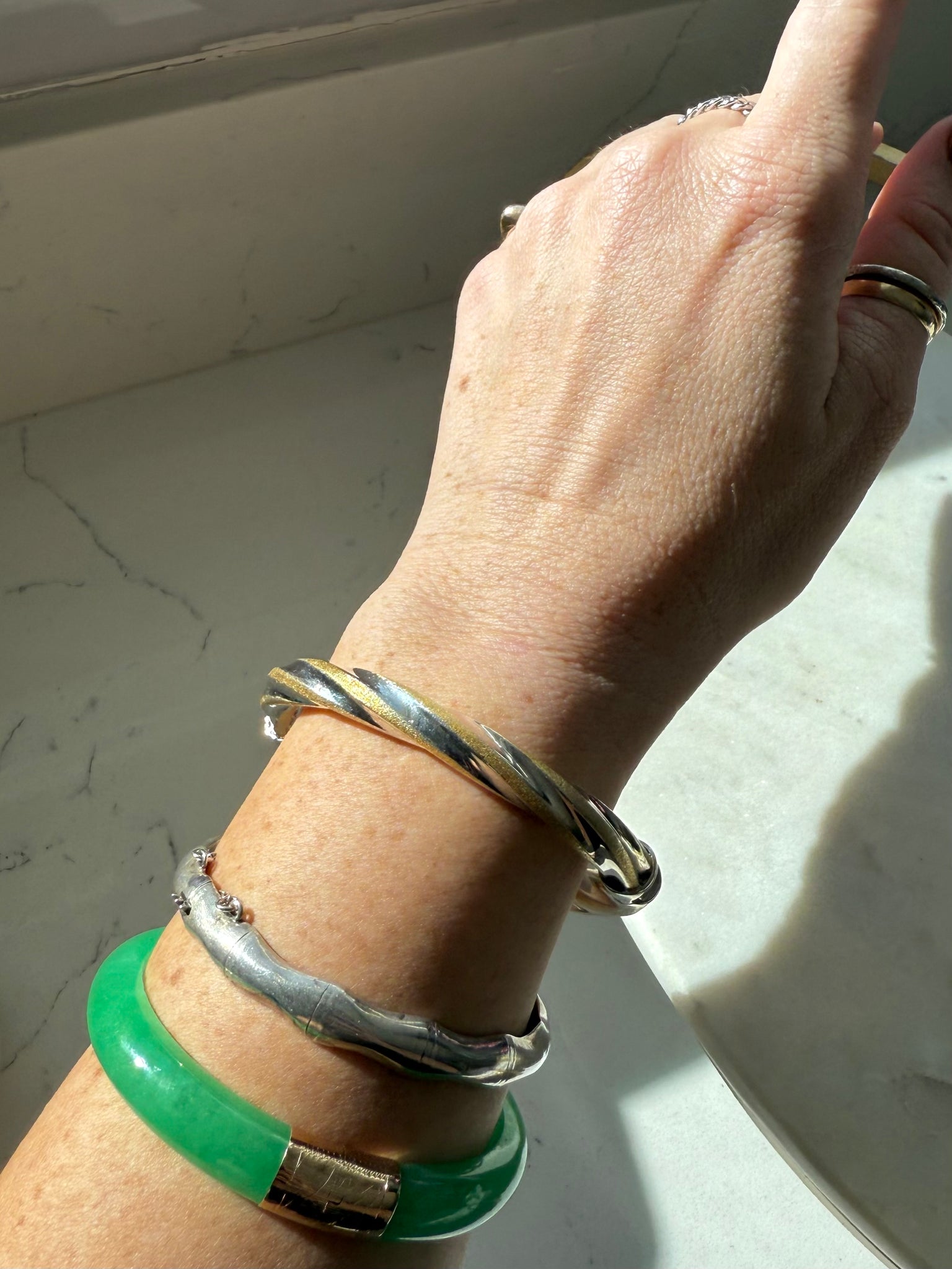 Italian Two-Tone Sterling Silver Gold Vermeil Hinged Bangle Bracelet