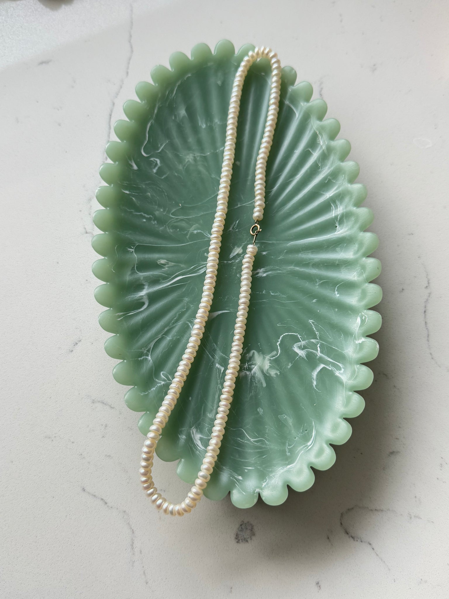 5mm width pearls • 18.9 grams • 18.25” length with measuring tape