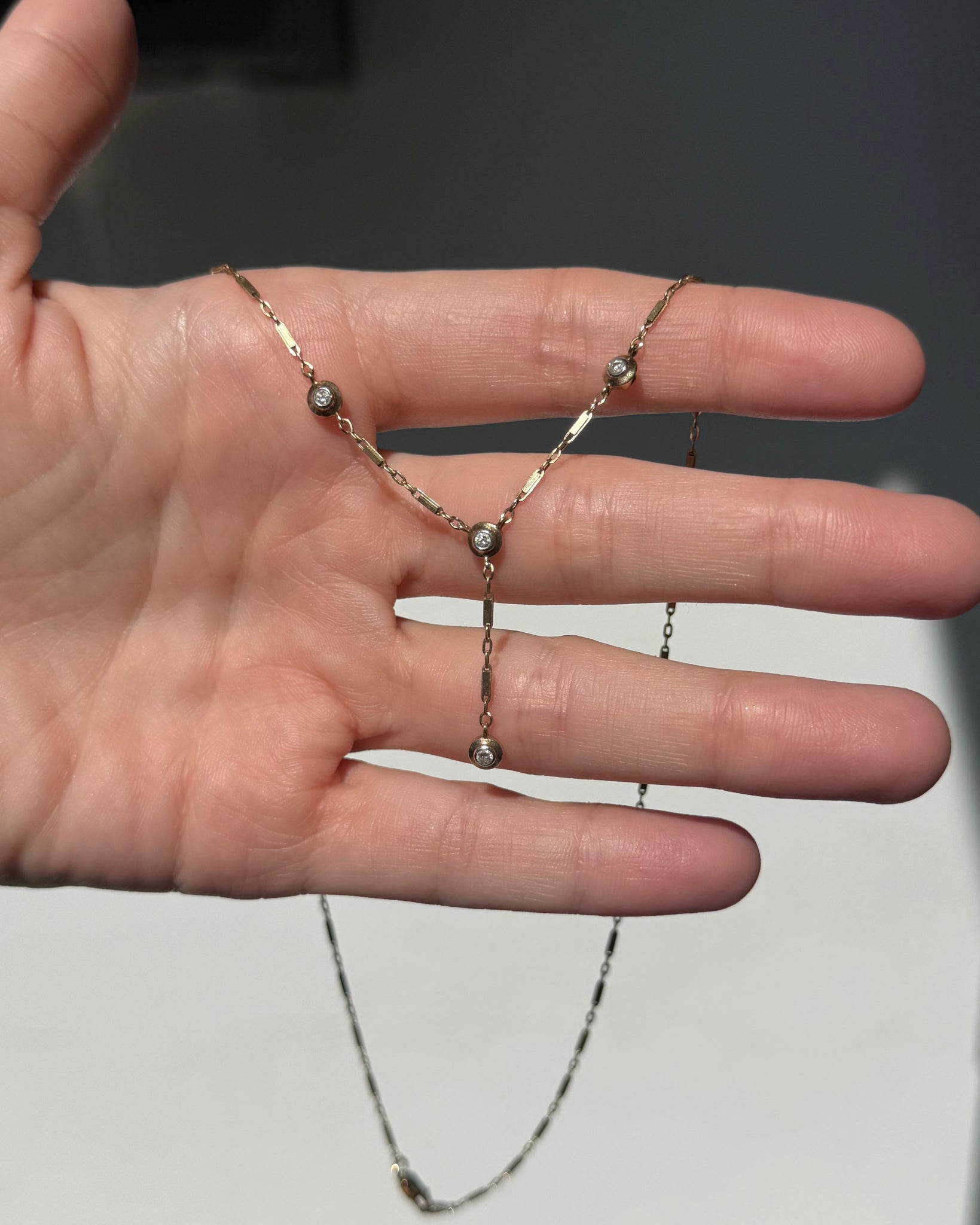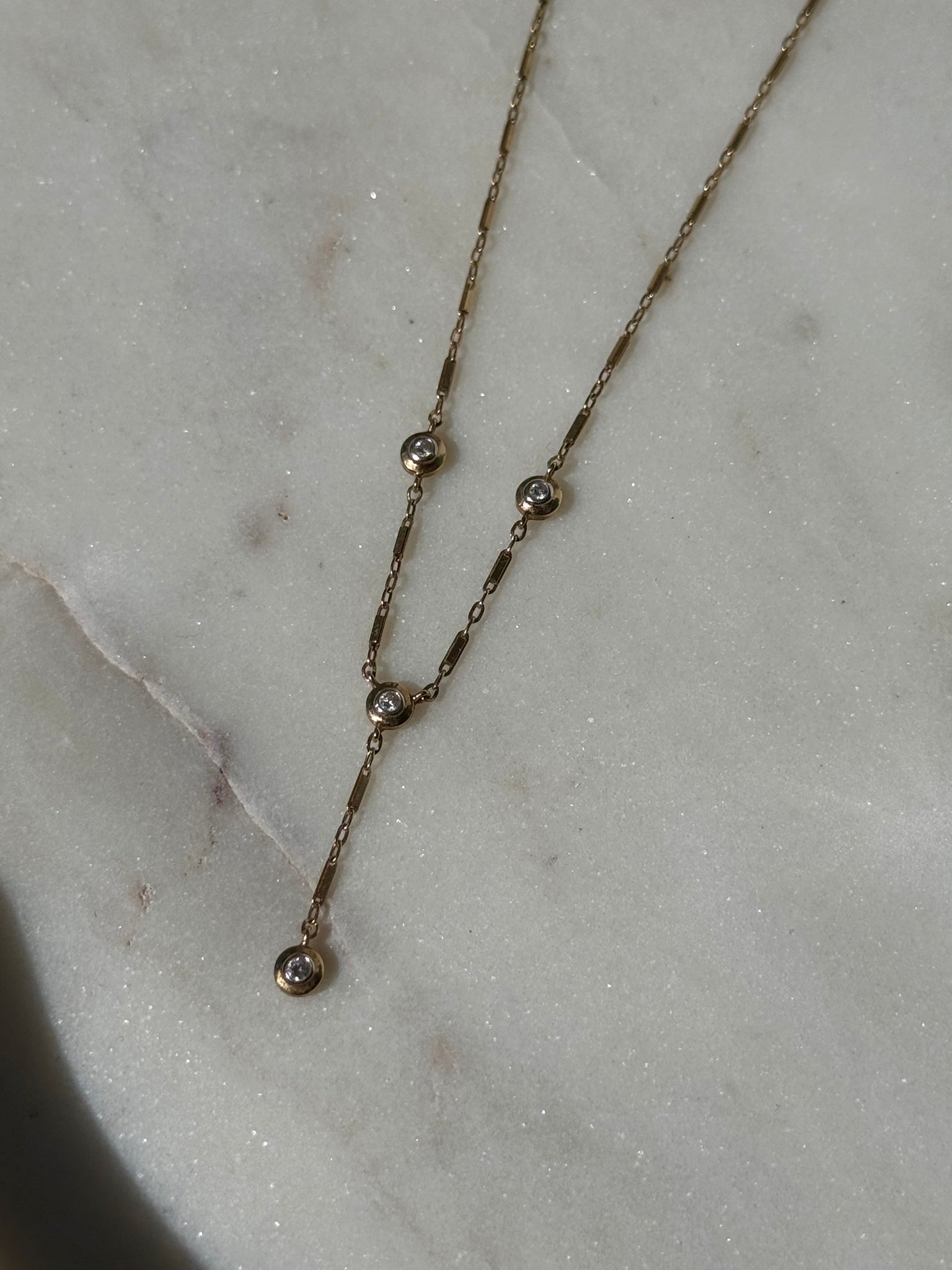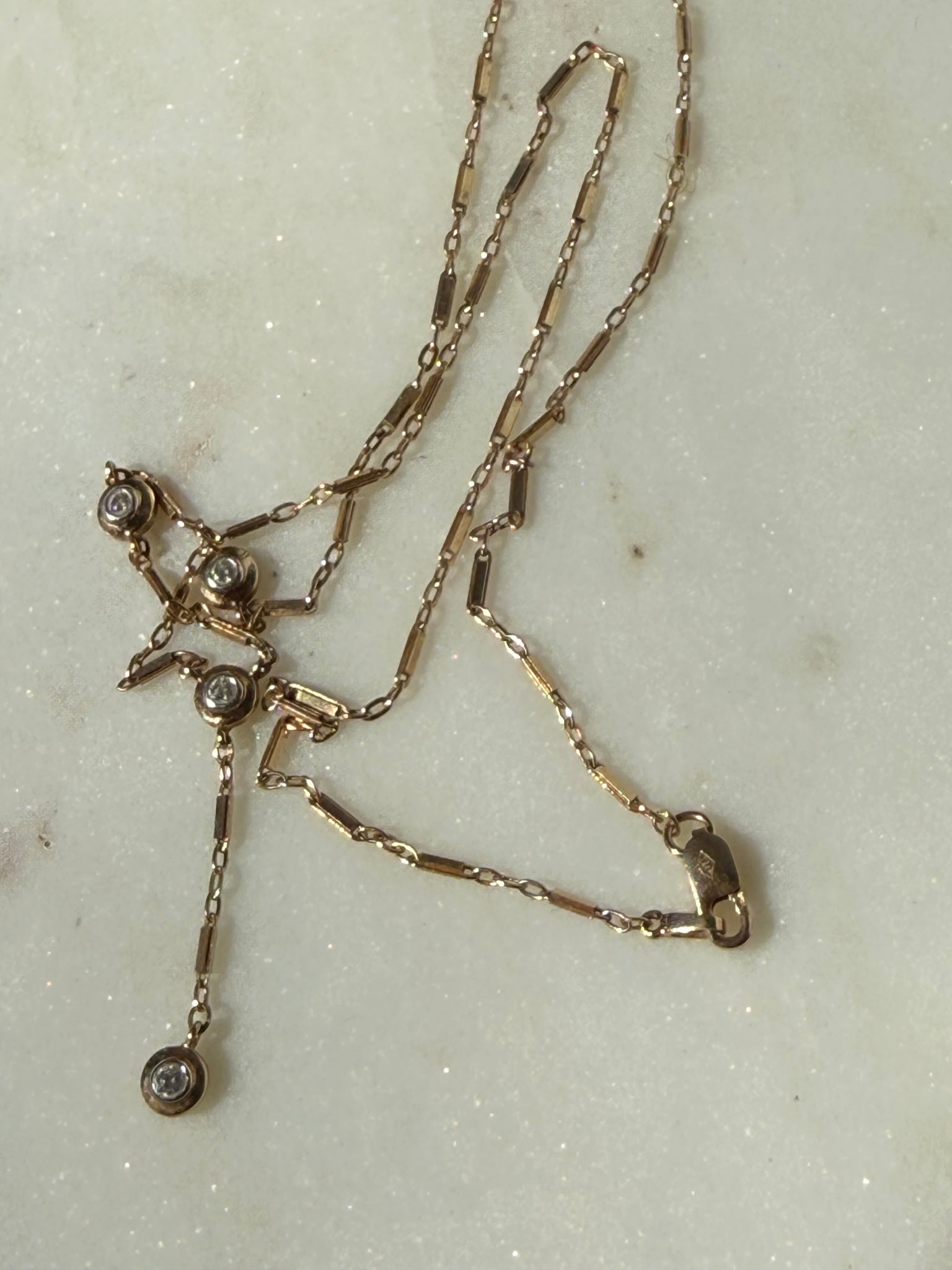 Vintage 10k Yellow Gold Diamond Drop Necklace •3.1 grams•1” drop•1.25mm width links •17” length chain