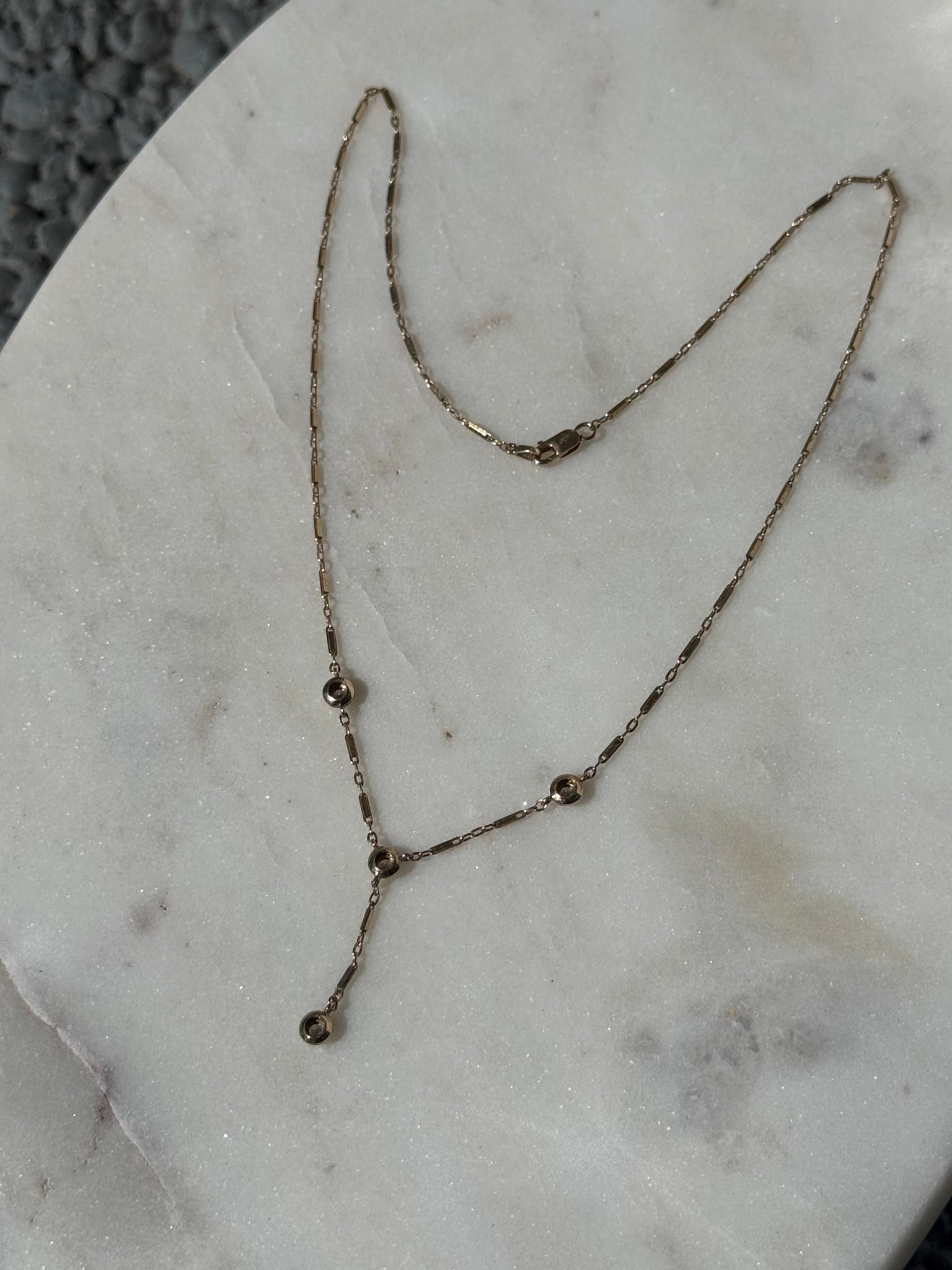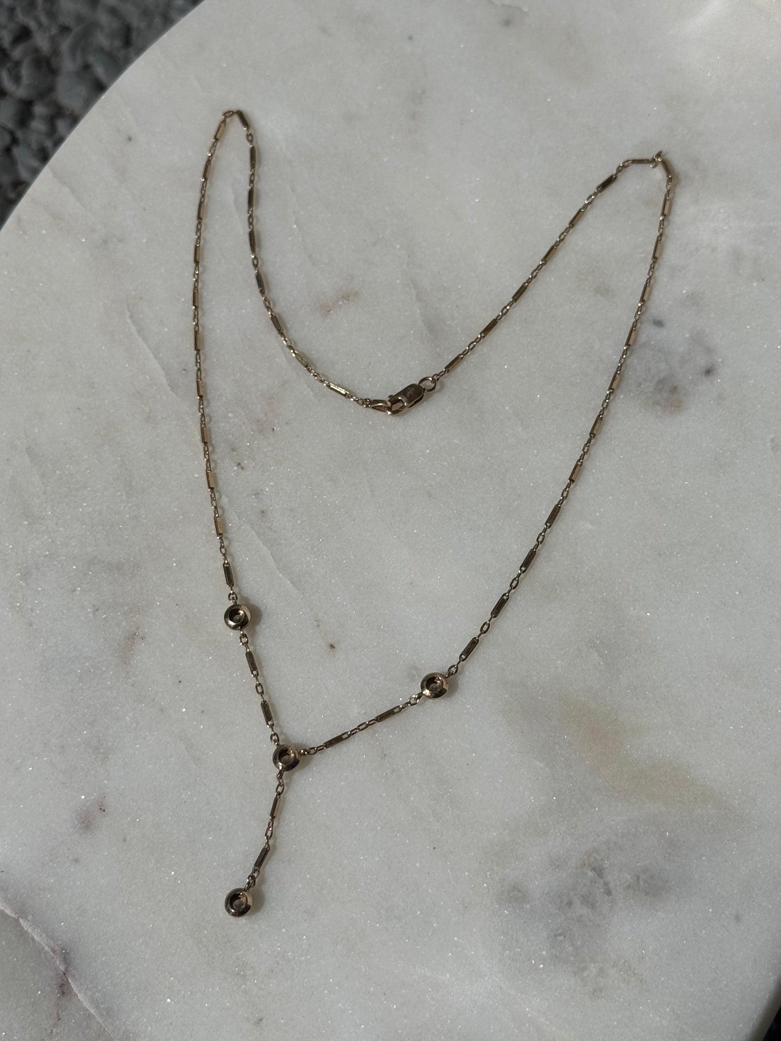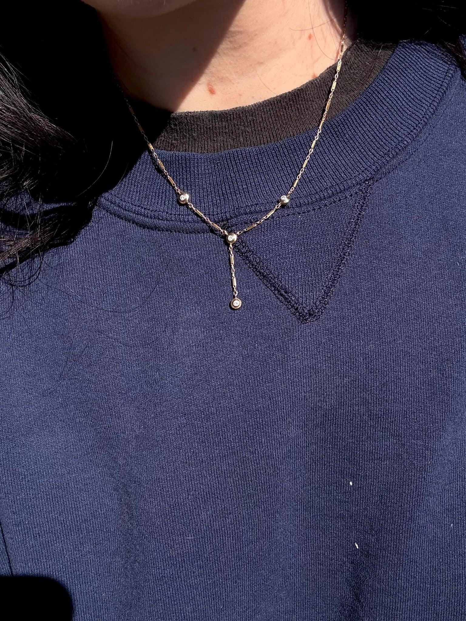 Vintage 10k Yellow Gold Diamond Drop Necklace •3.1 grams•1” drop•1.25mm width links •17” length chain
