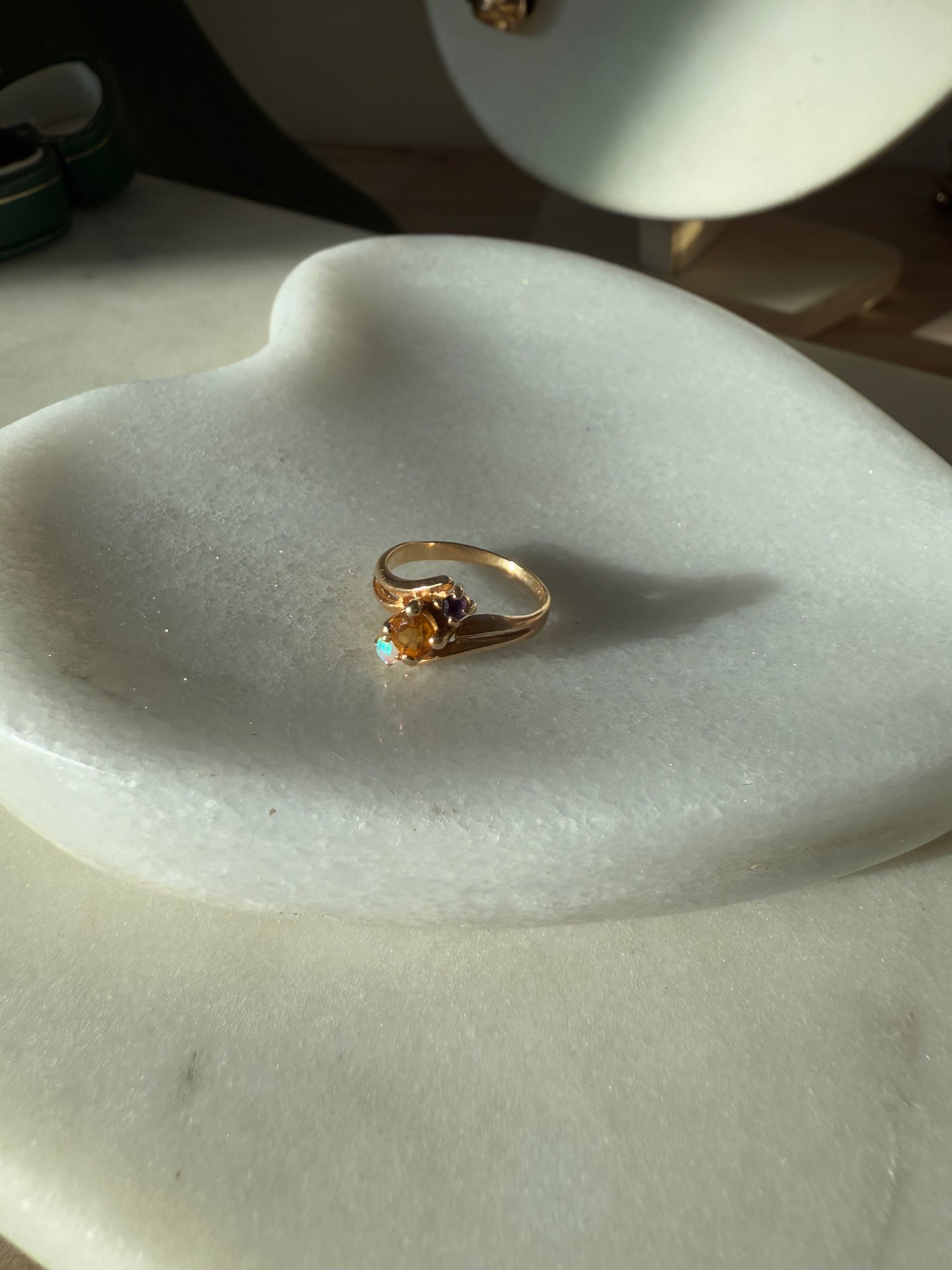 Vintage 14k Gold Opal Amethyst Citrine Ring Size 3.5