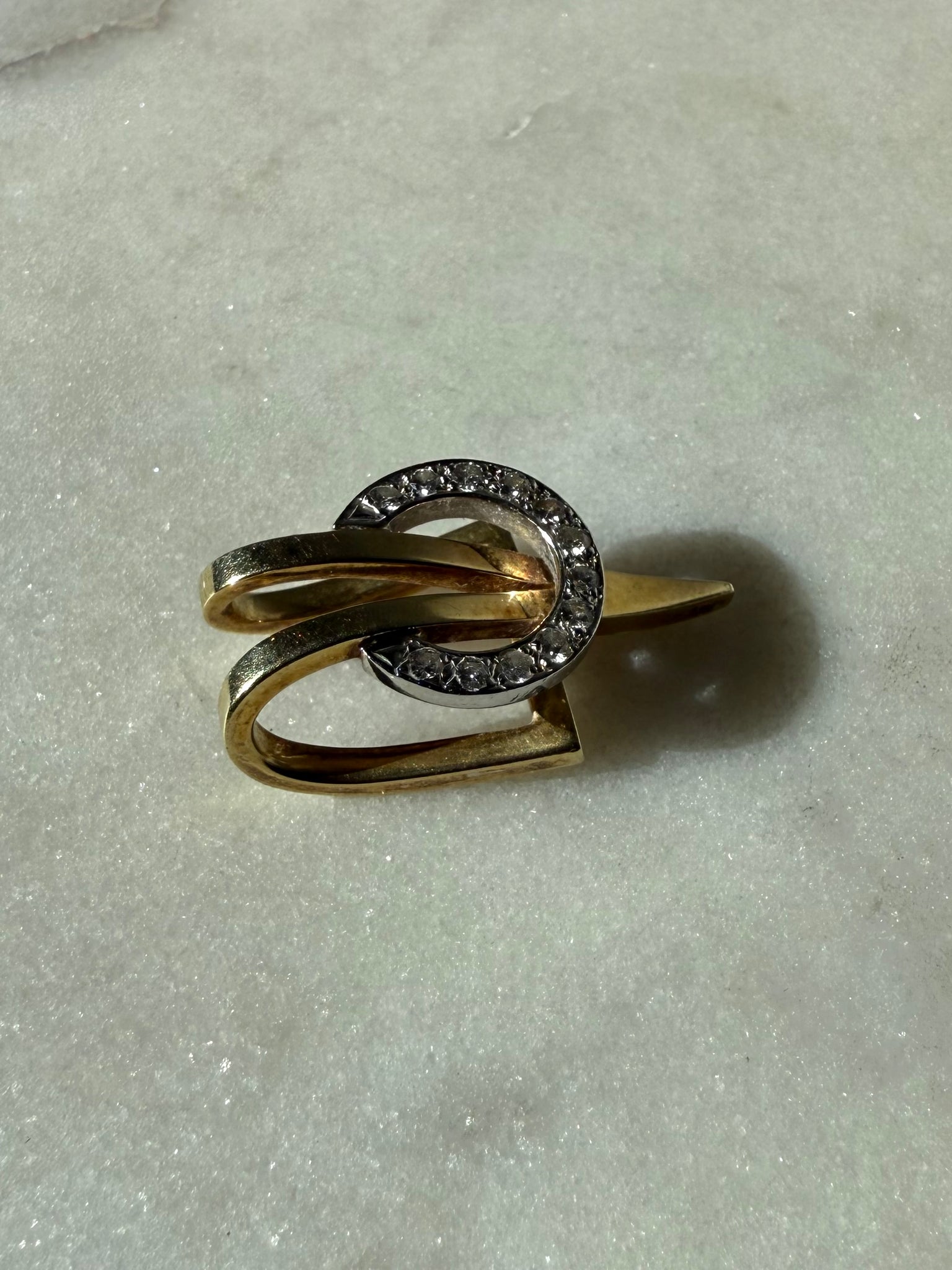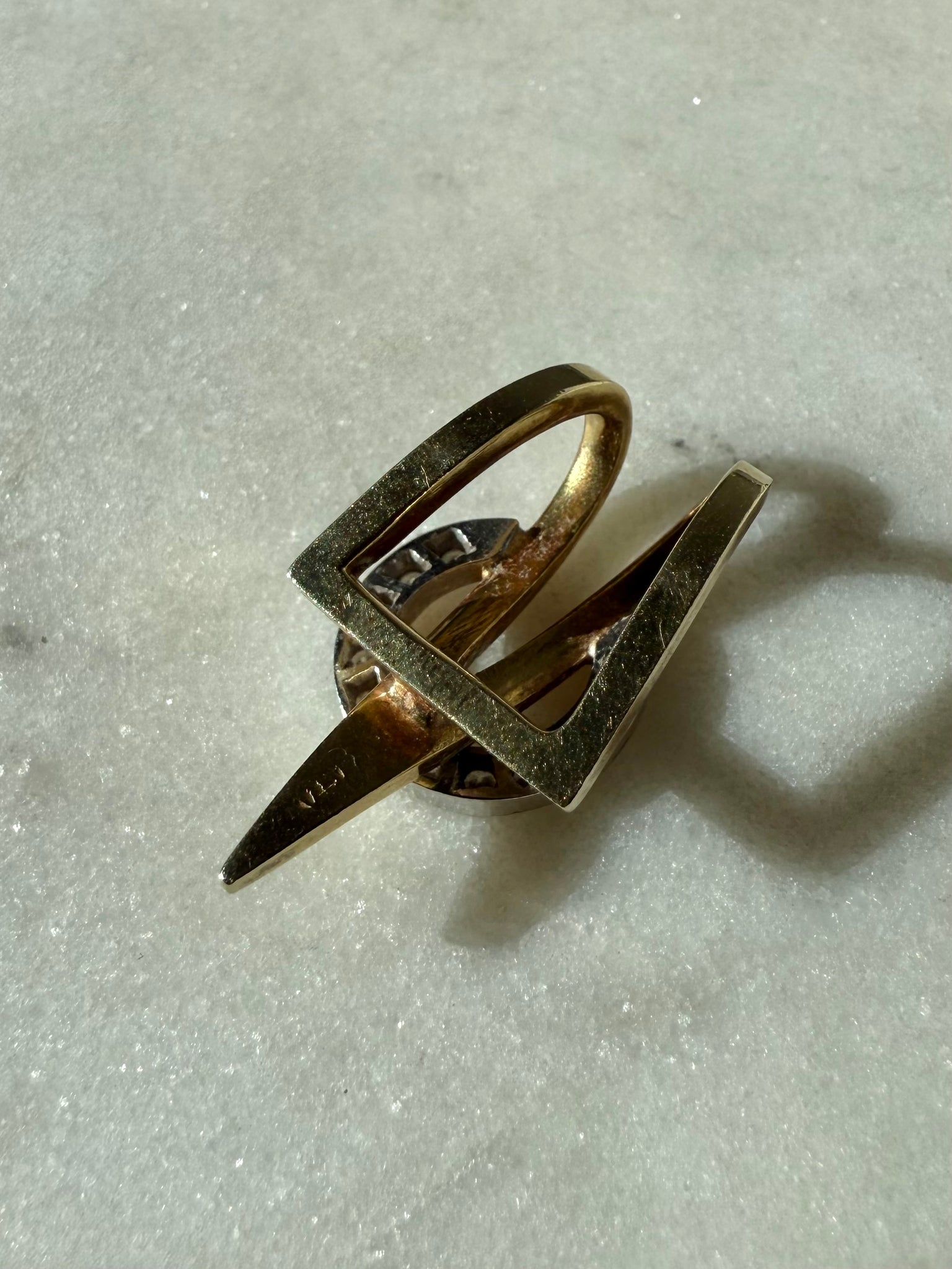 1960'S SOLID 14K TWO-TONE YELLOW AND WHITE GOLD NATURAL DIAMOND MODERNIST PENDANT • 5.7 grams
