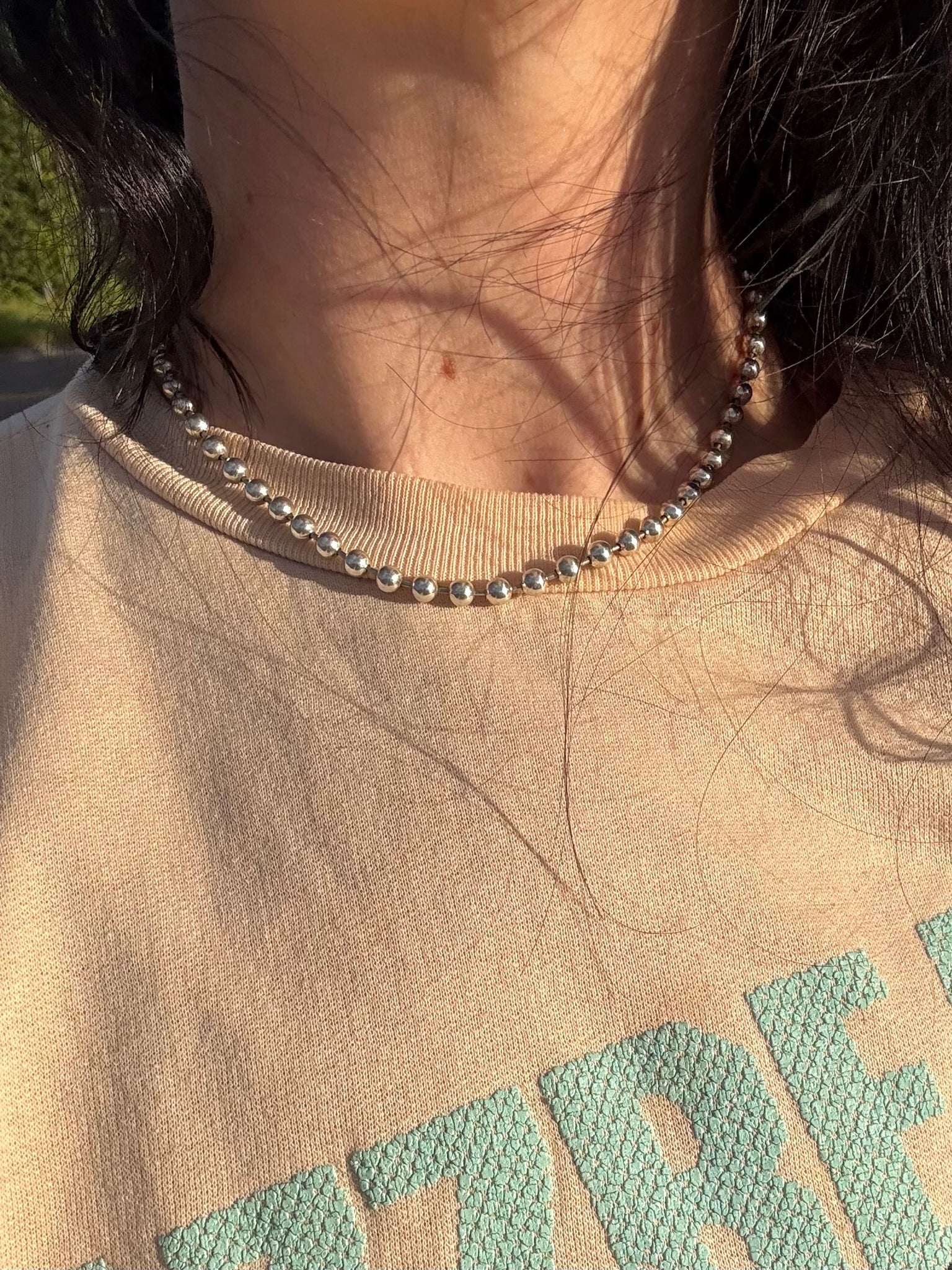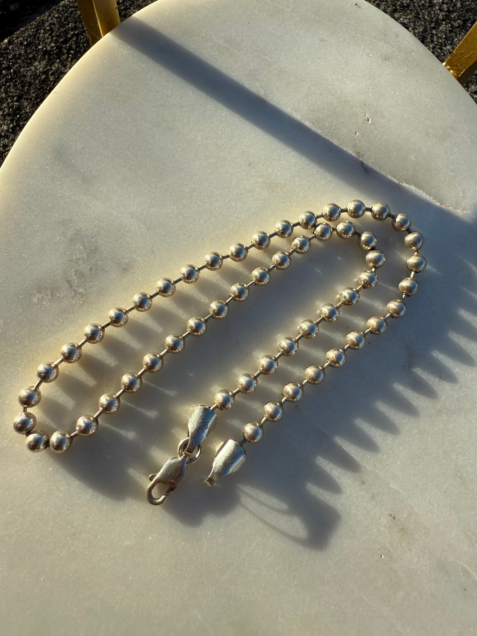 Vintage 90s Italian Ball Chain Sterling Silver Necklace 16”