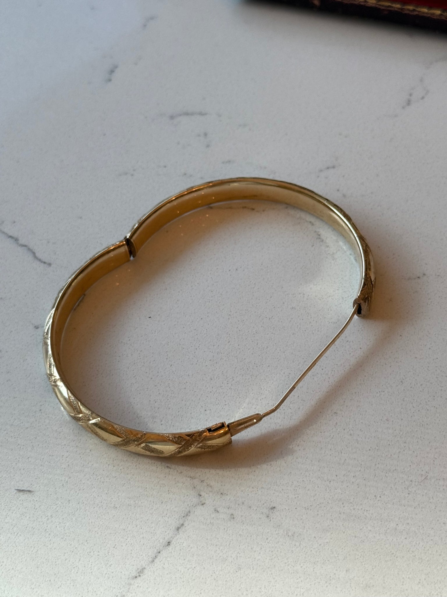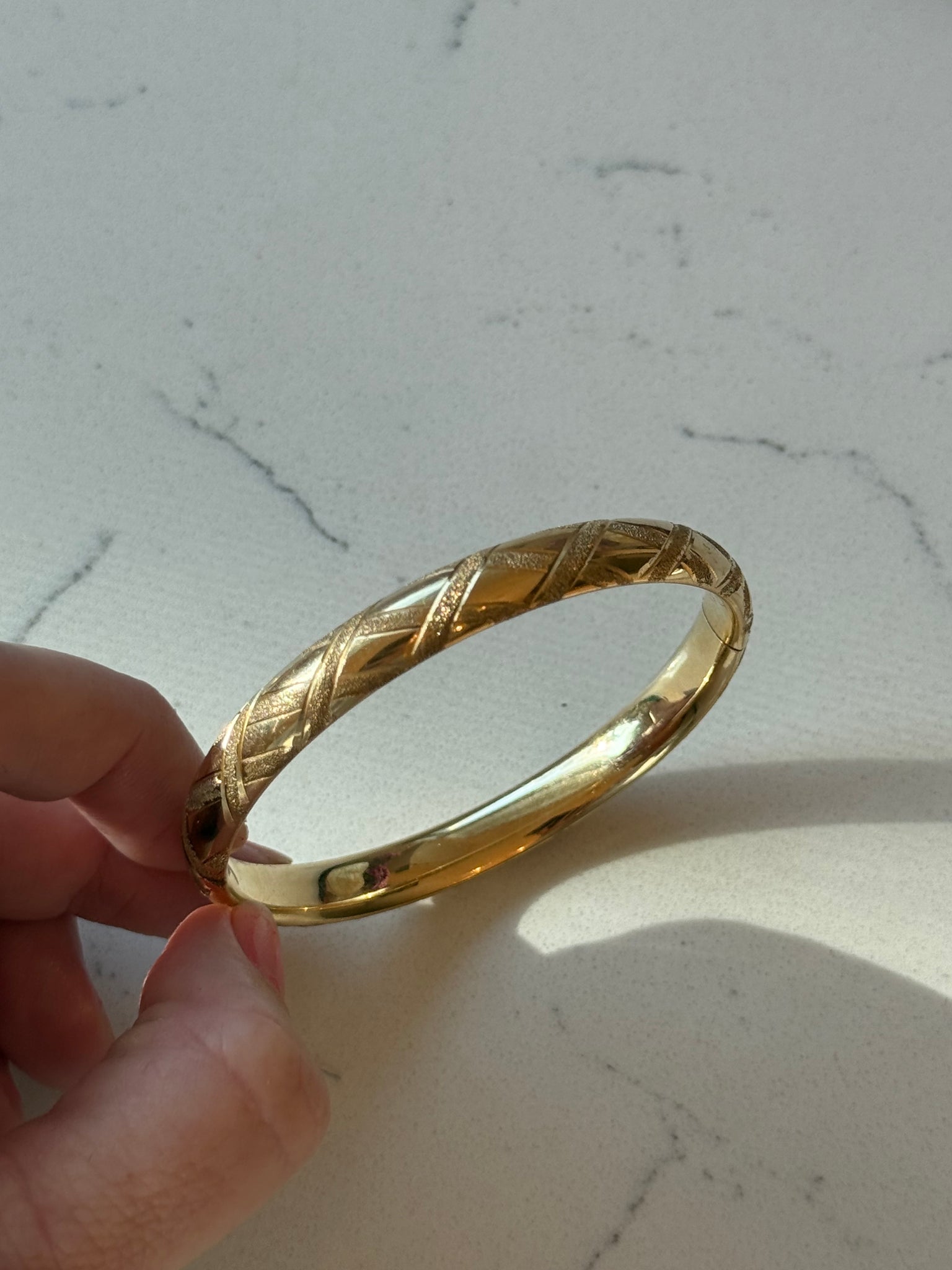 Vintage Basket Weave 14k Yellow Gold Bangle Bracelet•12.1 grams •2.15” inside diameter•8mm width